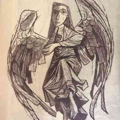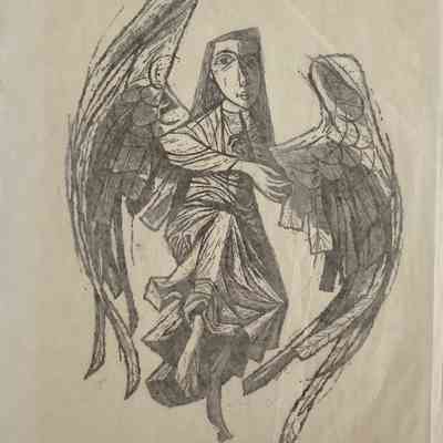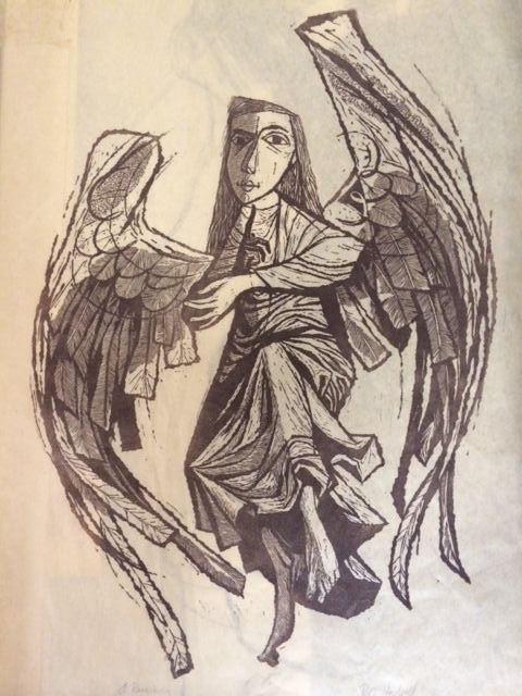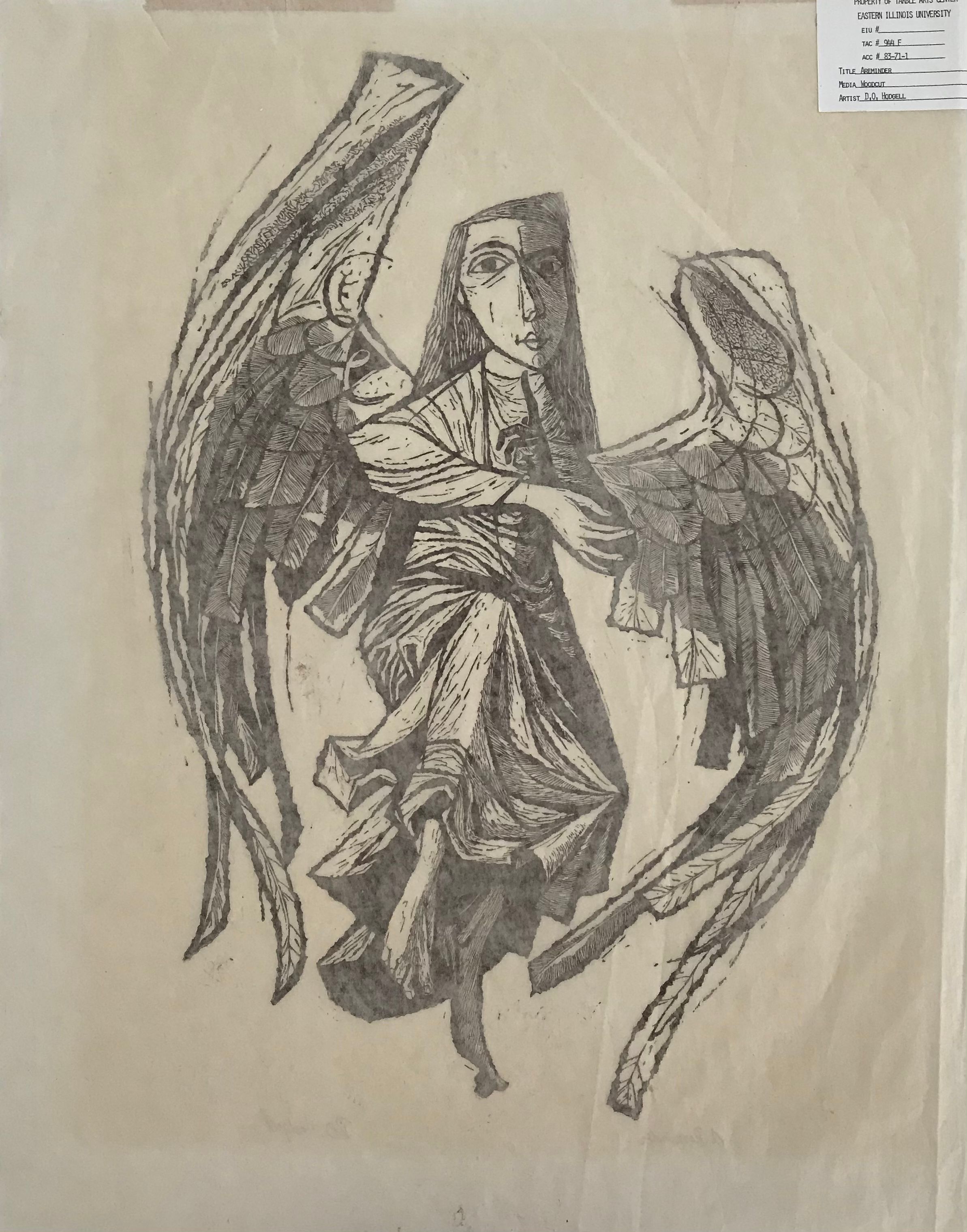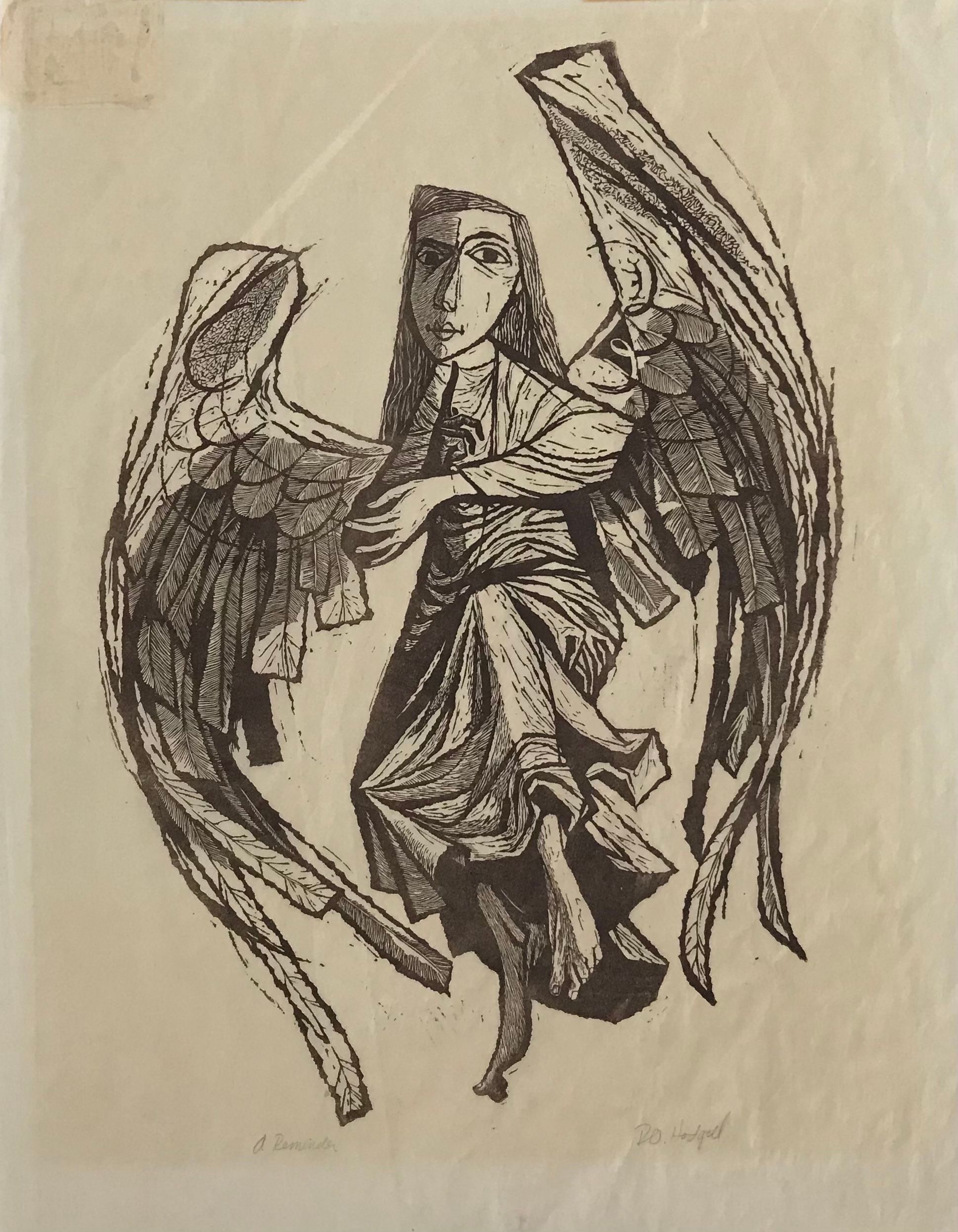 Brown print of angel giving warning on light weight paper.Collection