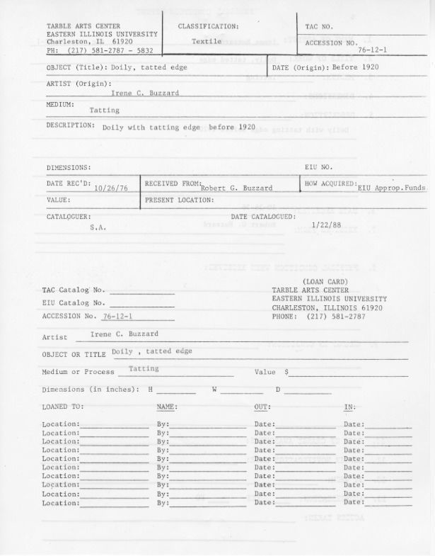 Created by Irene C. Buzzard. Used by Irene and her husband Robert G. Buzzard.Created By