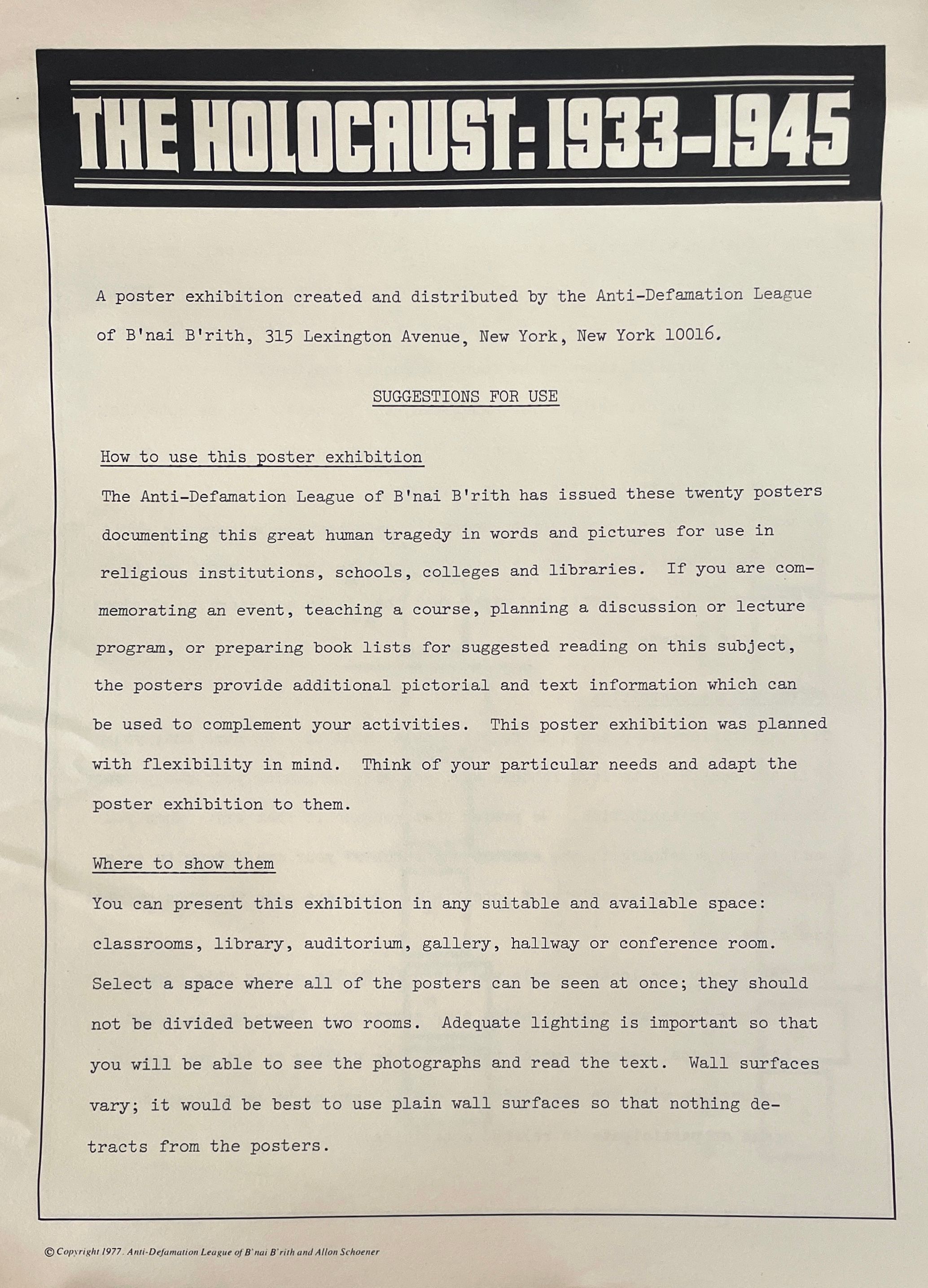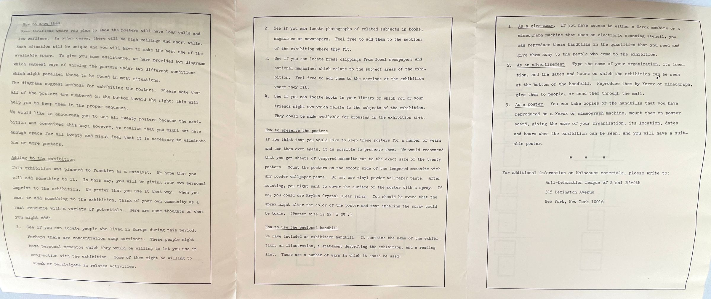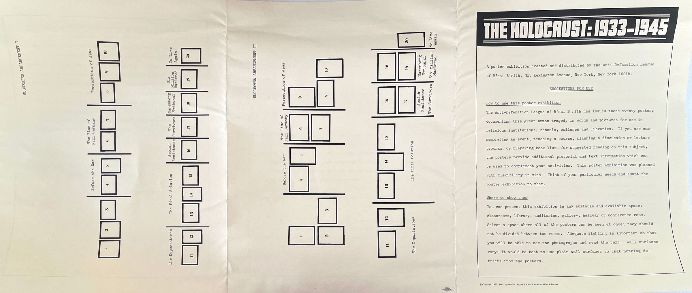 Twenty one pictures that depict the various stages of theholocaust in Europe. Each poster has a number in the right handcorner the first poster has the Star of David shown.Collection