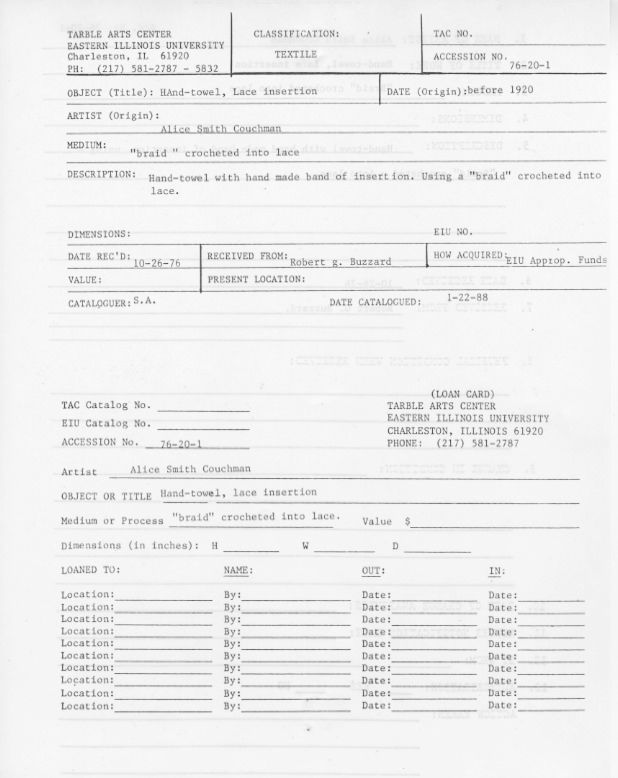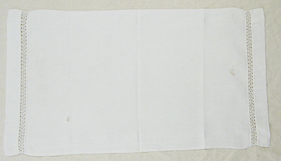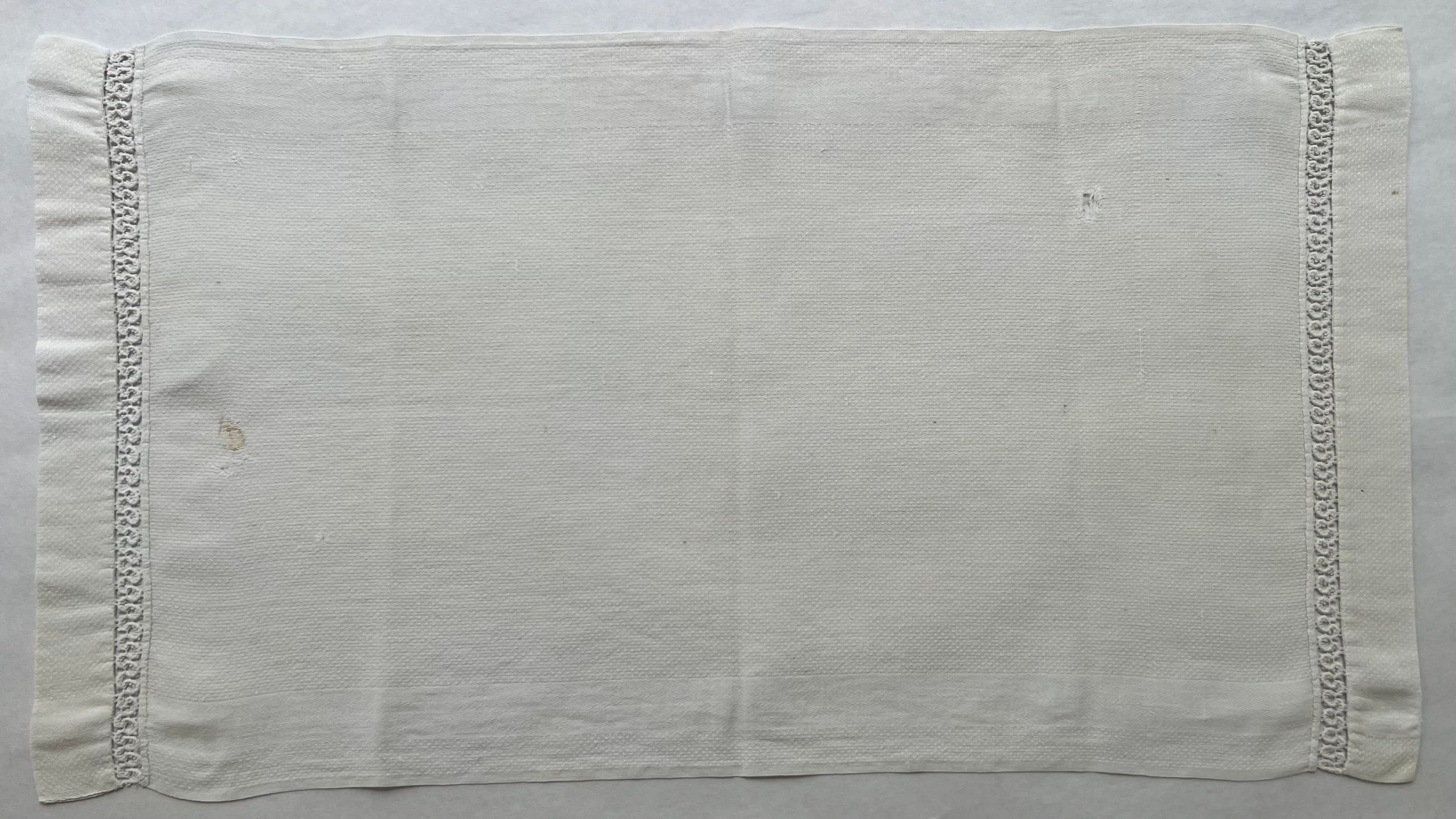 Hand towel with hand made band of insertion. Using a "braid" crocheted into lace.Collection