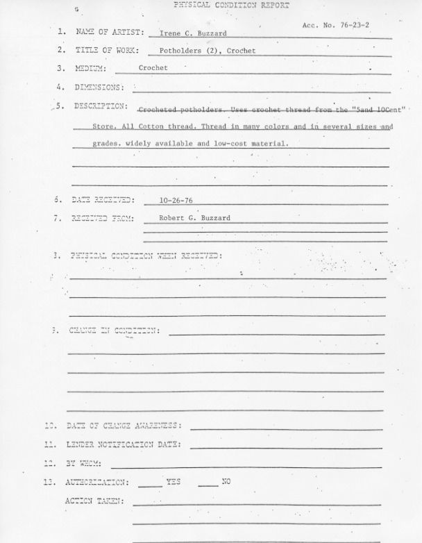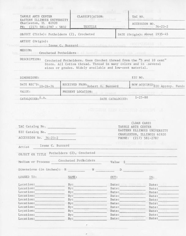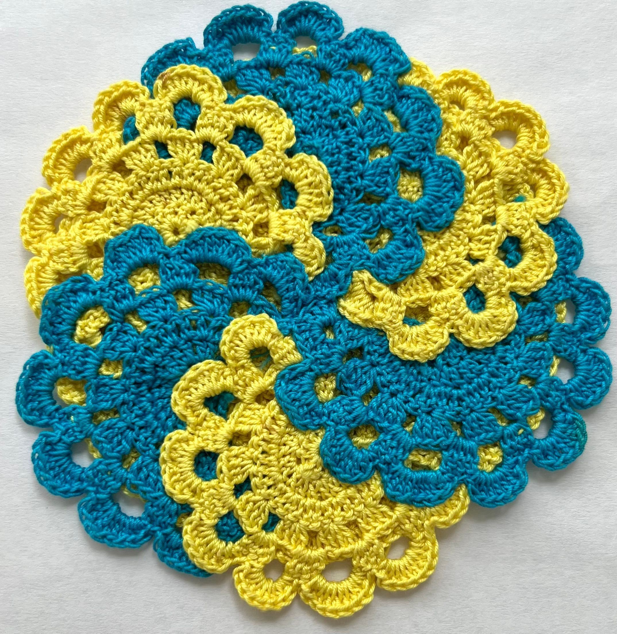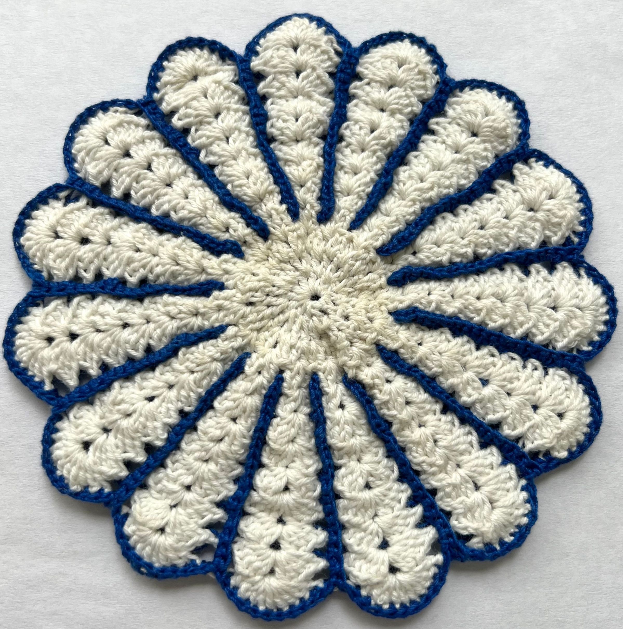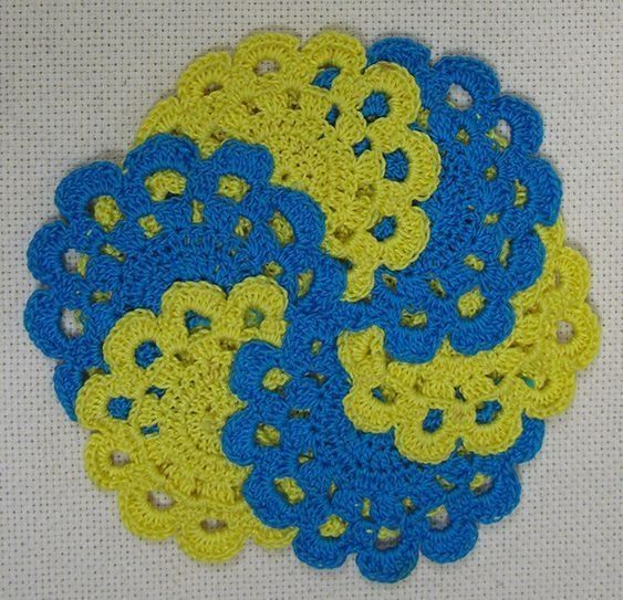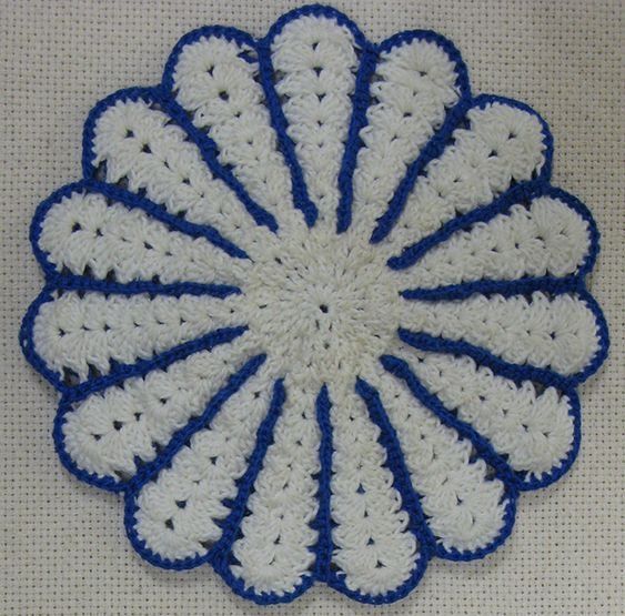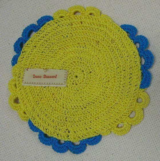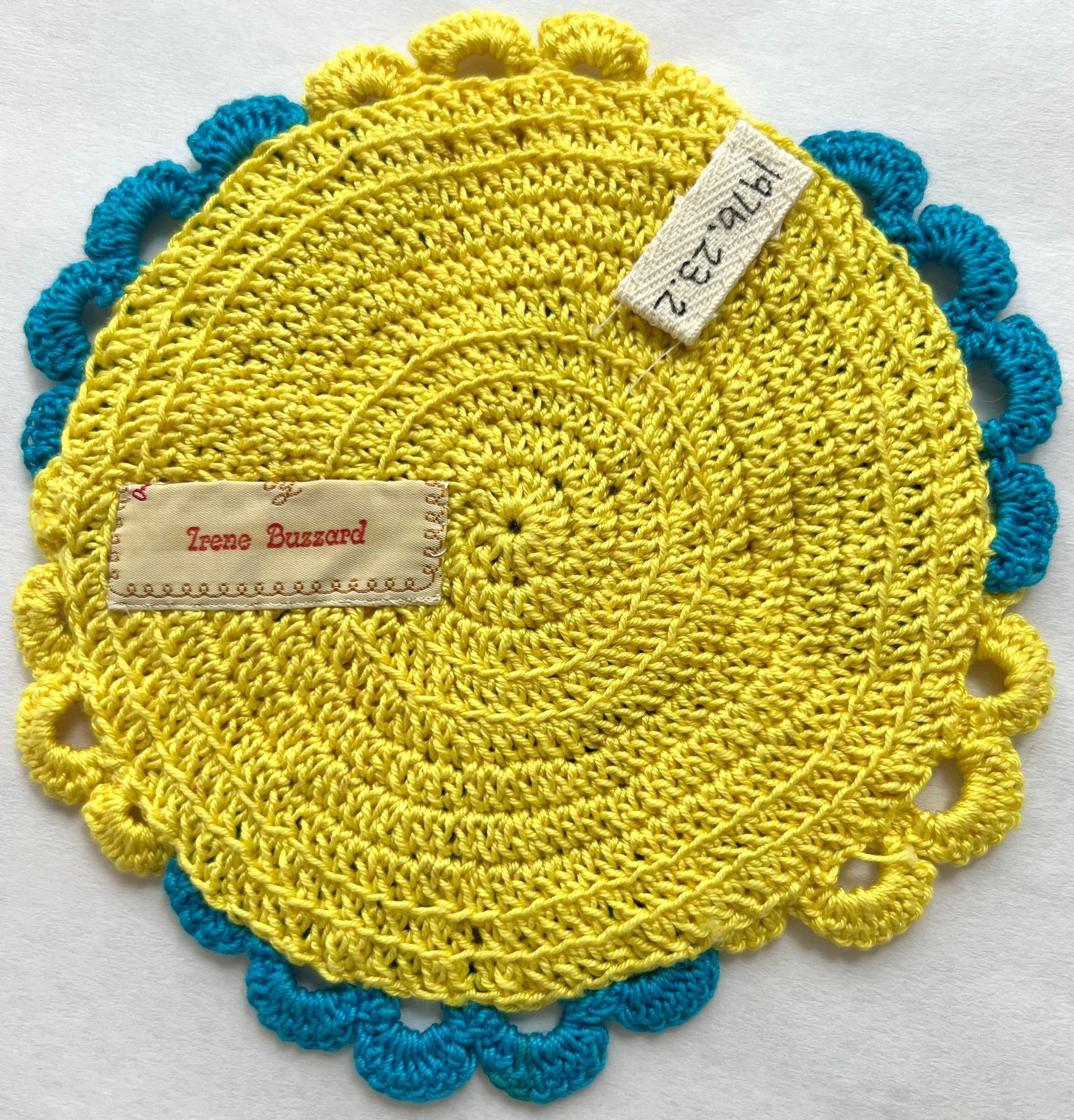Crocheted potholders. Uses crochet thread from the "5 and 10 cent" Store. All cotton thread. Thread in many colors and in several sizes or grades. Widely available and low-cost material.Collection