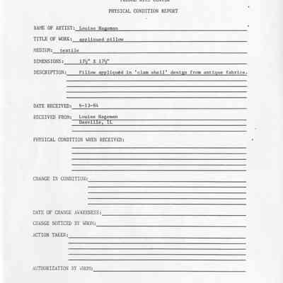 Pillow appliqued in "clam shell" design from antique fabric.Collection