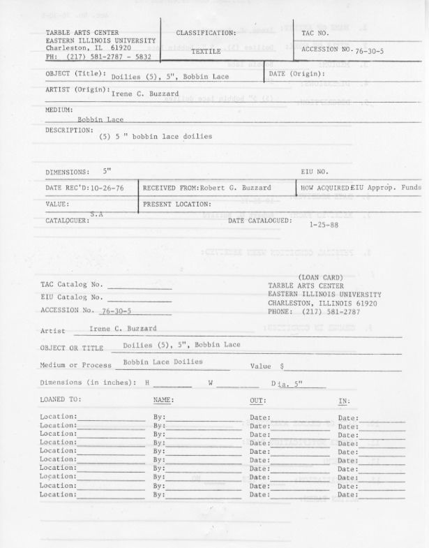 Doilies (5)Entry/Object ID
