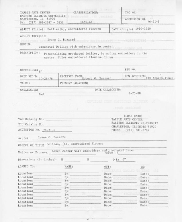 Doilies (6)Entry/Object ID