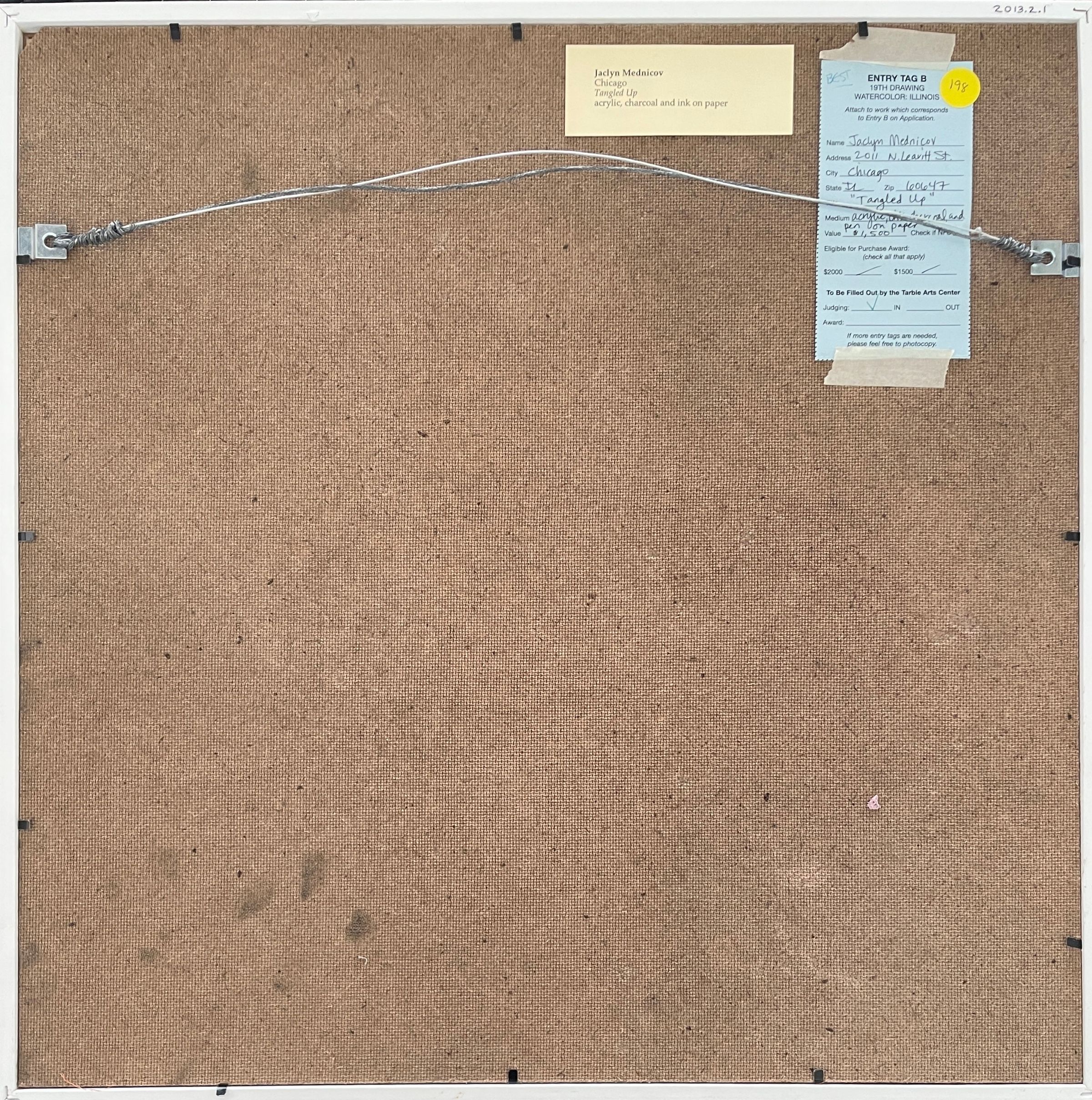 Mixed media on paper- acrylic, ink, charcoal, pen, loofa sponge, & botanical/plant leaves