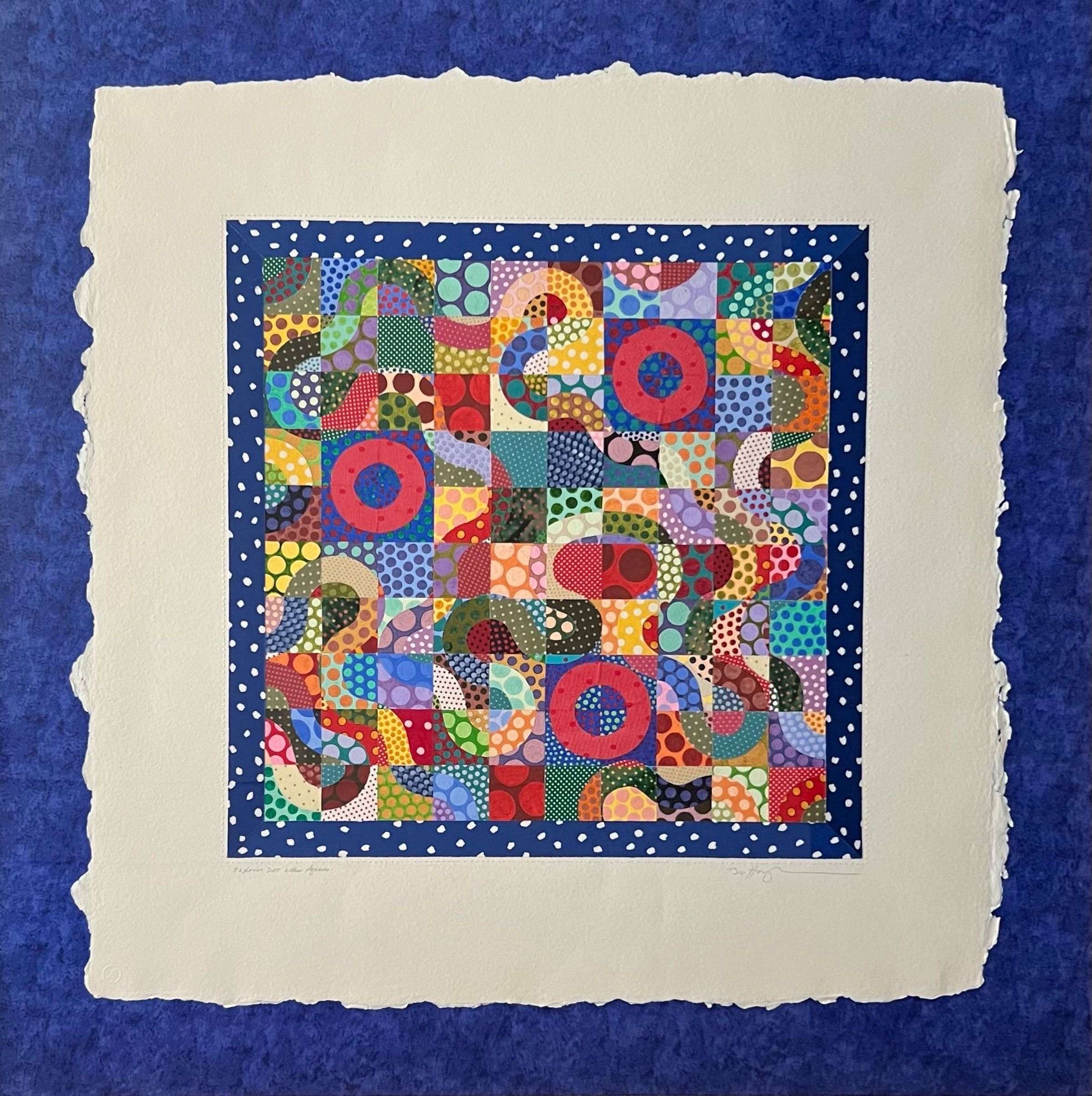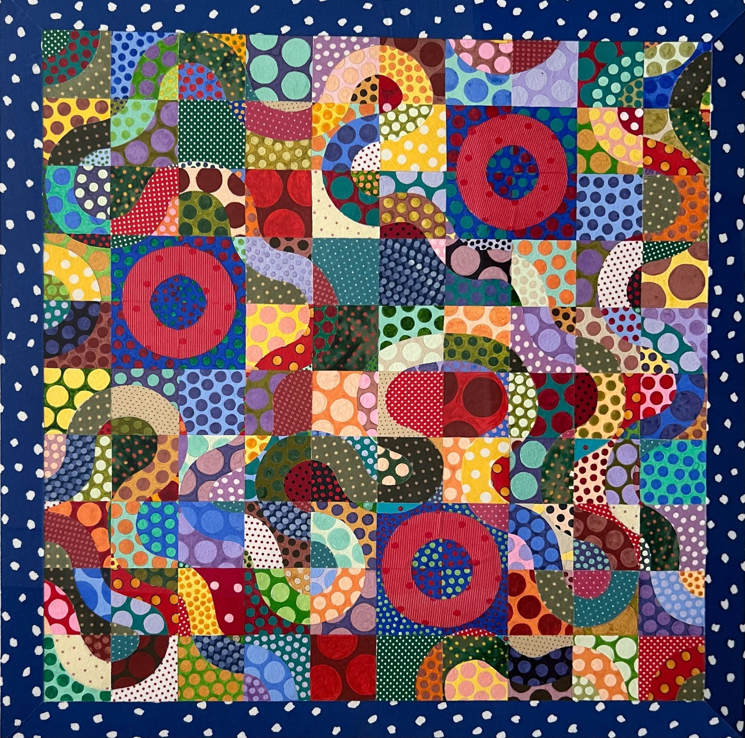 Explosion of dots with in squares- Watercolor on paper with cotton hand-stitched with threadArtwork Details
