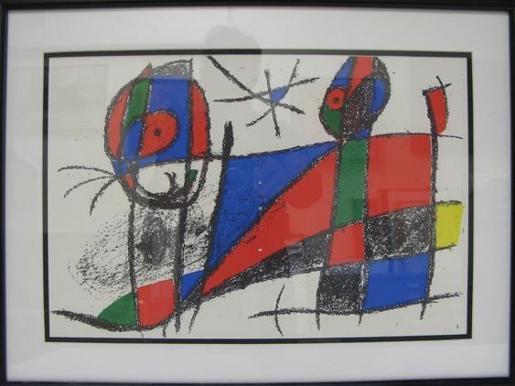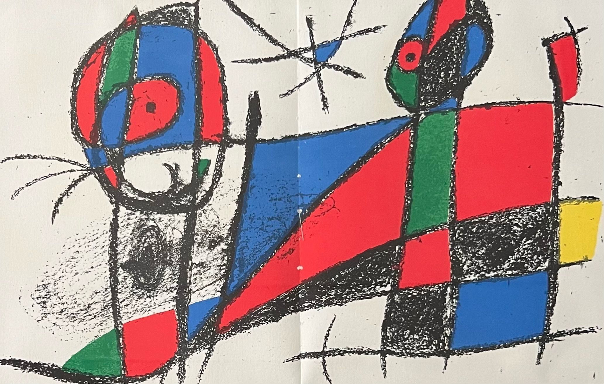 unsigned lithograph from book (?); black lines with primary color section areas within figures (abstracted ?)Artwork Details