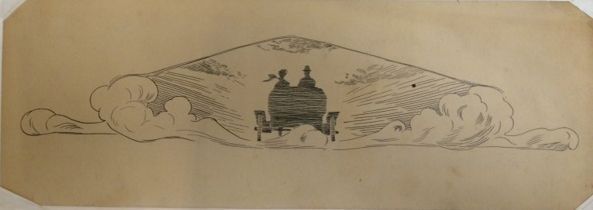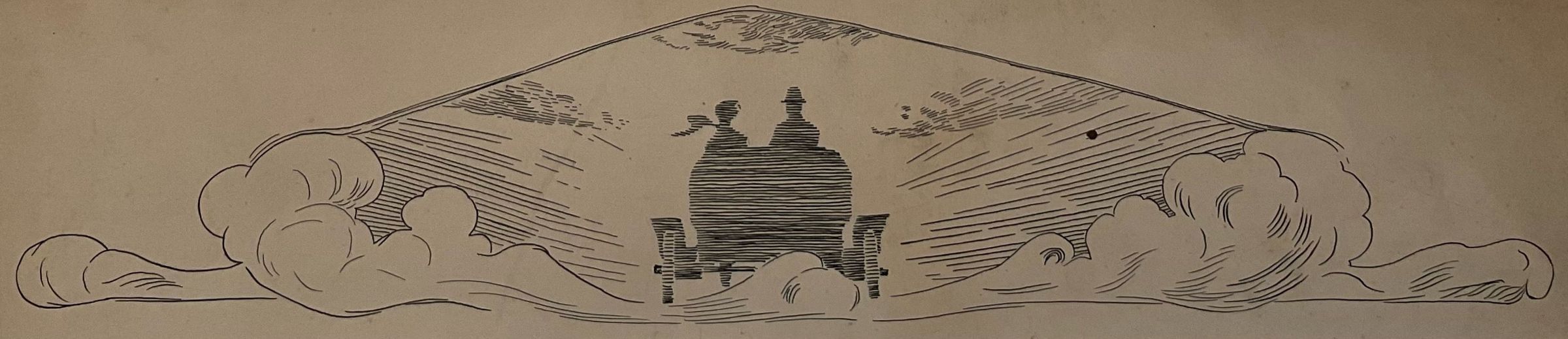 Triangular composition of the back side of a Model-T car driving away. Two people are sitting in the vehicle, one with a scarf flowing in the breeze.Acquisition