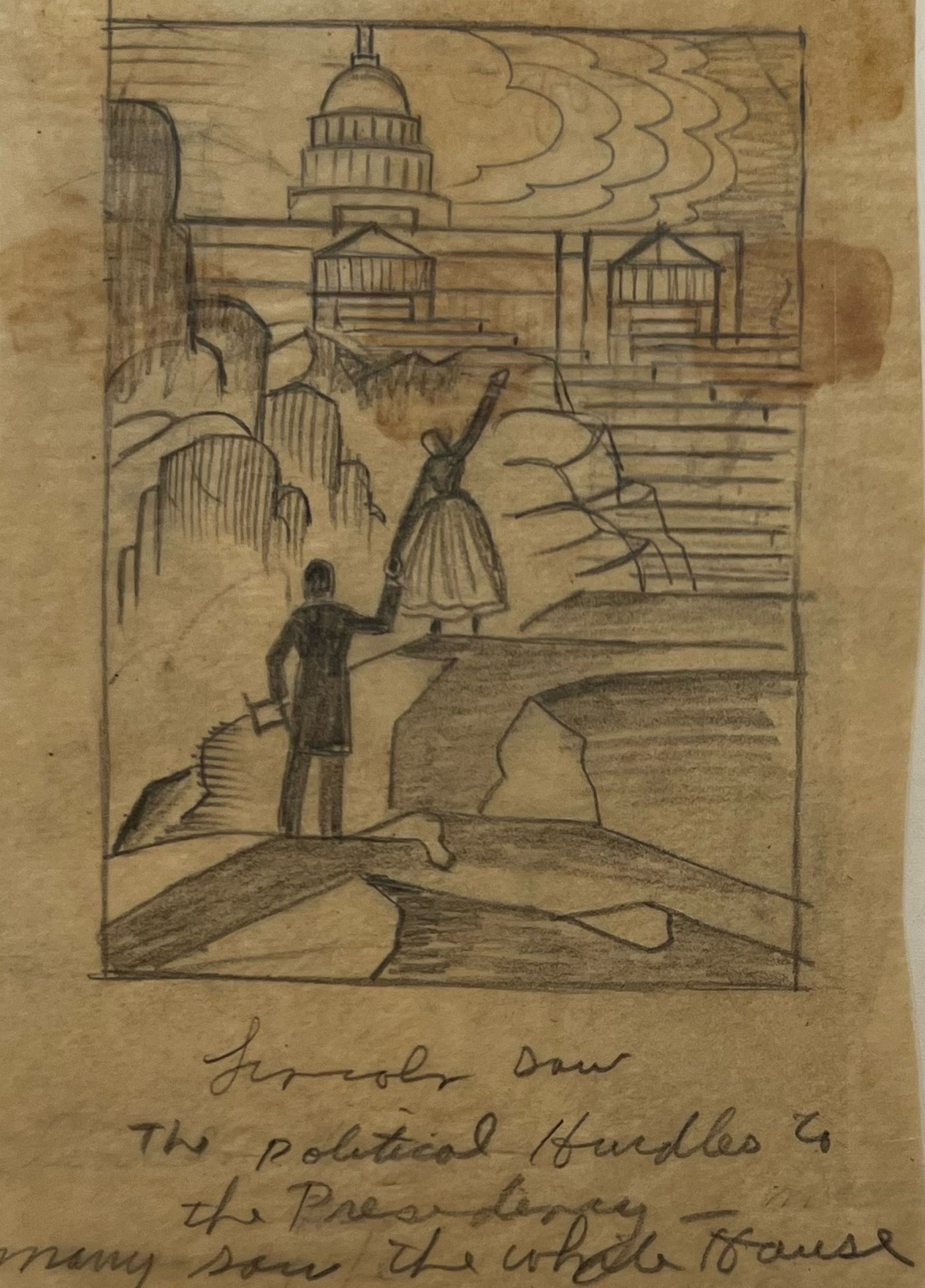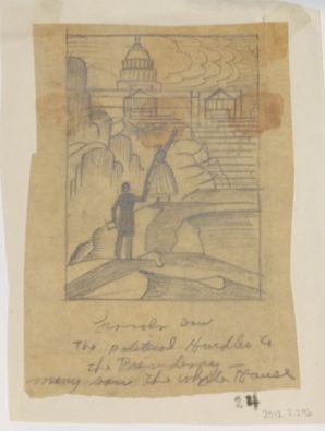 Preliminary and composite sketch for Turzak's book "Abraham Lincoln in Woodcuts". Image of man and woman climbing up mountain in the background there is the capitol building. Printed in the United States at Chicago 1933 during 'A Century of Progress Exposition'"Collection