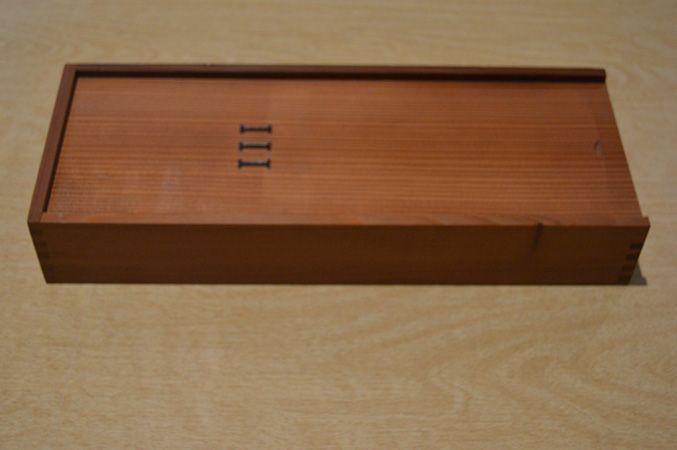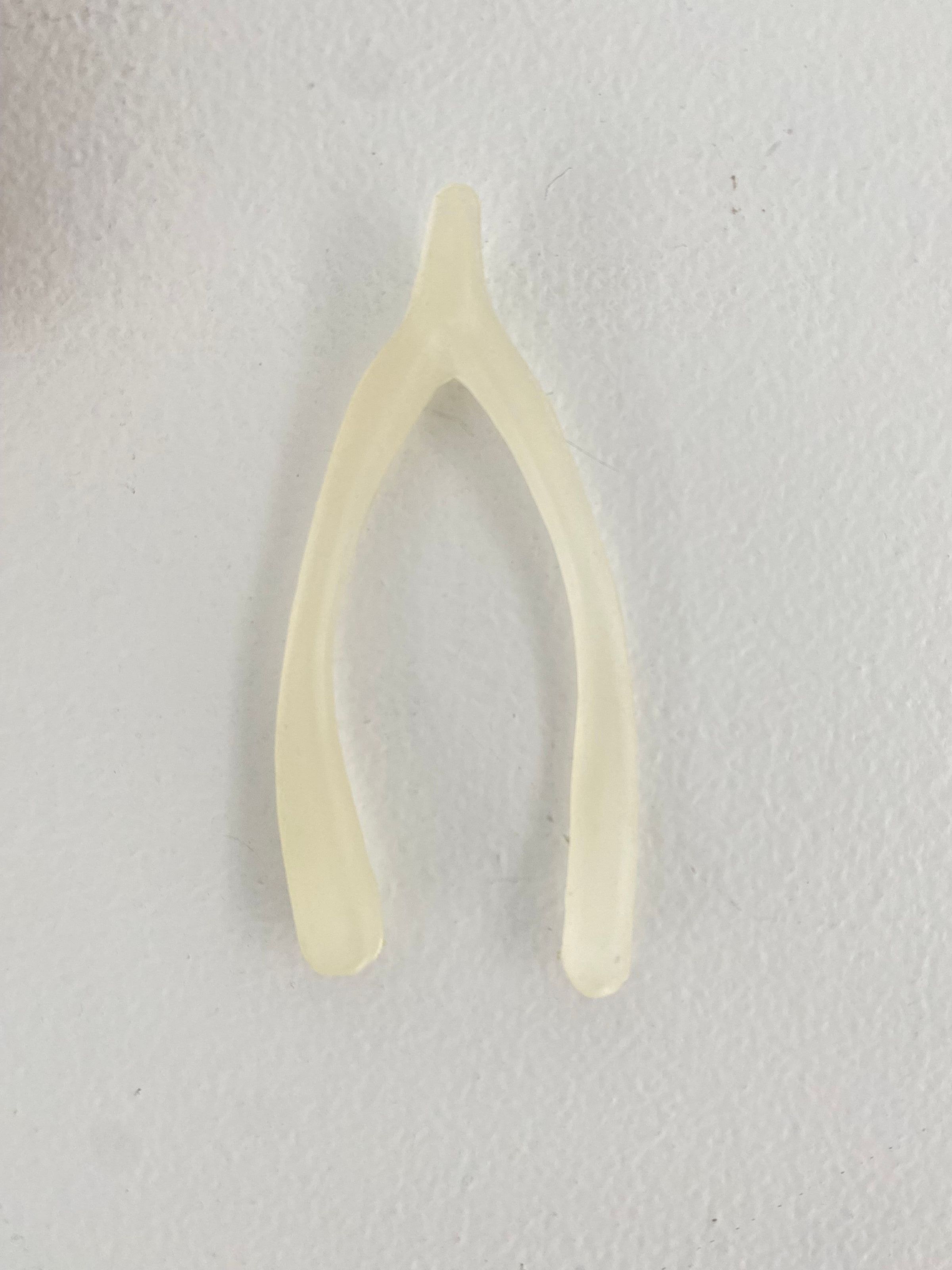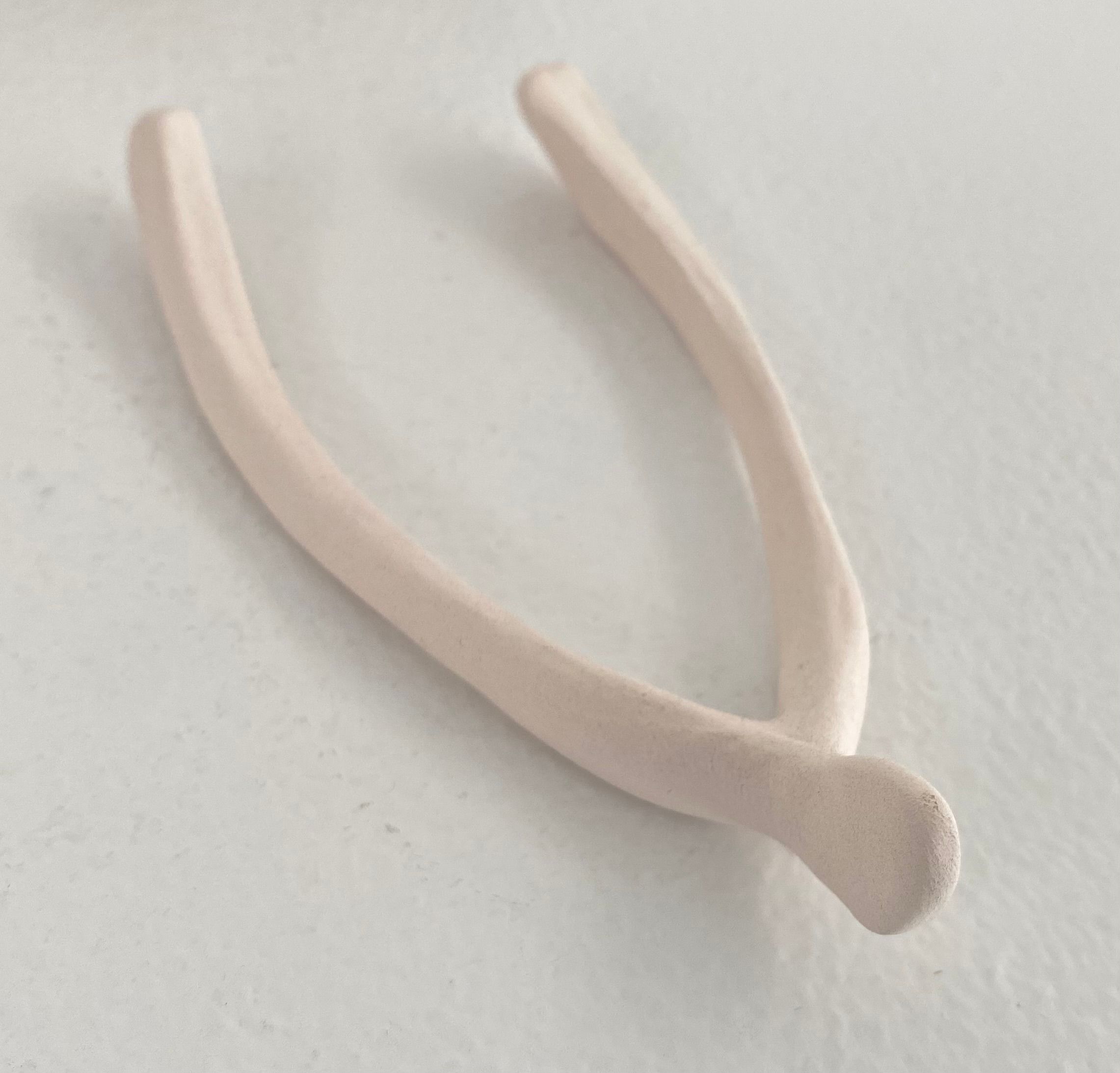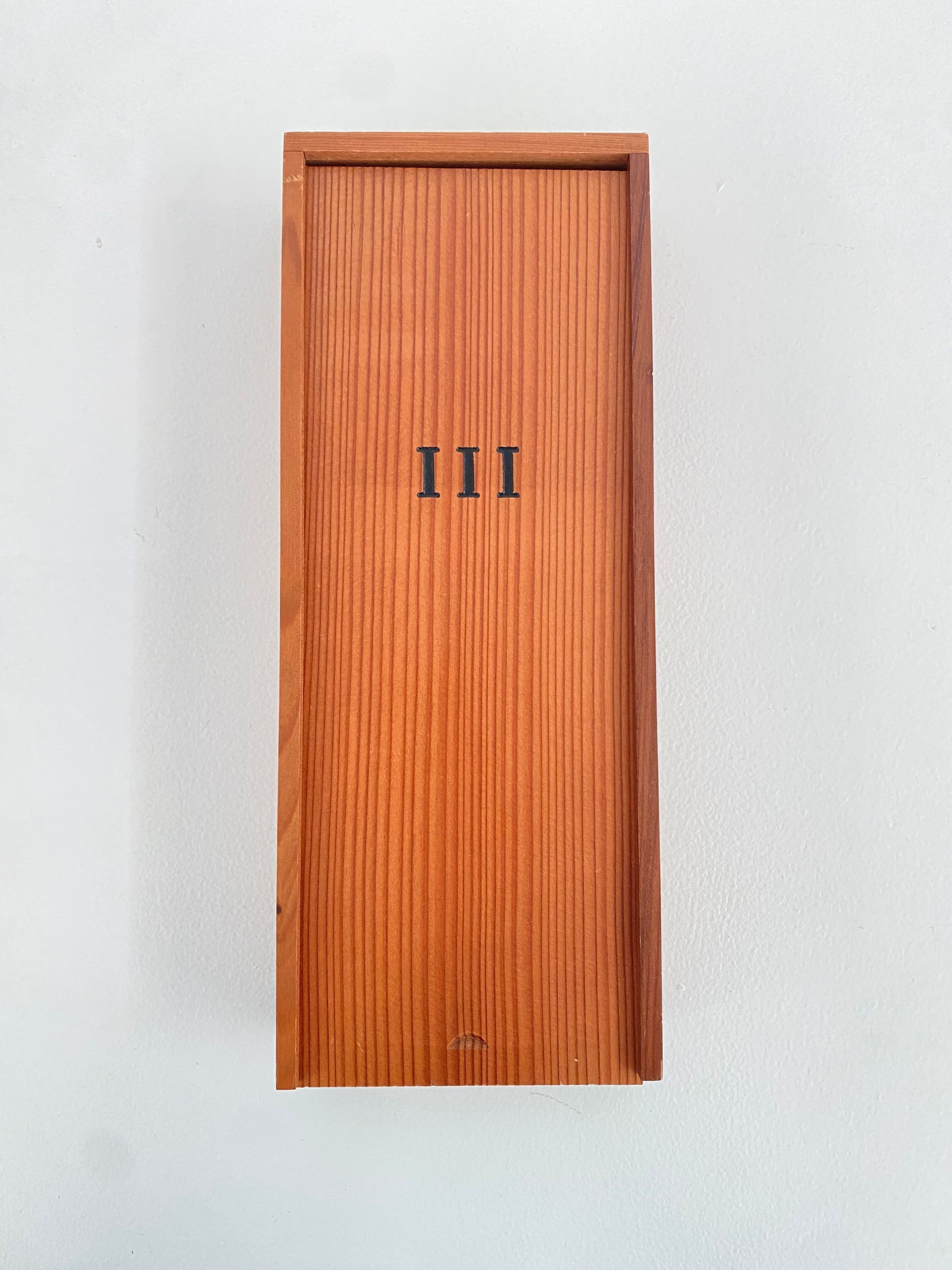 Wooden box with Roman numeral "III" engraved on lid. Lid slips out. Contains three wishbone inside: one ceramic, one bronze, one latex. Wishbones held inside form-fitting felt. Waterless lithography printed on felt by hand.Collection