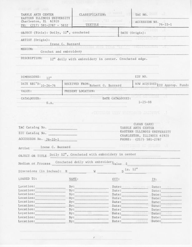 Doily with Embroidered FlowersEntry/Object ID