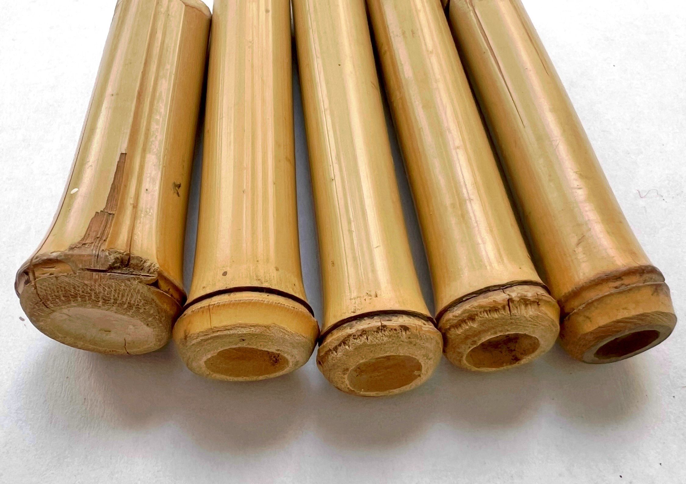Yellow-tan- hollow cane stalk with carved mouthpiece. Approximately 3 inches long.Collection