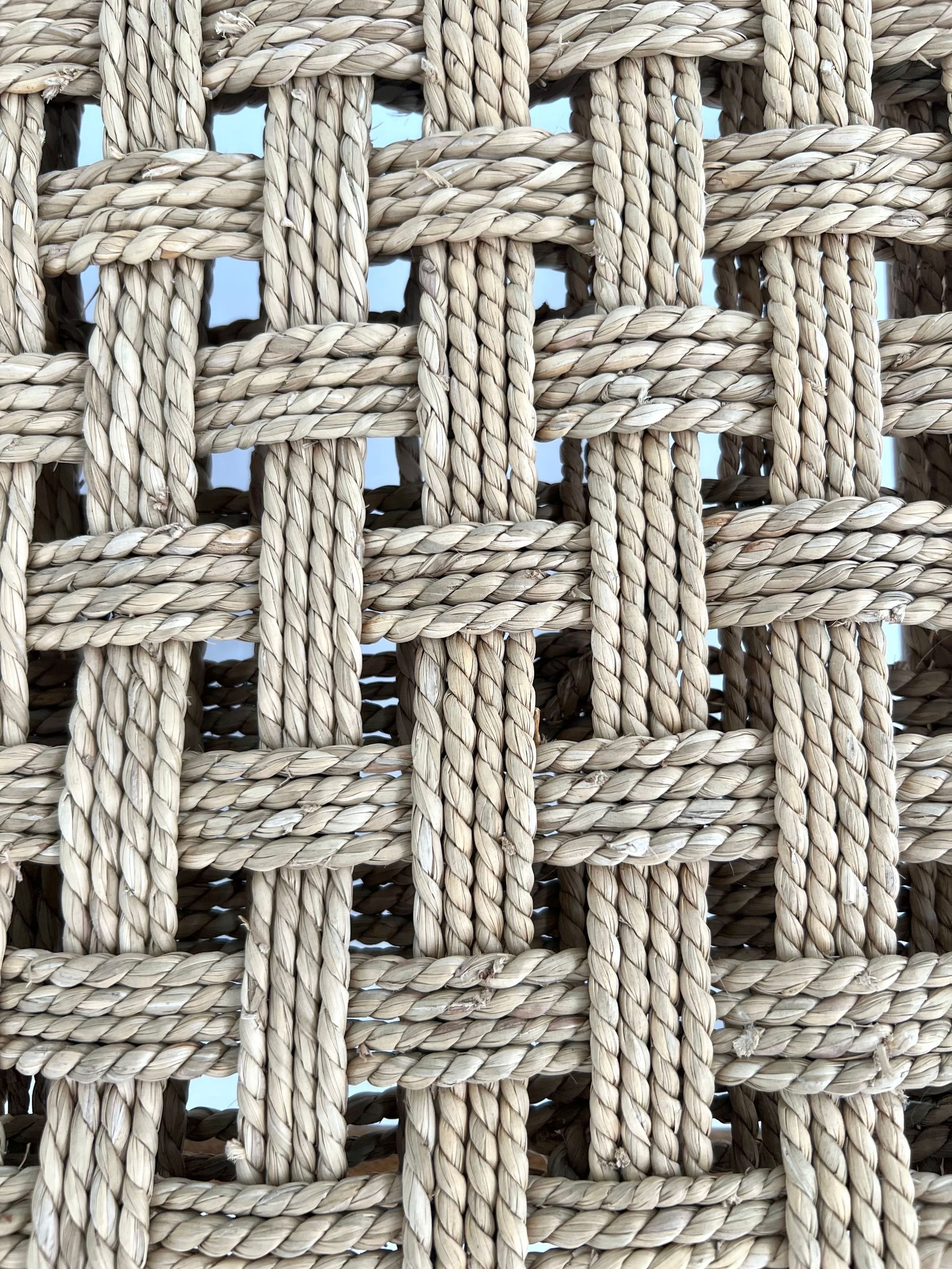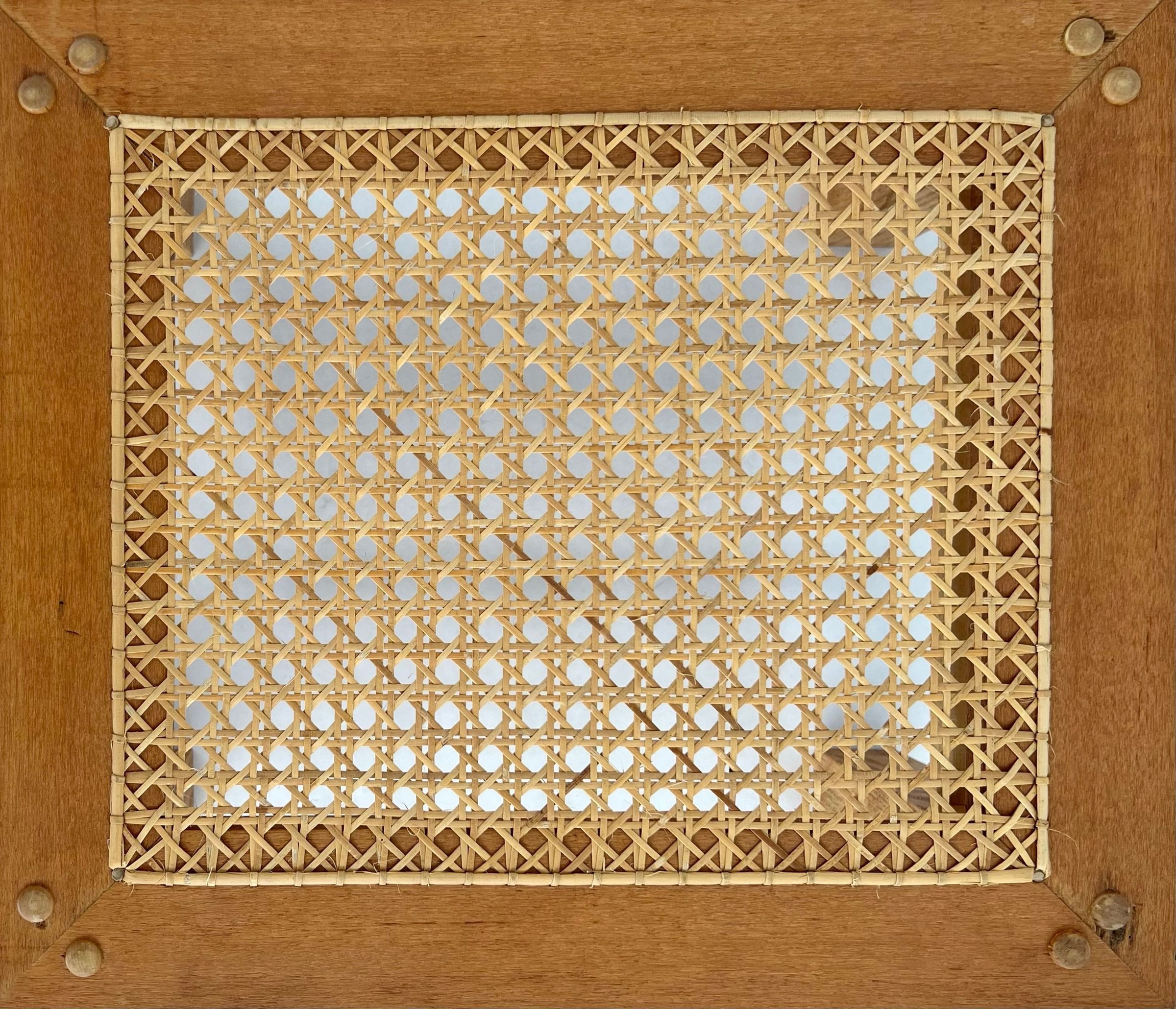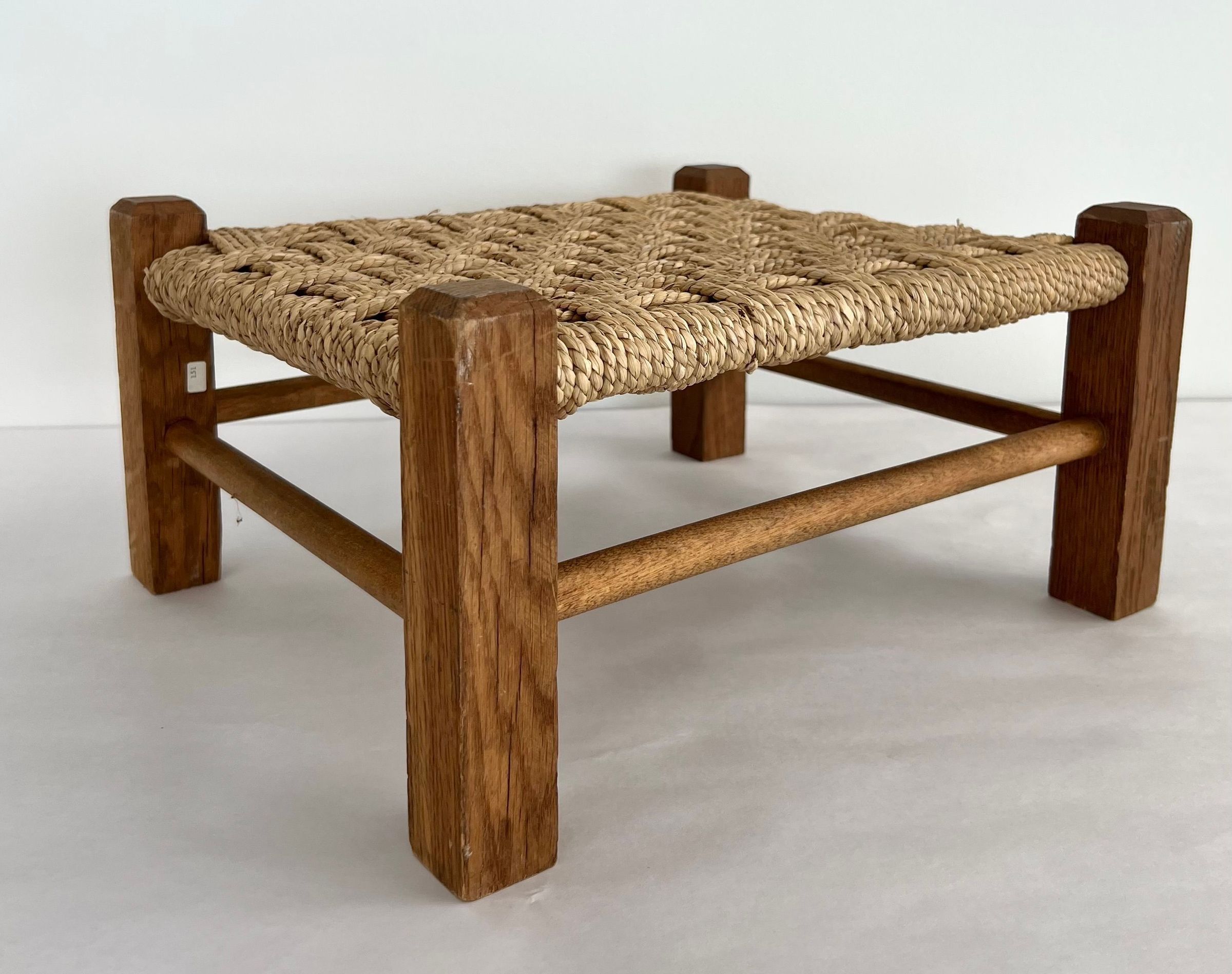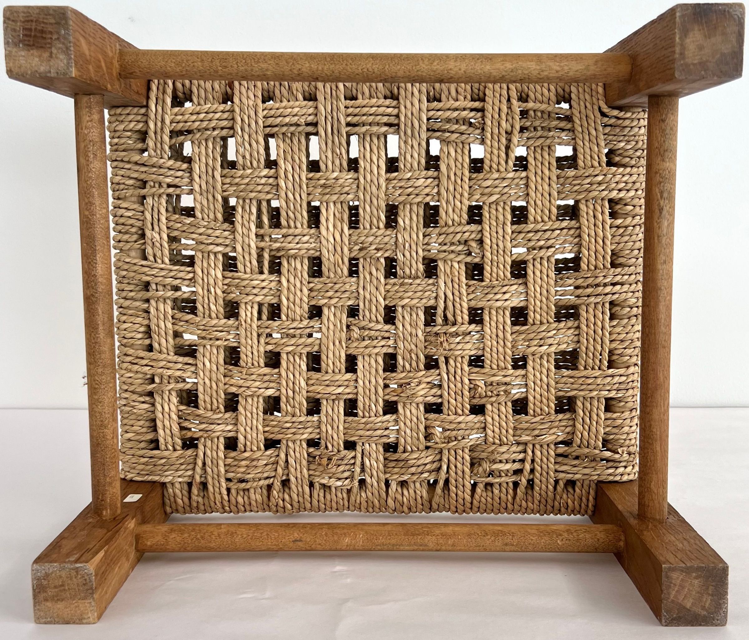 5 caned stools all using split oak & woven seats. Uses herringbone weave, seawood, & over-under weave. All are light brown in color and set close to the ground.Collection