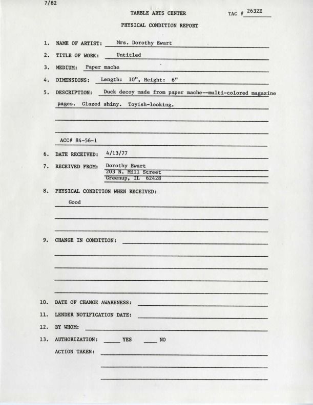 Papier Mache Duck Decoy (UNTITLED)Entry/Object ID