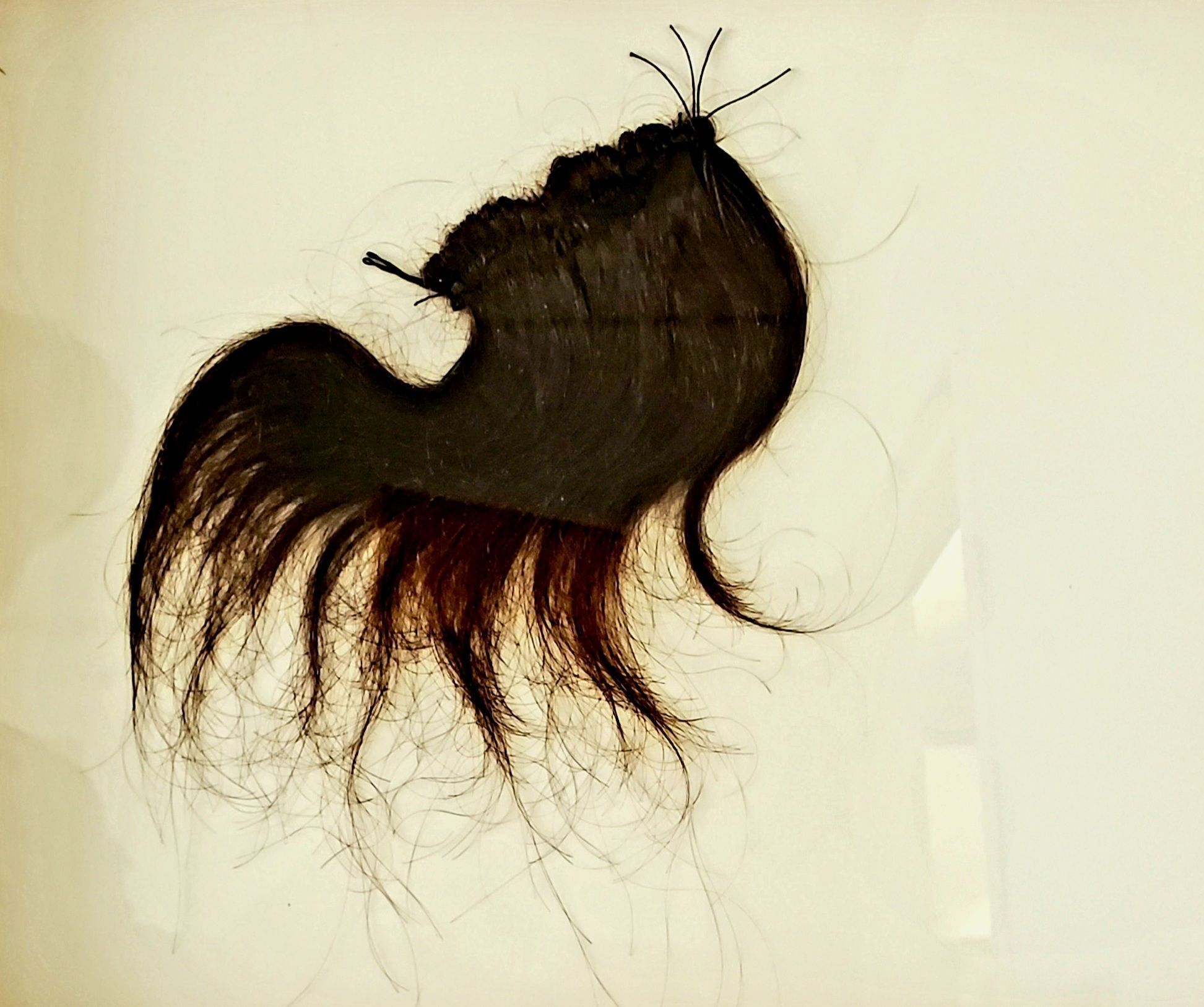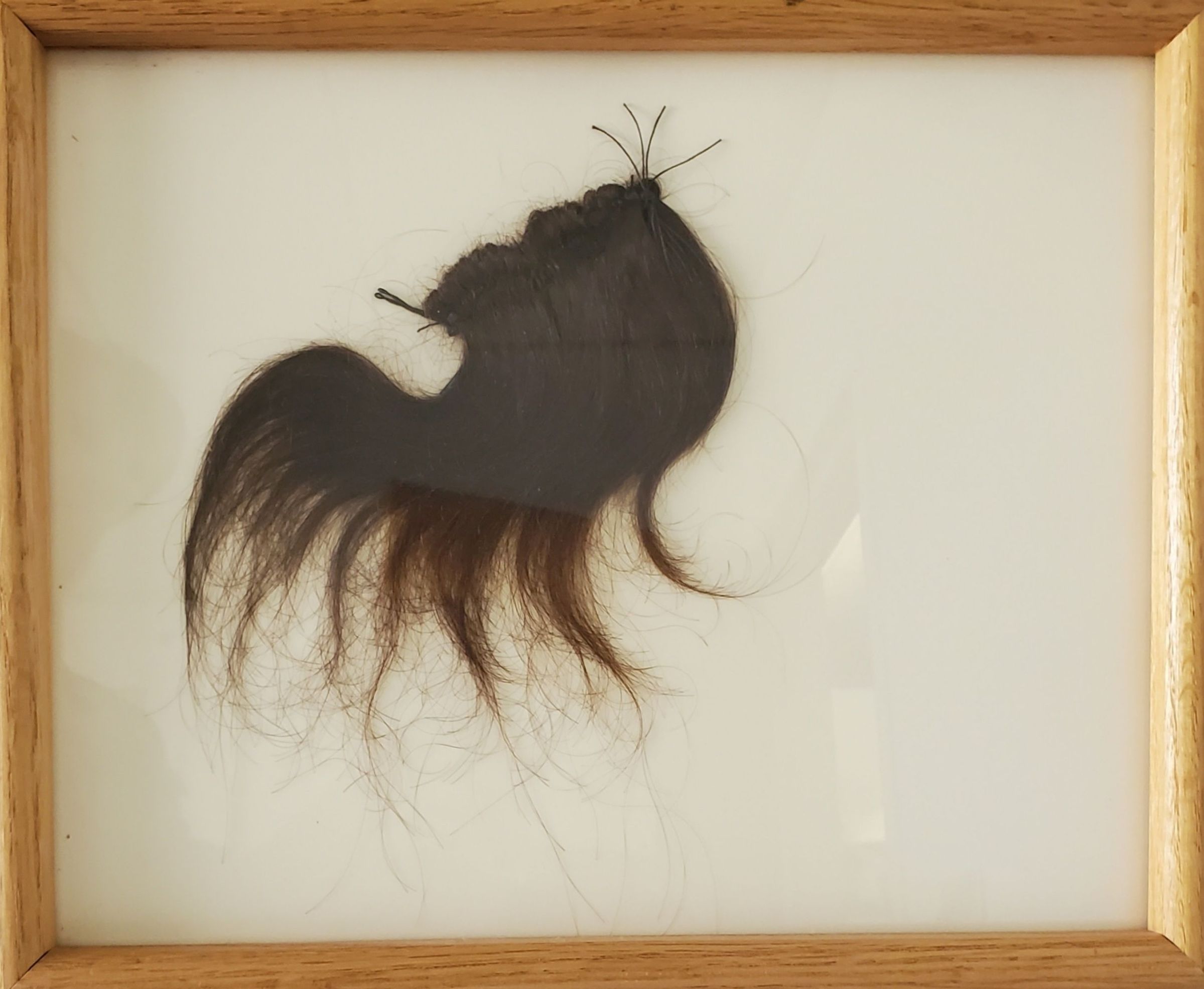 Hair switch made from human hair, dark brown in color, bundled at top to hold together.Collection