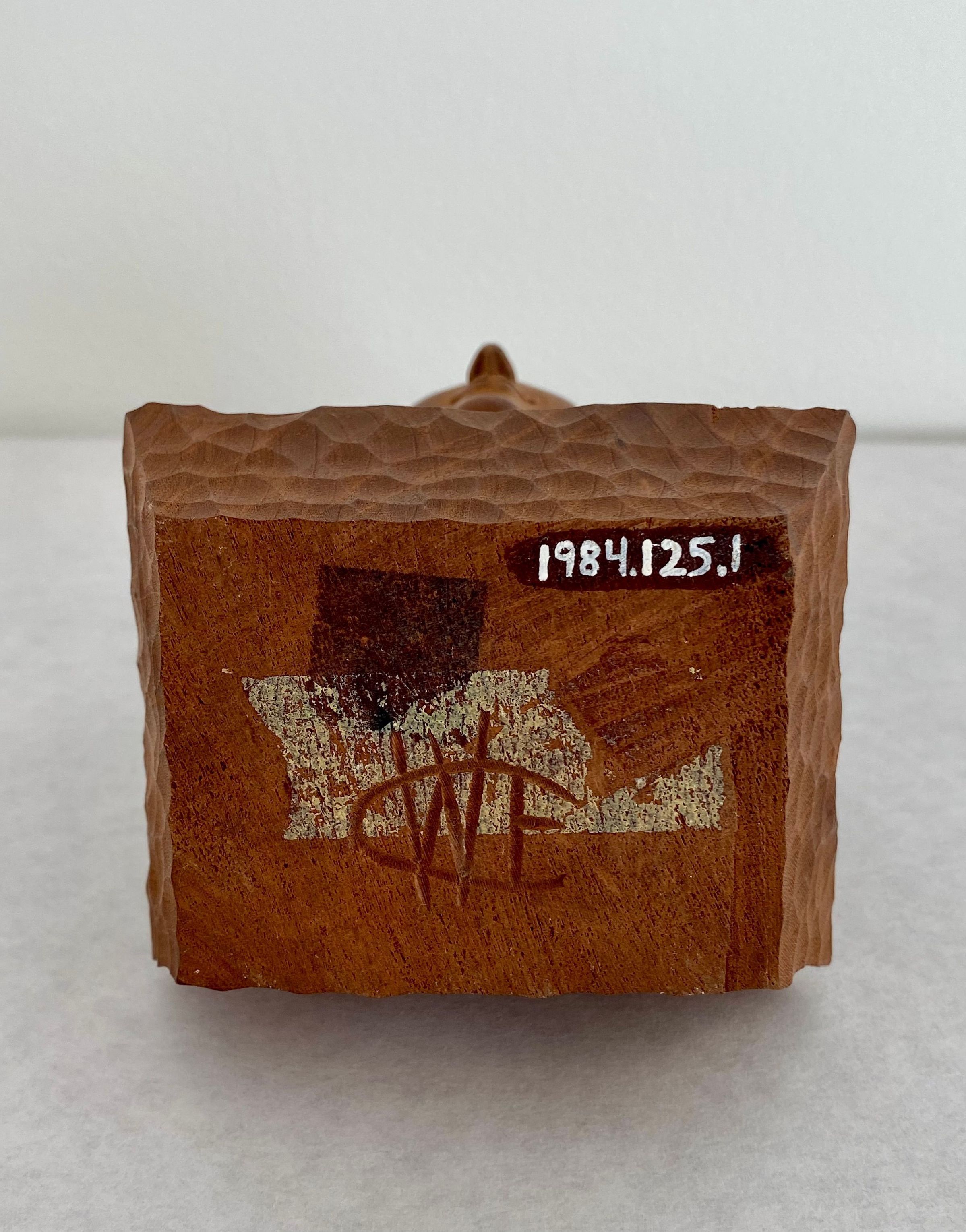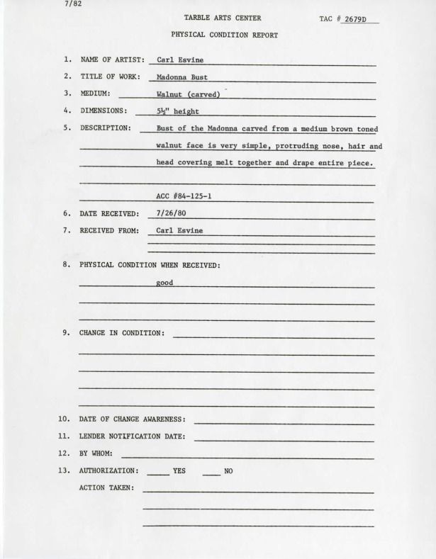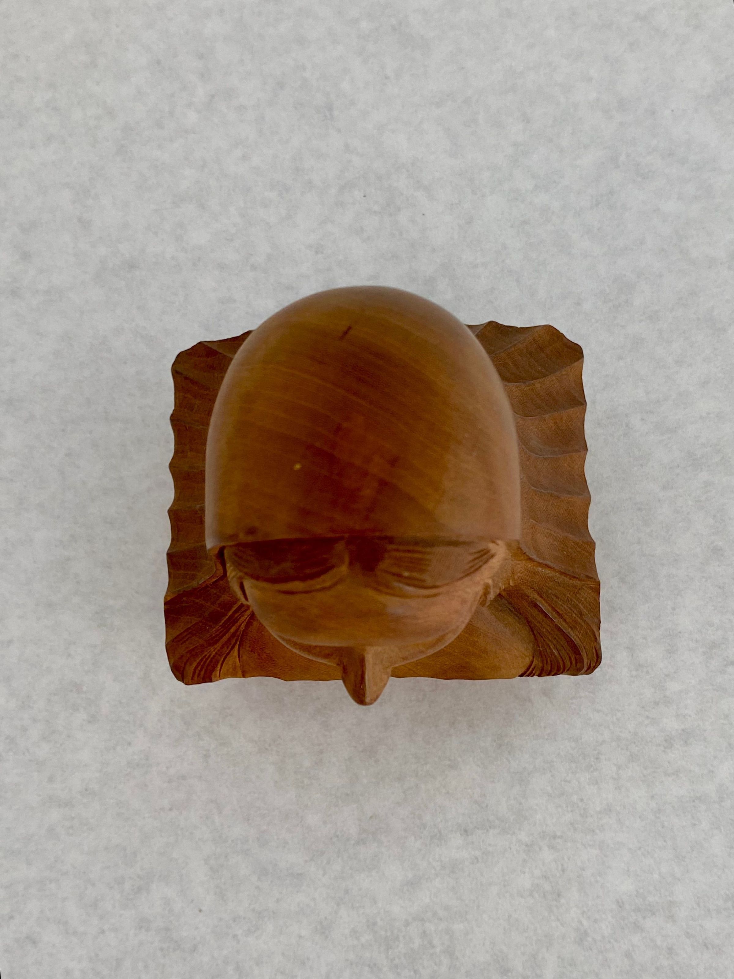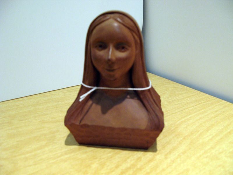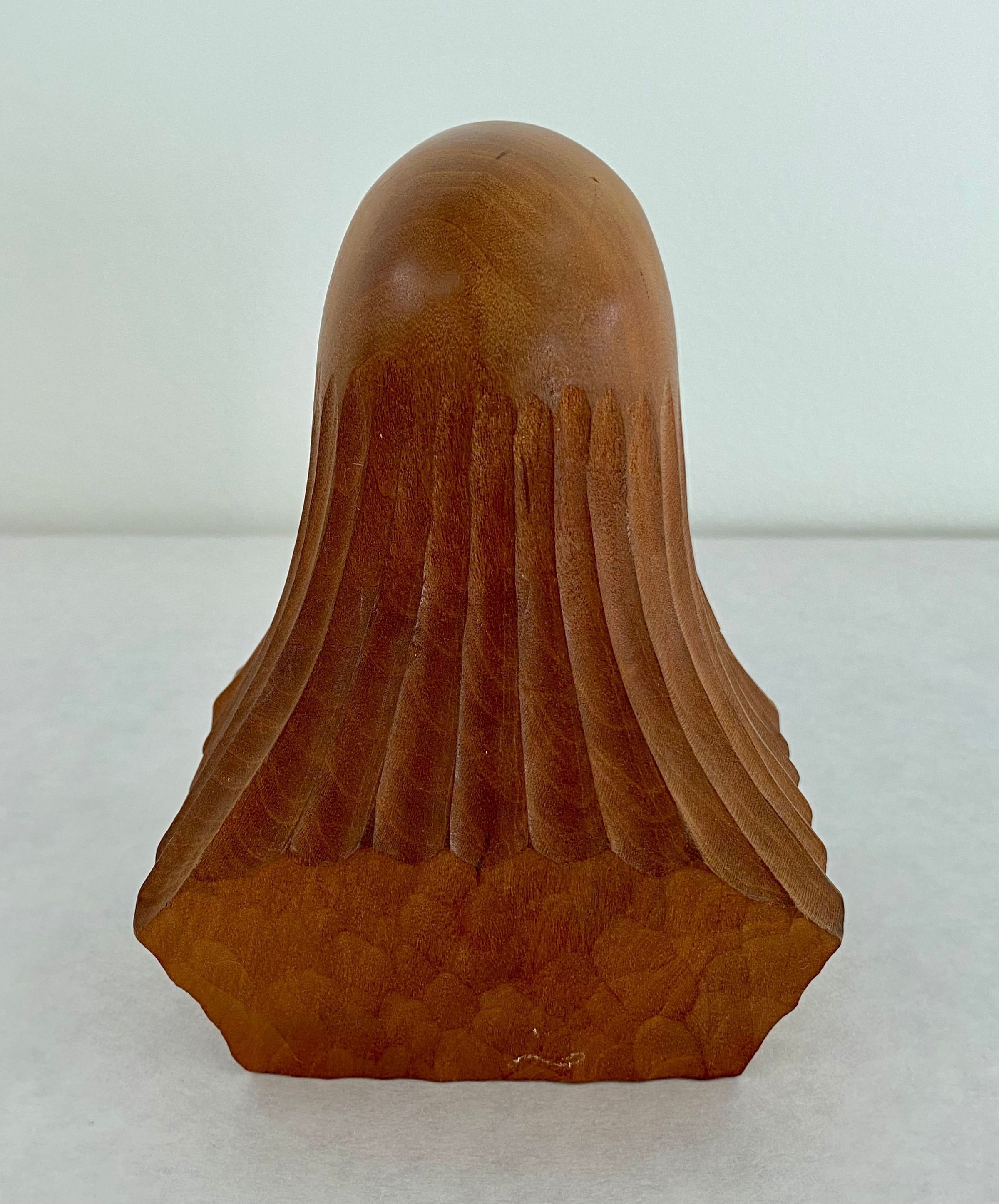 Bust of Madonna carved from a medium brown toned walnut face is simple protruded nose, hair and head covering together and drape entire piece.Collection