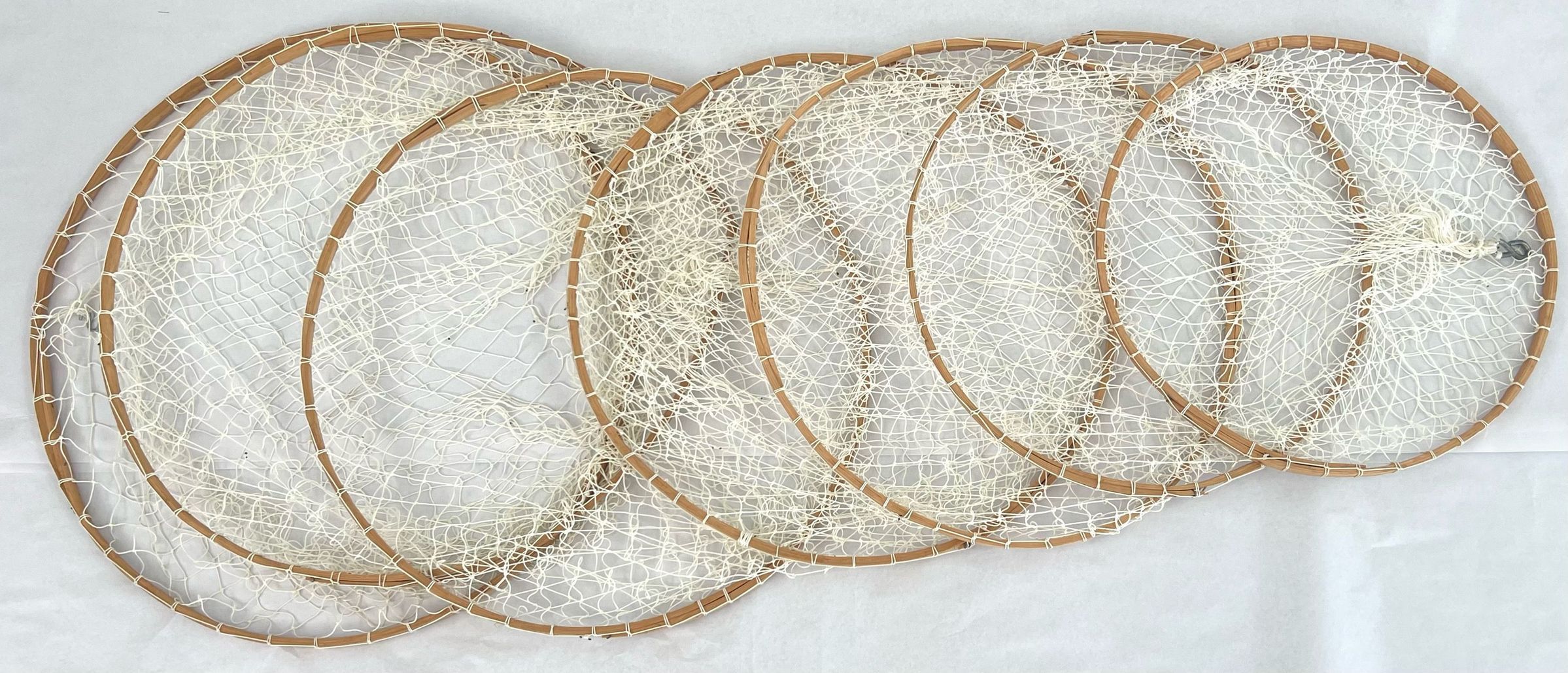 Hand knit hoop net hoops are constructed from colored oak, nylon netting is white.Collection
