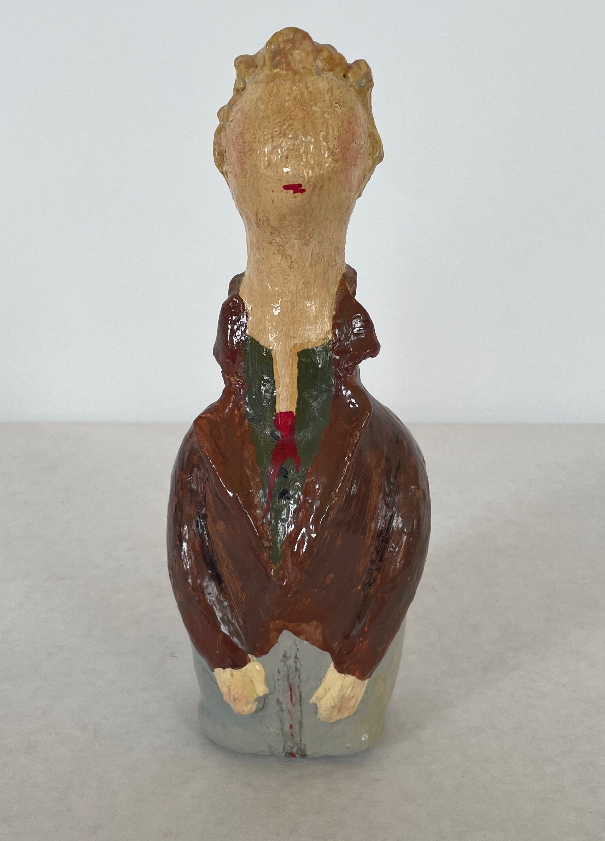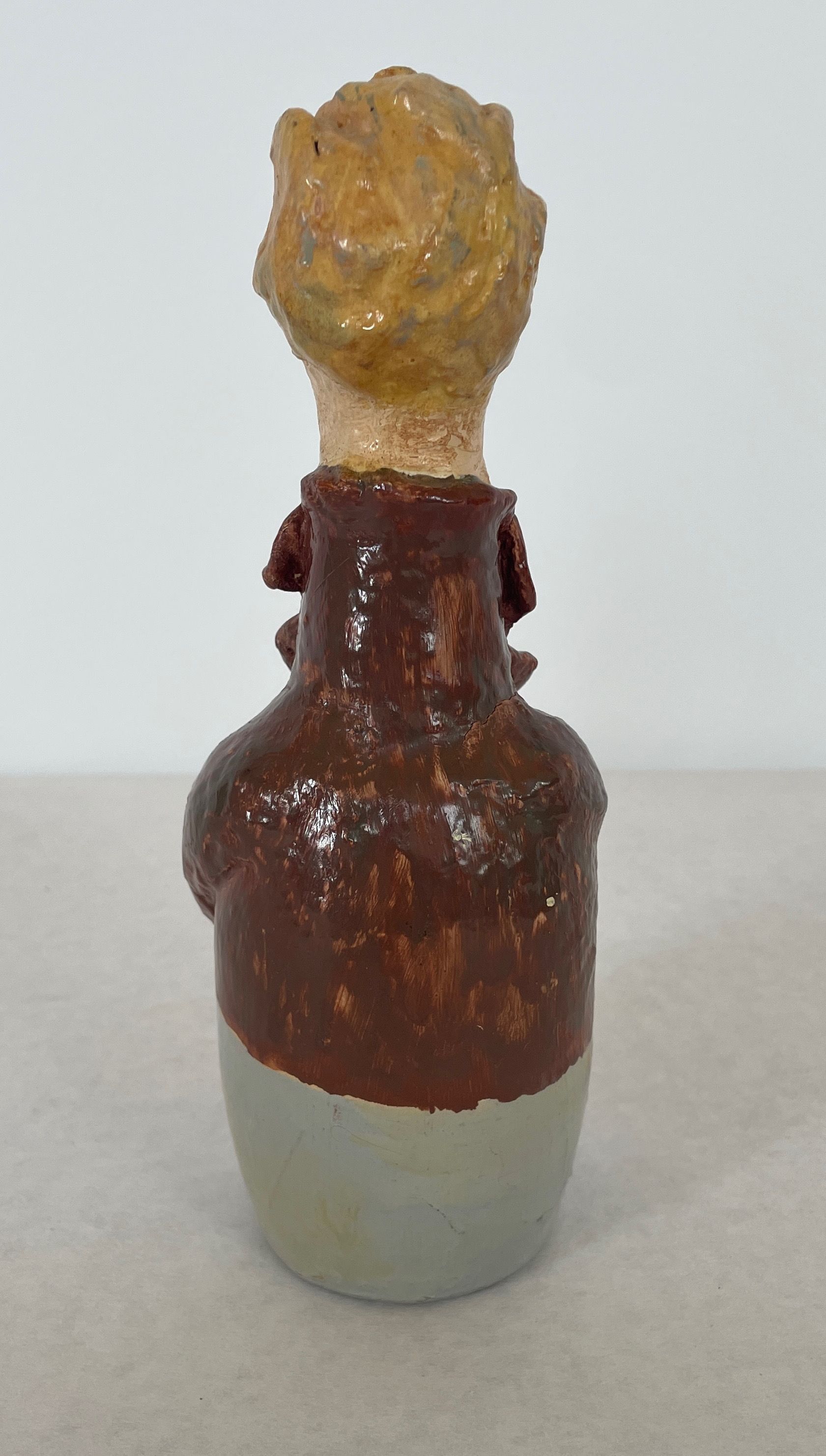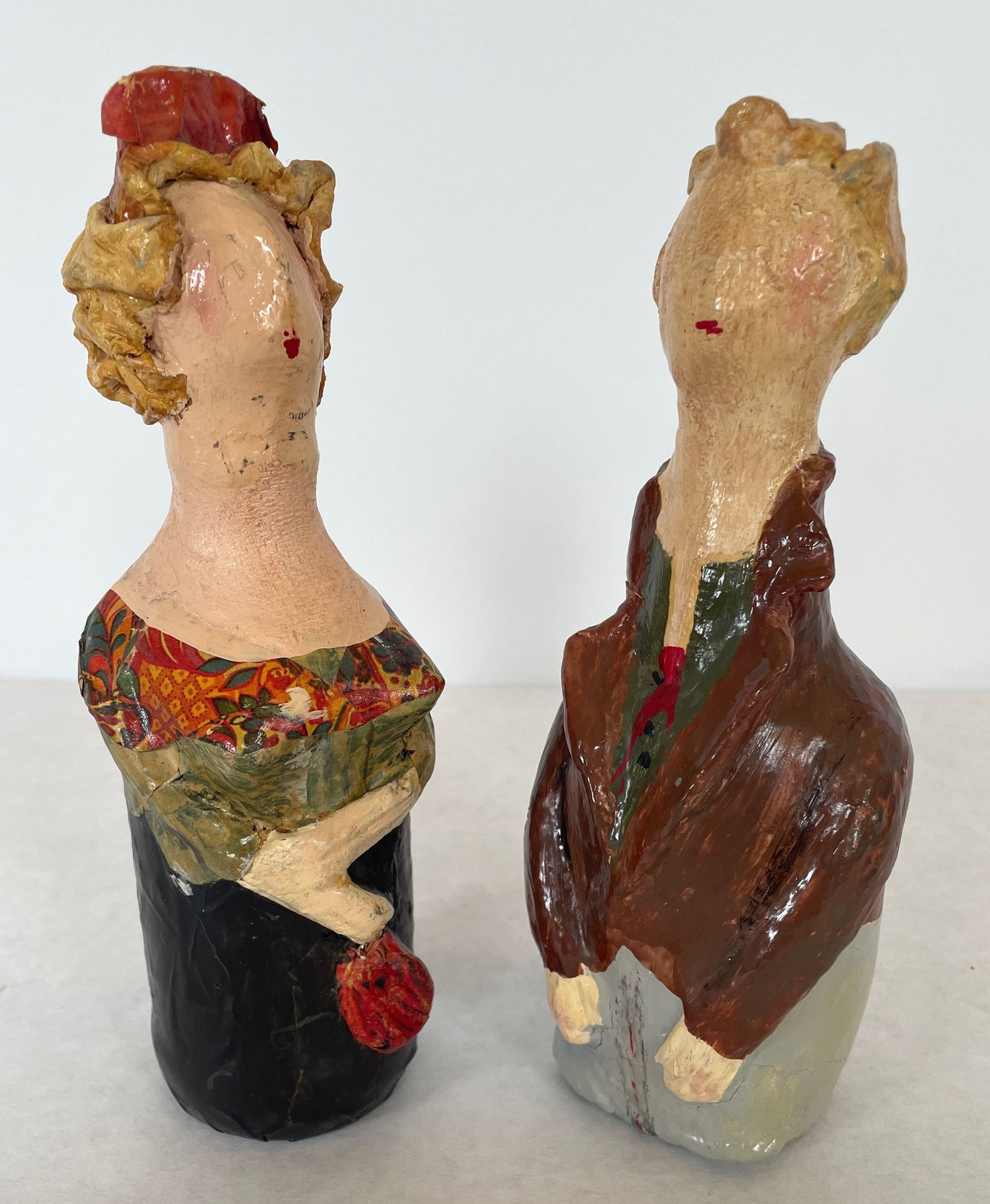Paper mache man and women painted. Paper mached onto brown glass bottles.Artwork Details