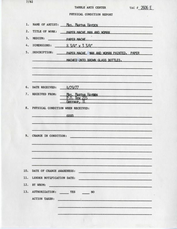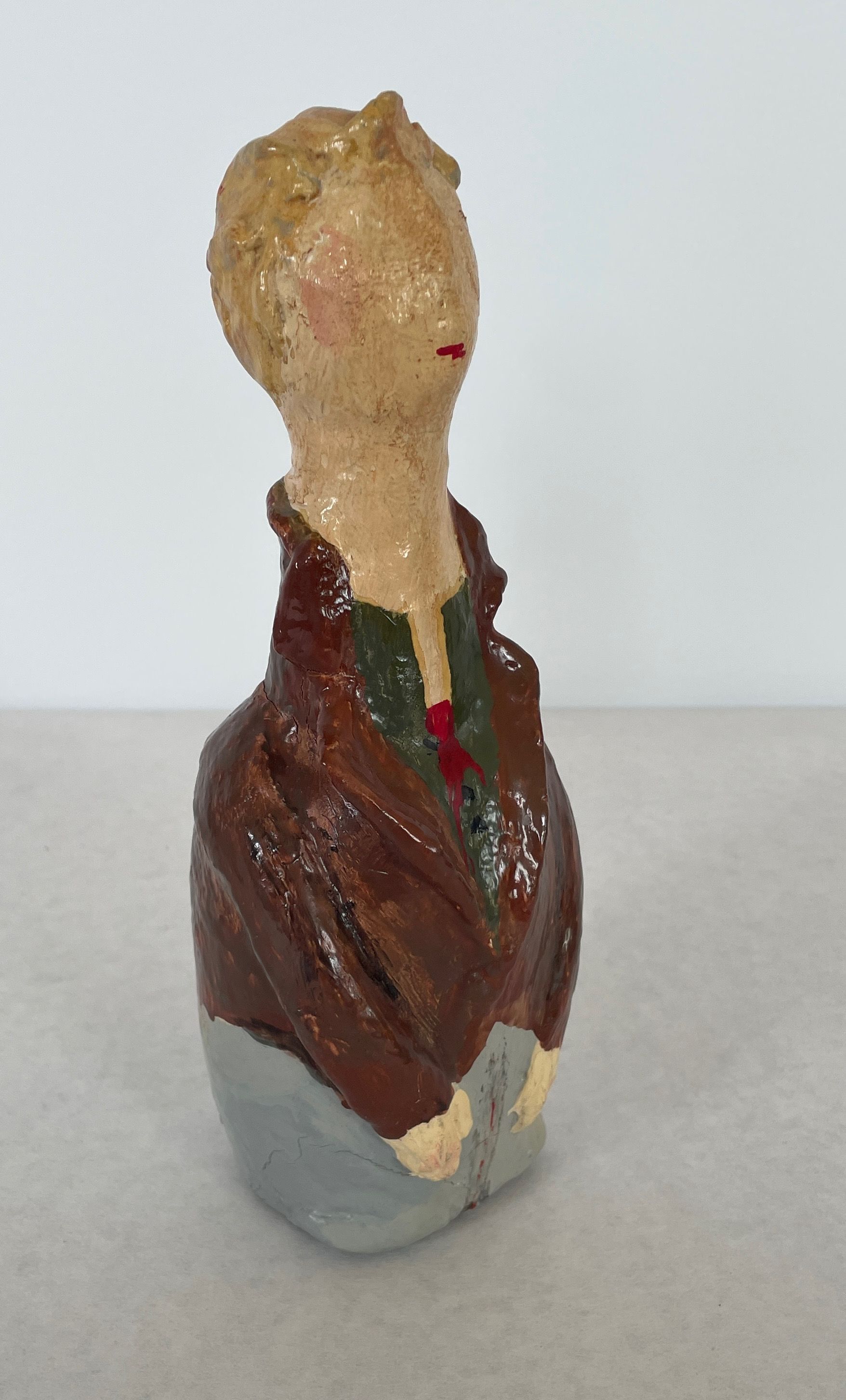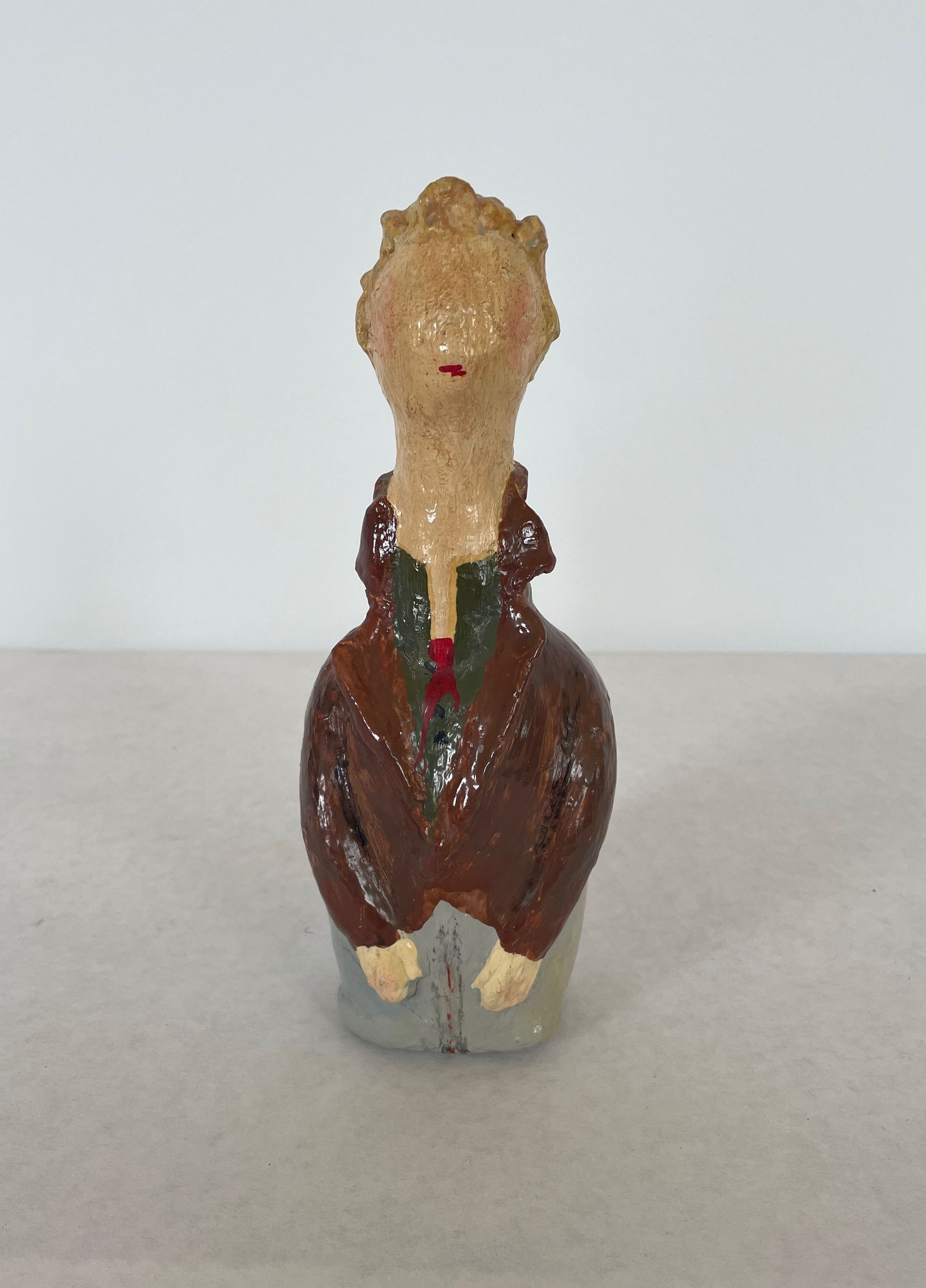 Paper mache man and women painted. Paper mached onto brown glass bottles.Artwork Details