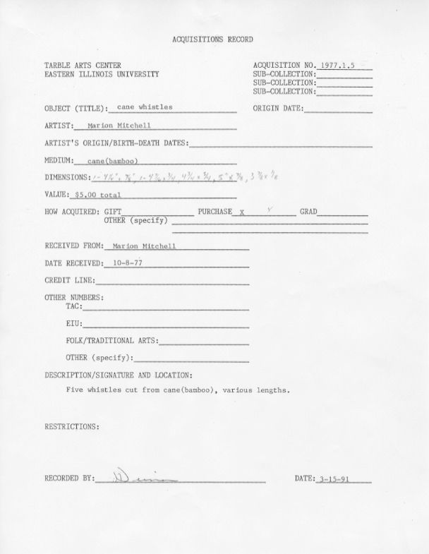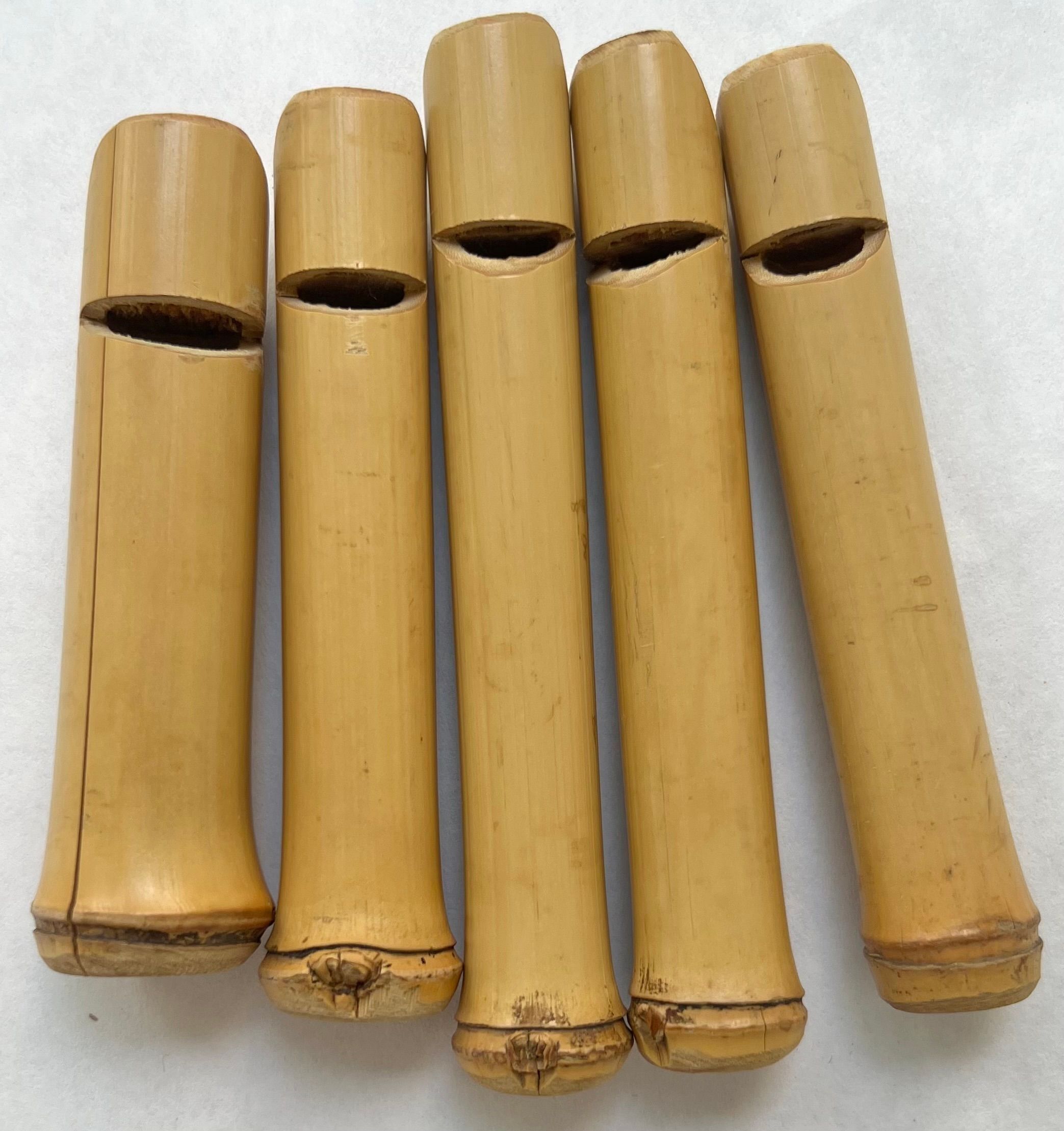 Yellow-tan- hollow cane (bamboo)stalk with carved mouthpiece. Approximately 3 inches long.Collection