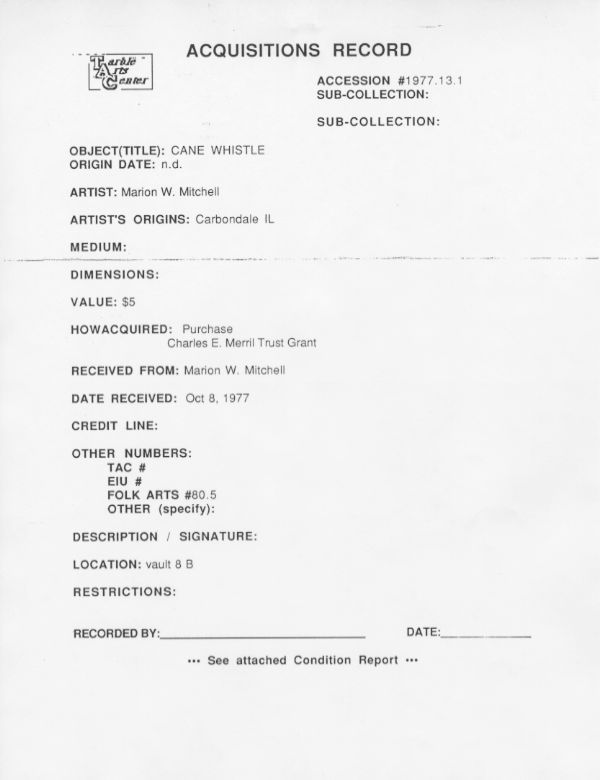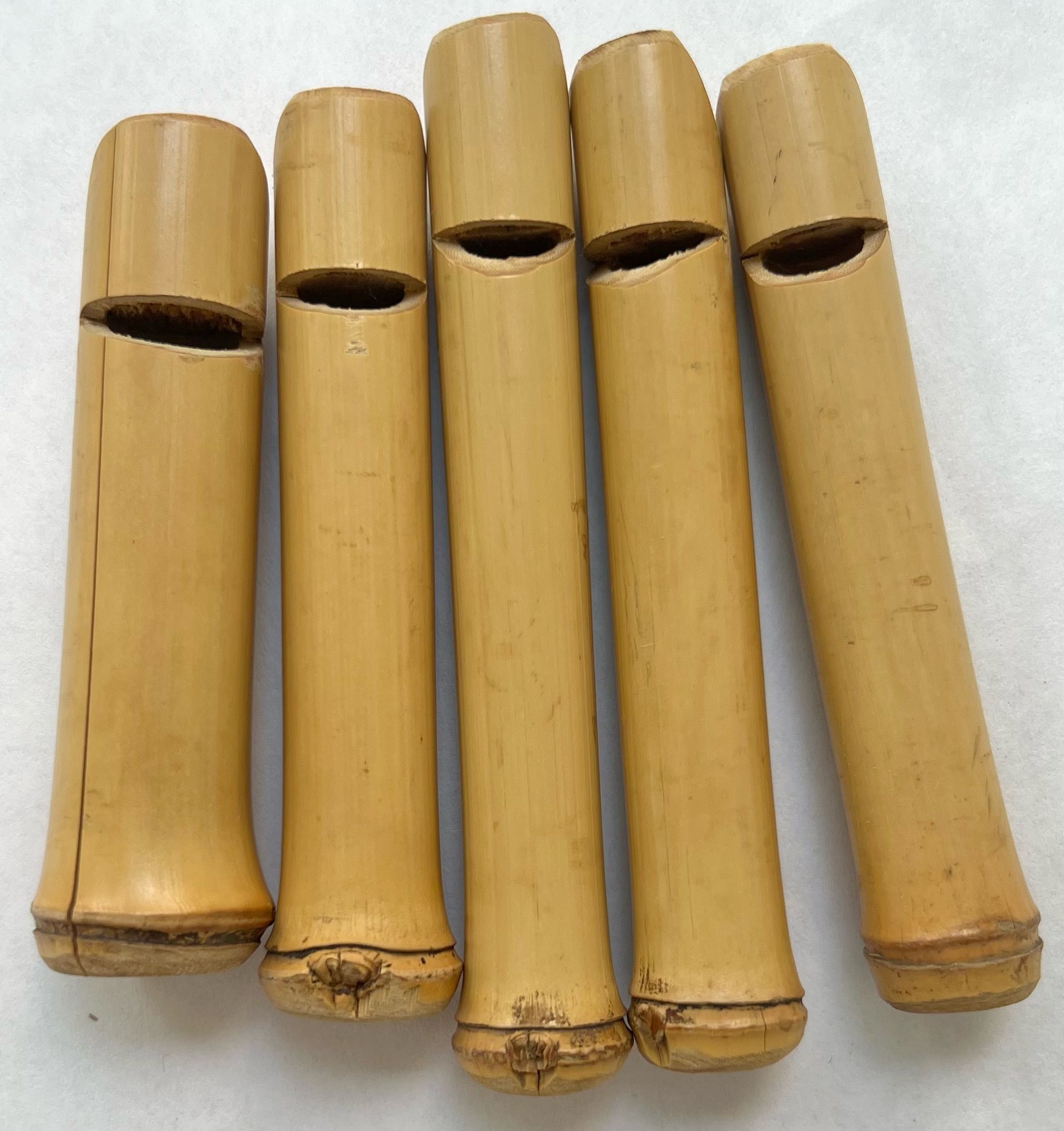 Yellow-tan, hollow cane stalk with carved mouthpiece. Approximately 3 inches long.Collection