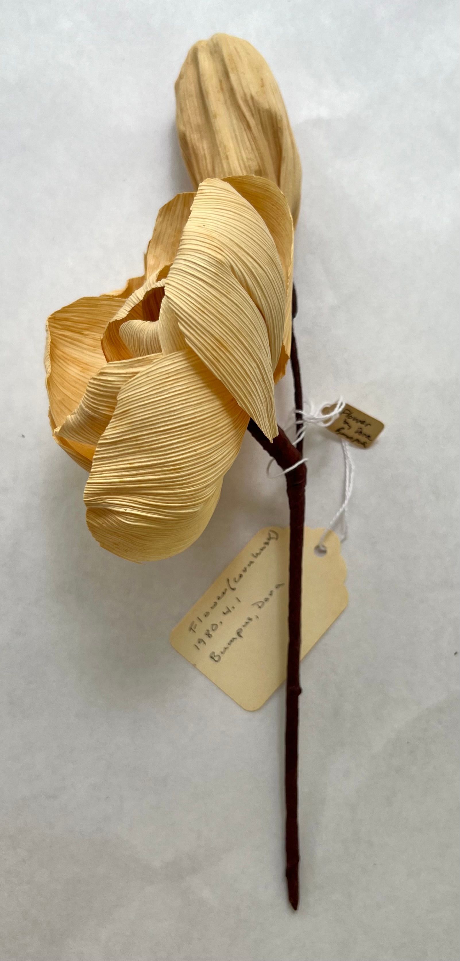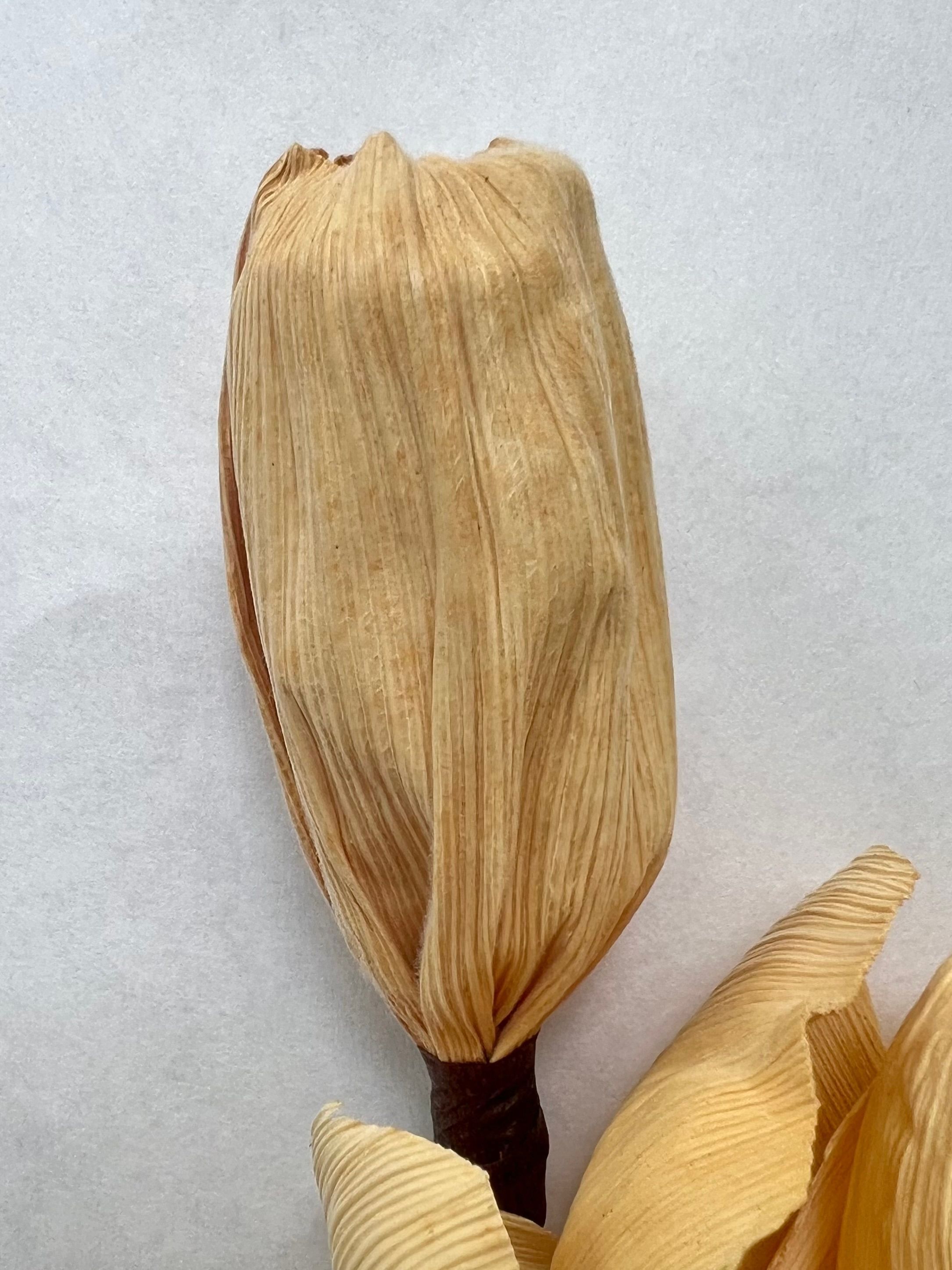 One brown twig with two flowers. Lower flower is open in full bloom. Taller flower is closed.Collection