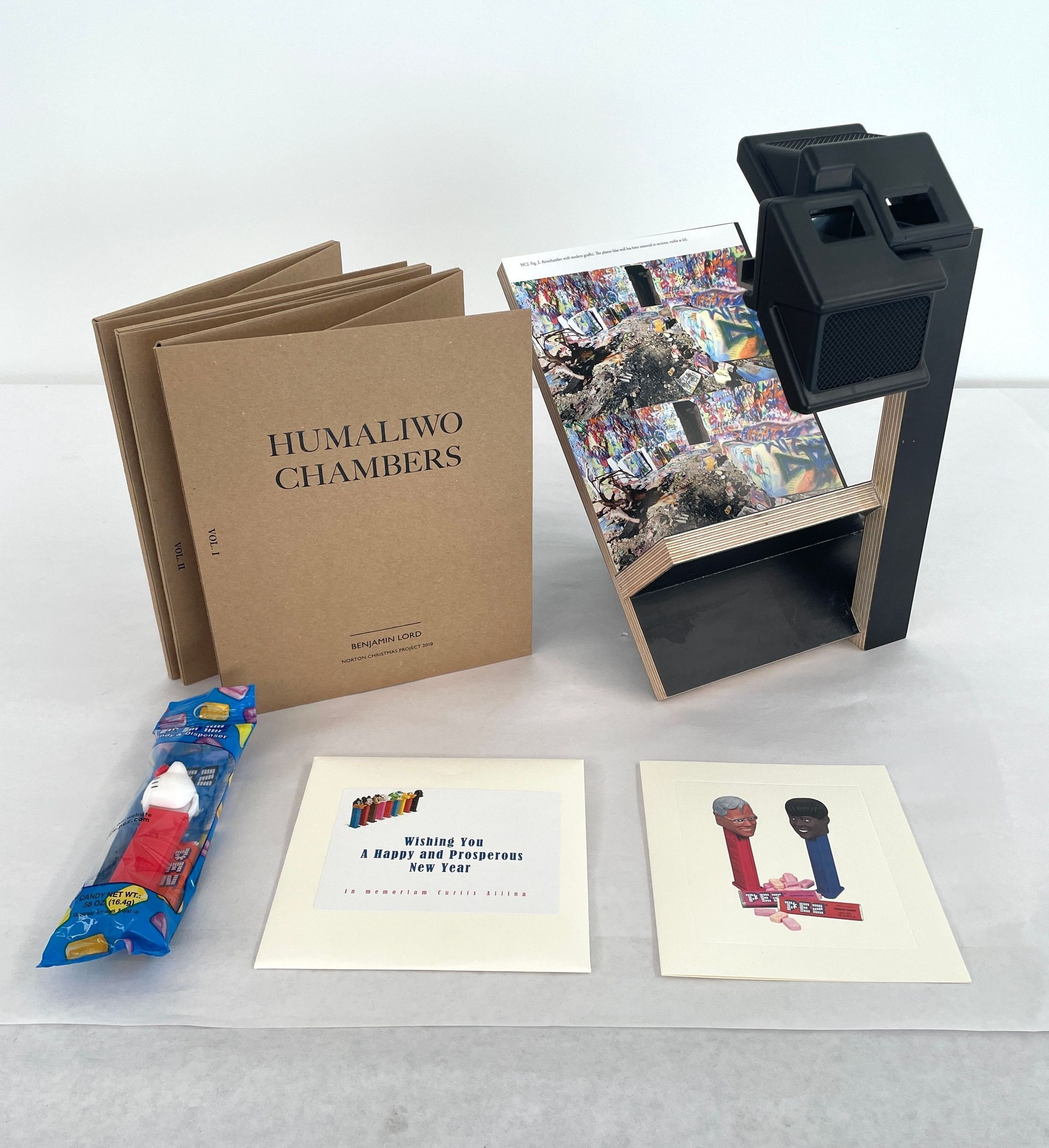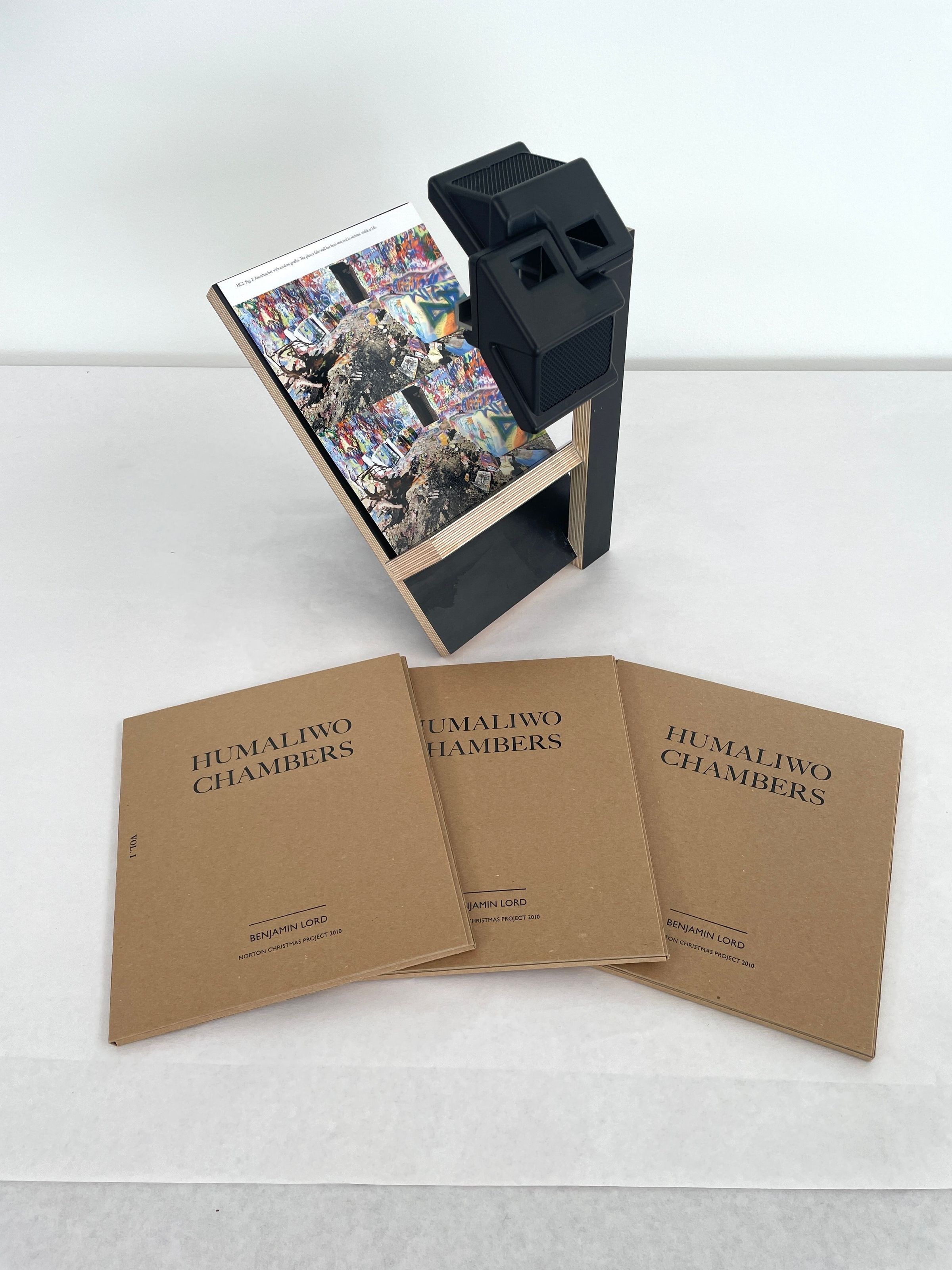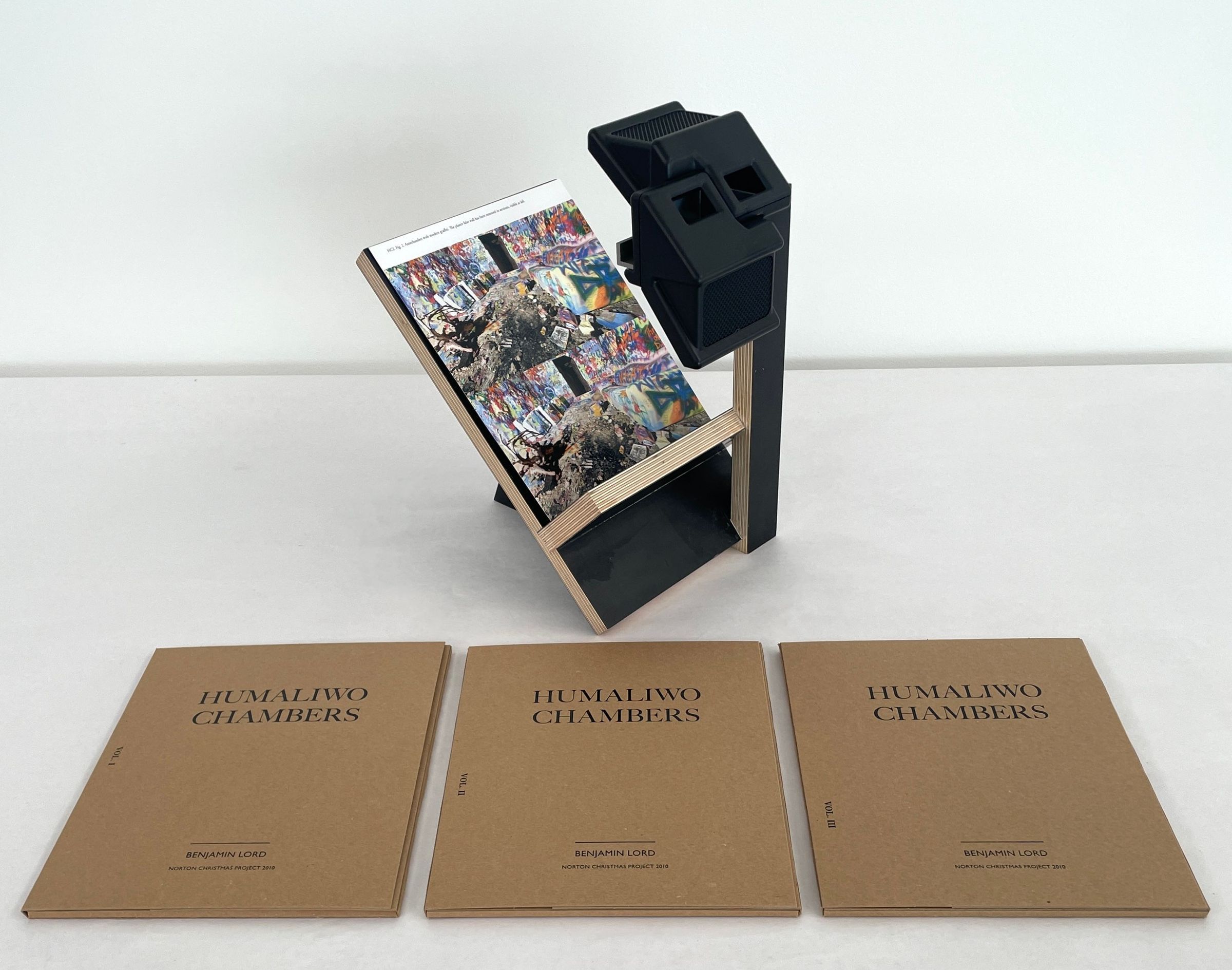 Stereoscopic Slide Viewer. Black laminated plywood form with angled shelf and tall mounted viewing device facing shelf.Collection