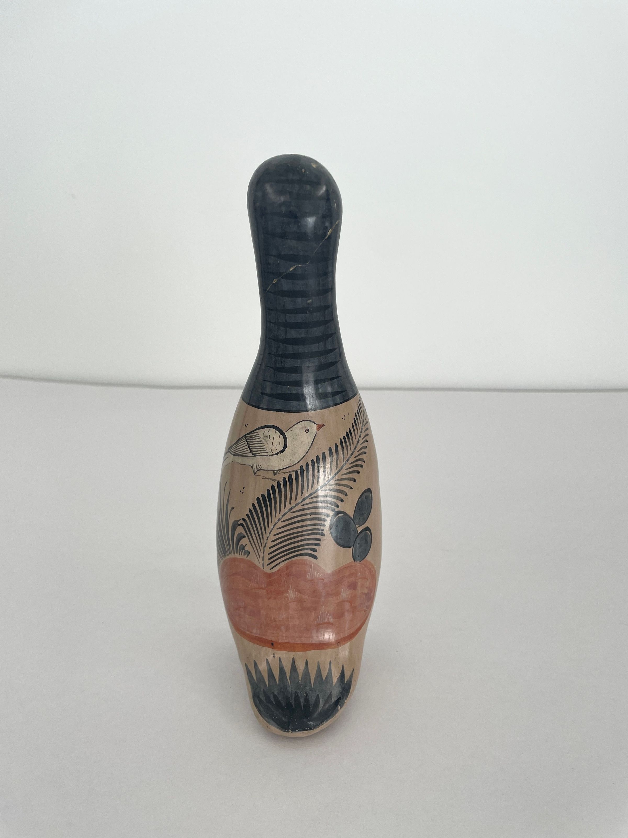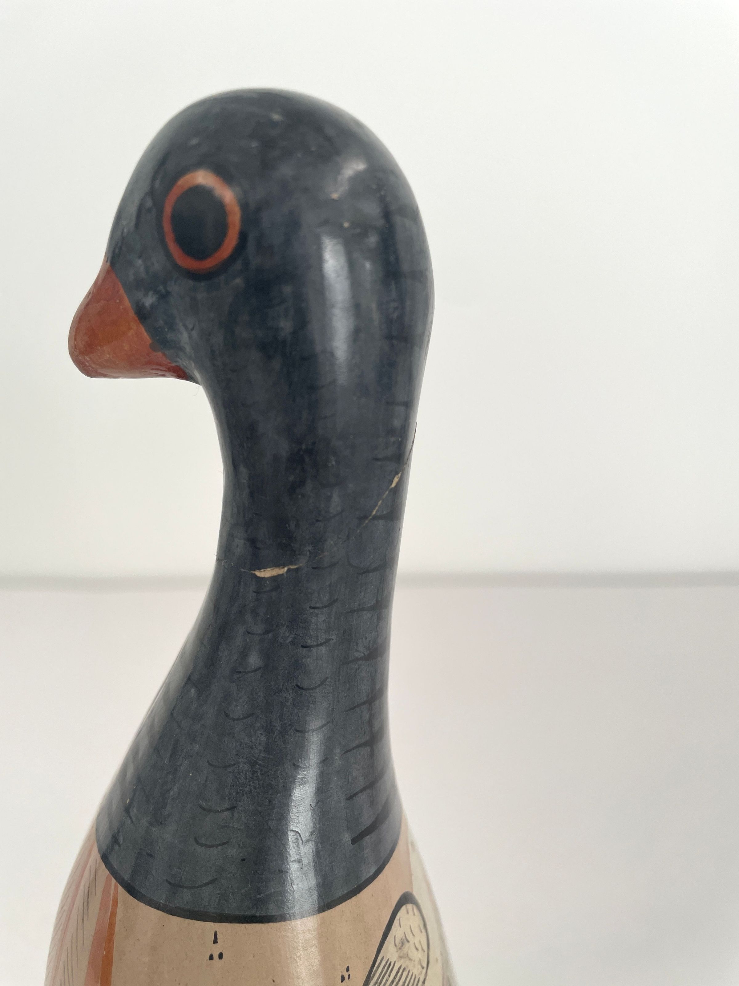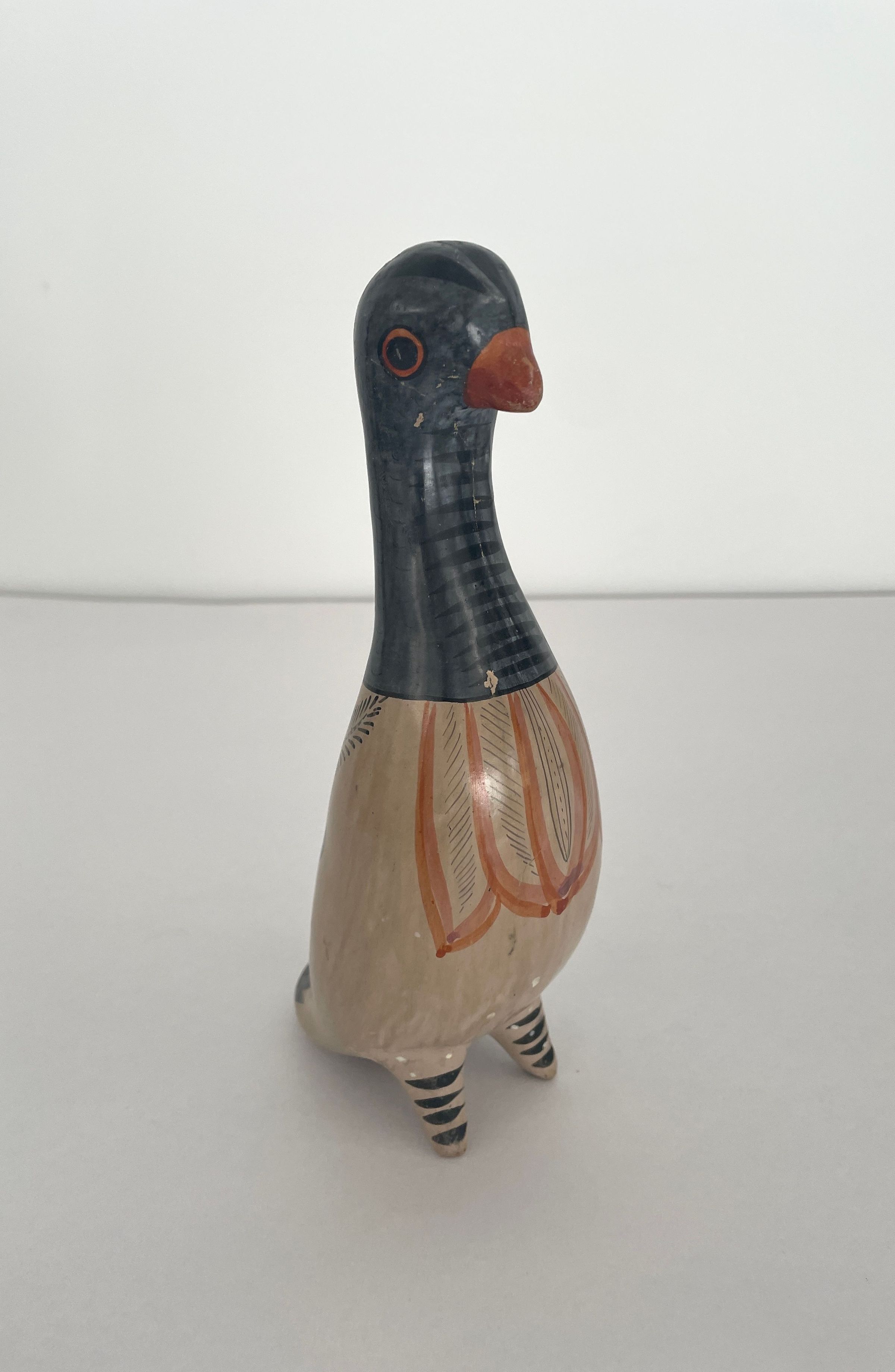 Bird is painted with floral thick lines. Back of bird is depiction of white bird perched on a leafCollection