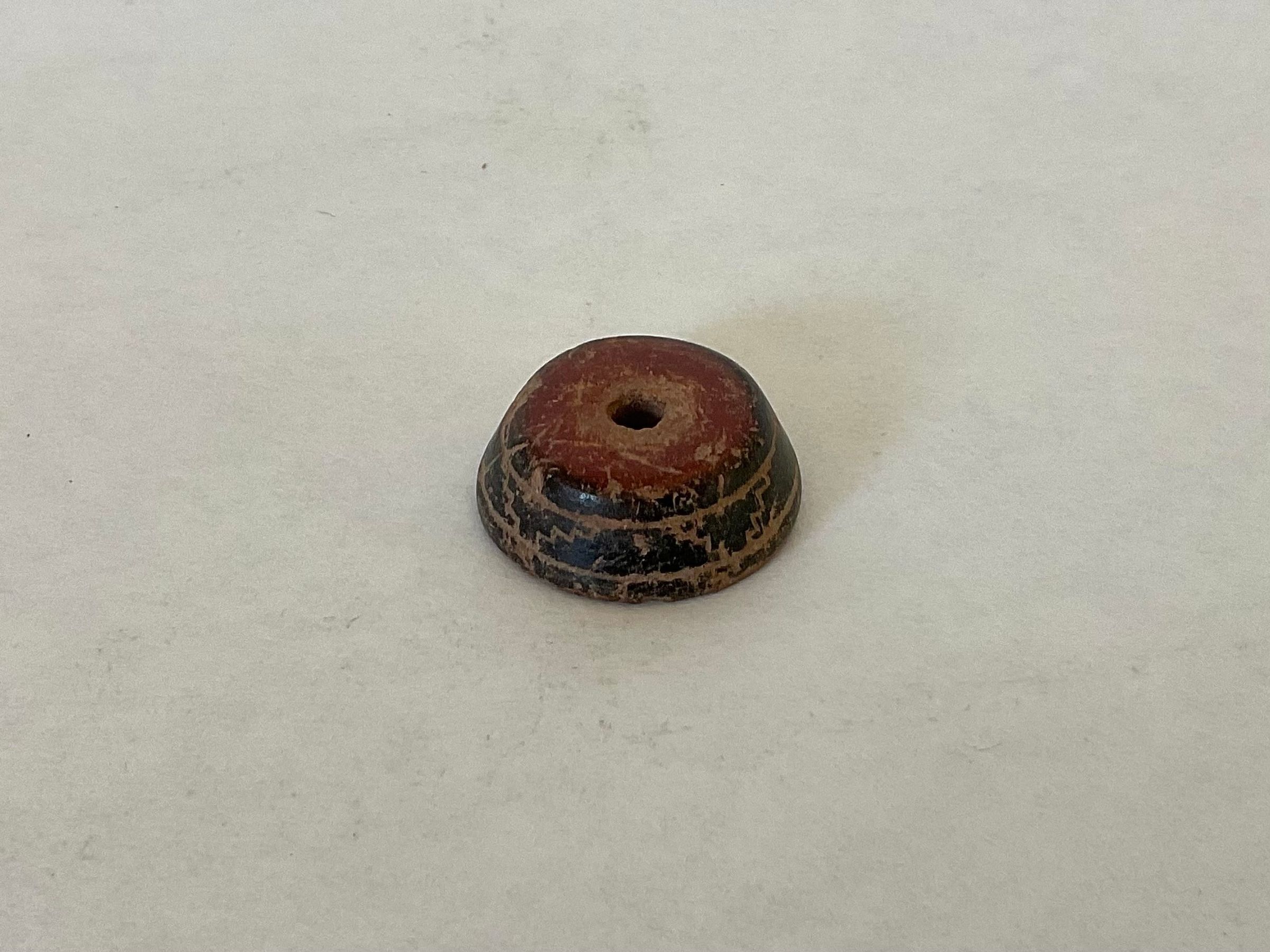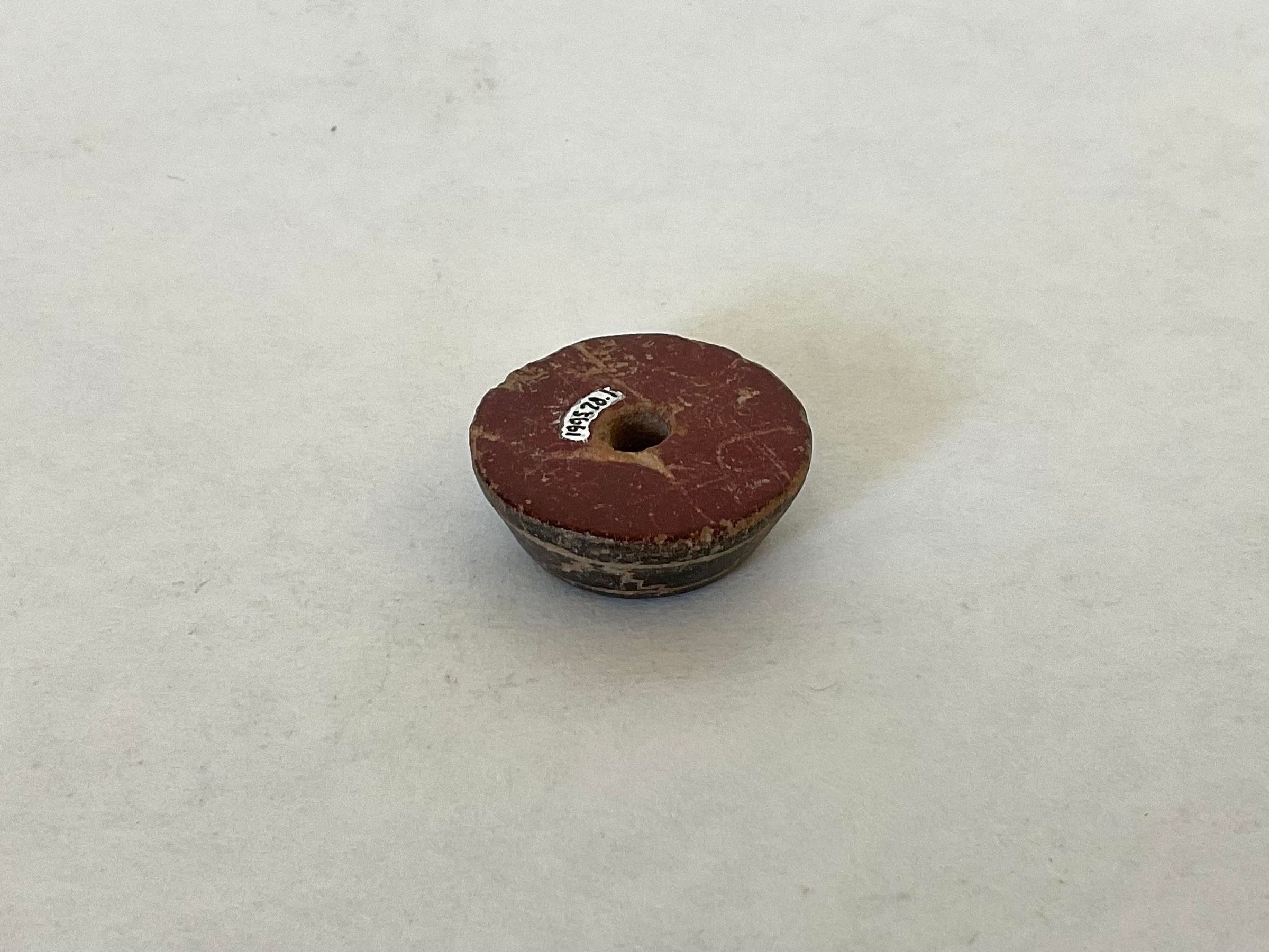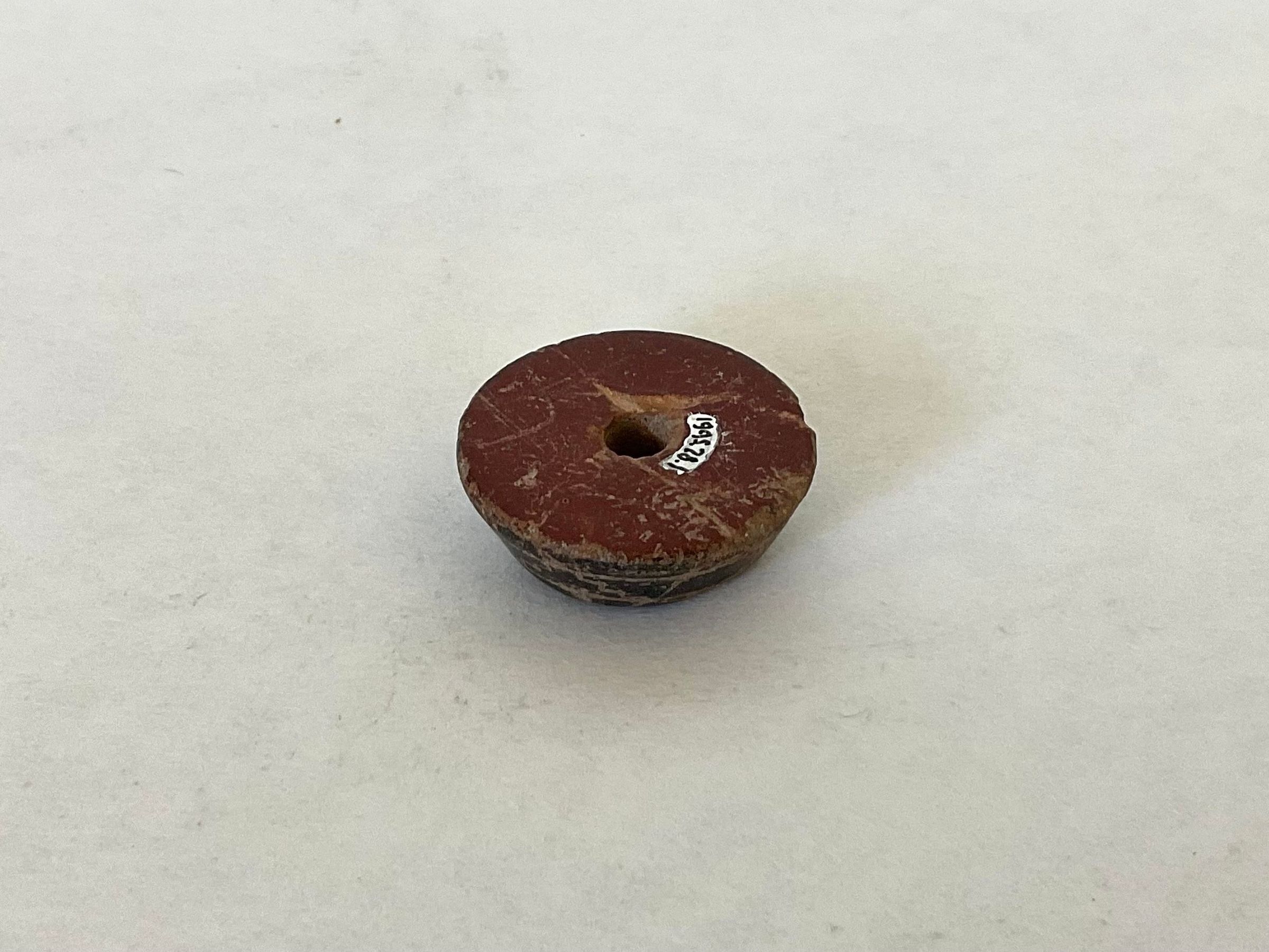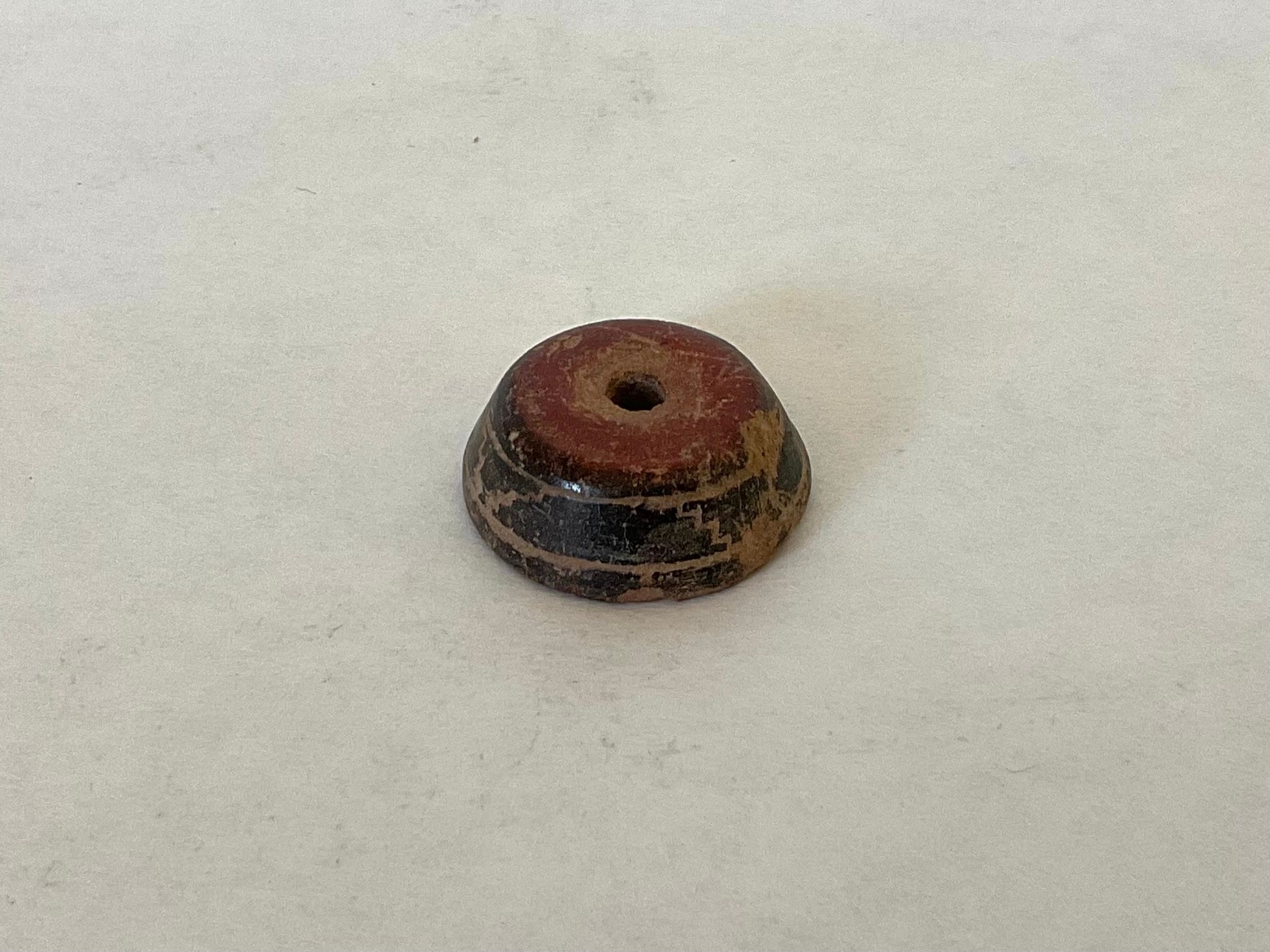Intentional hole for use of bead. Incised designs on surface.Collection