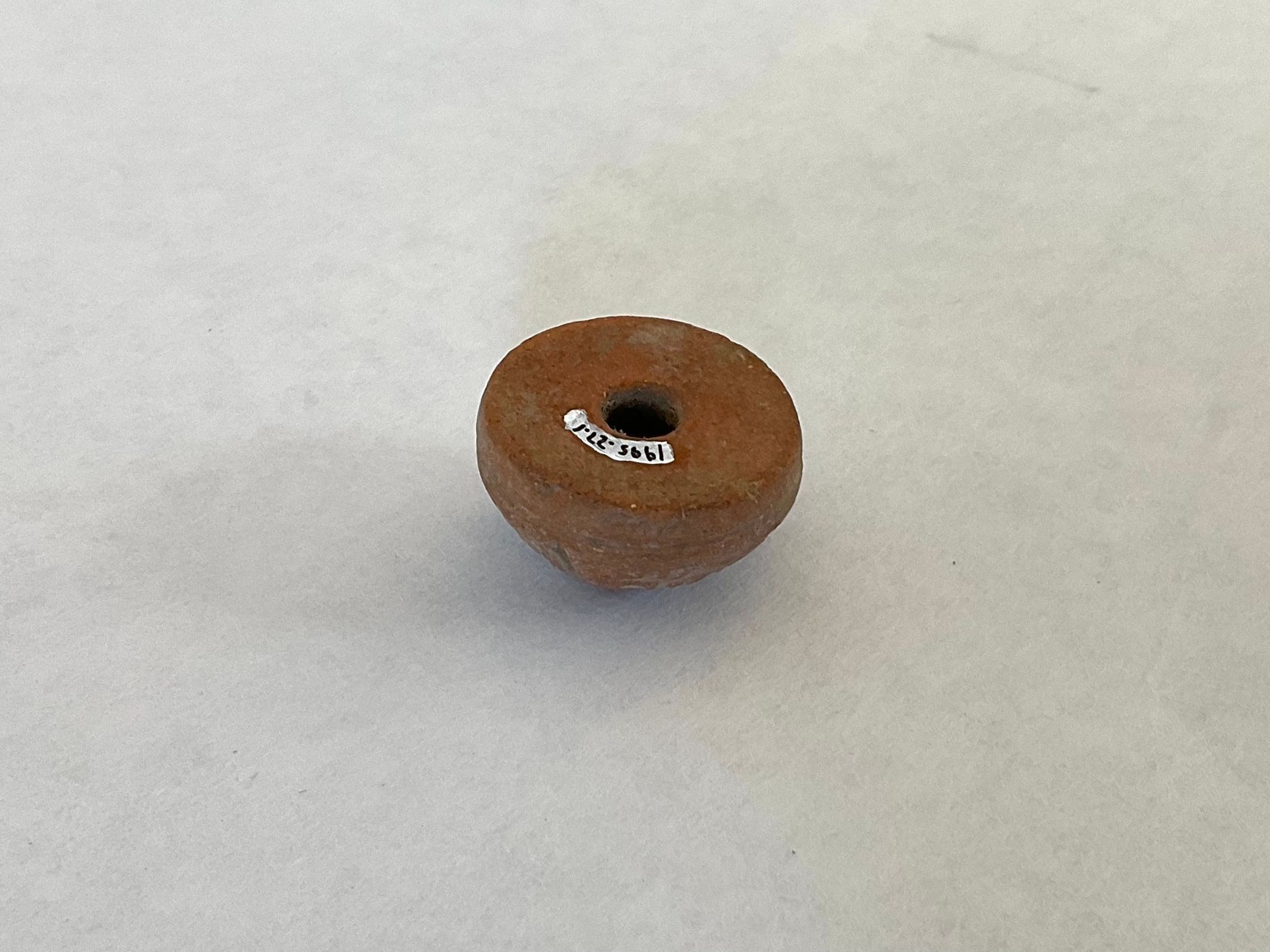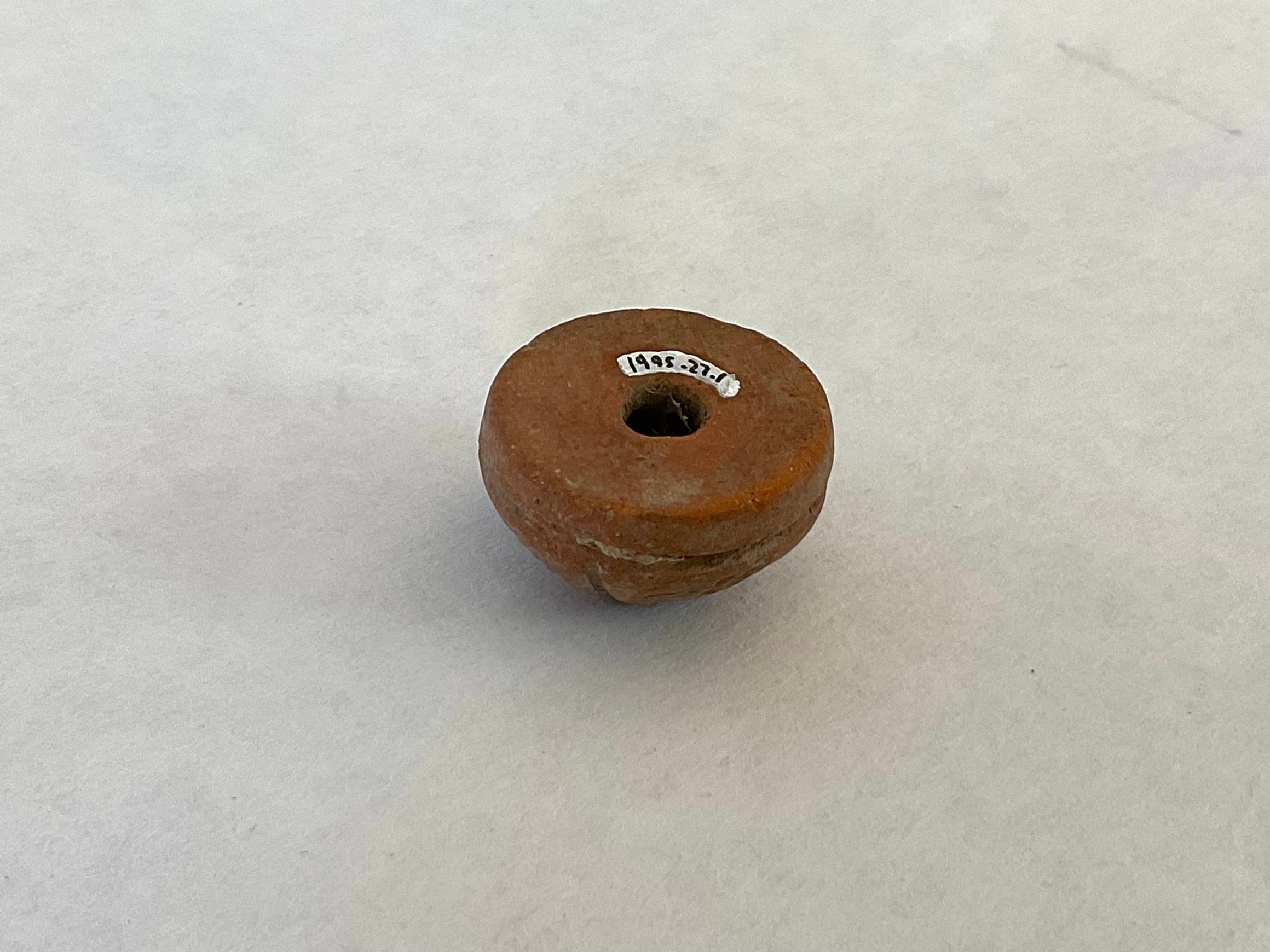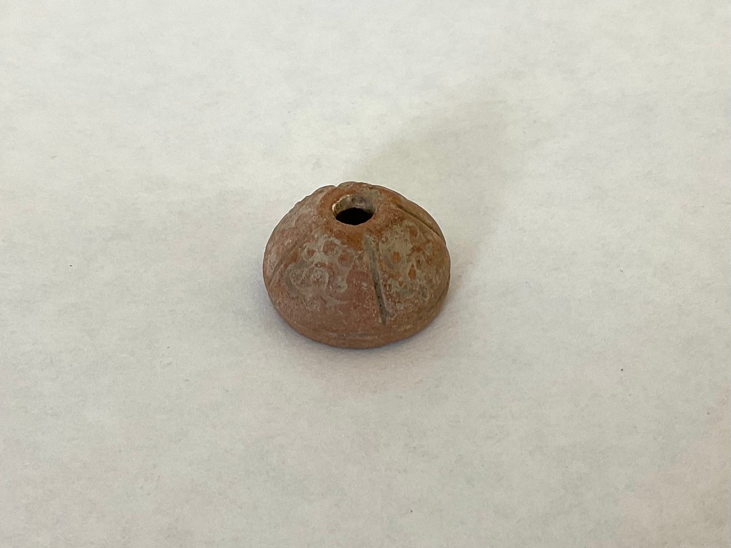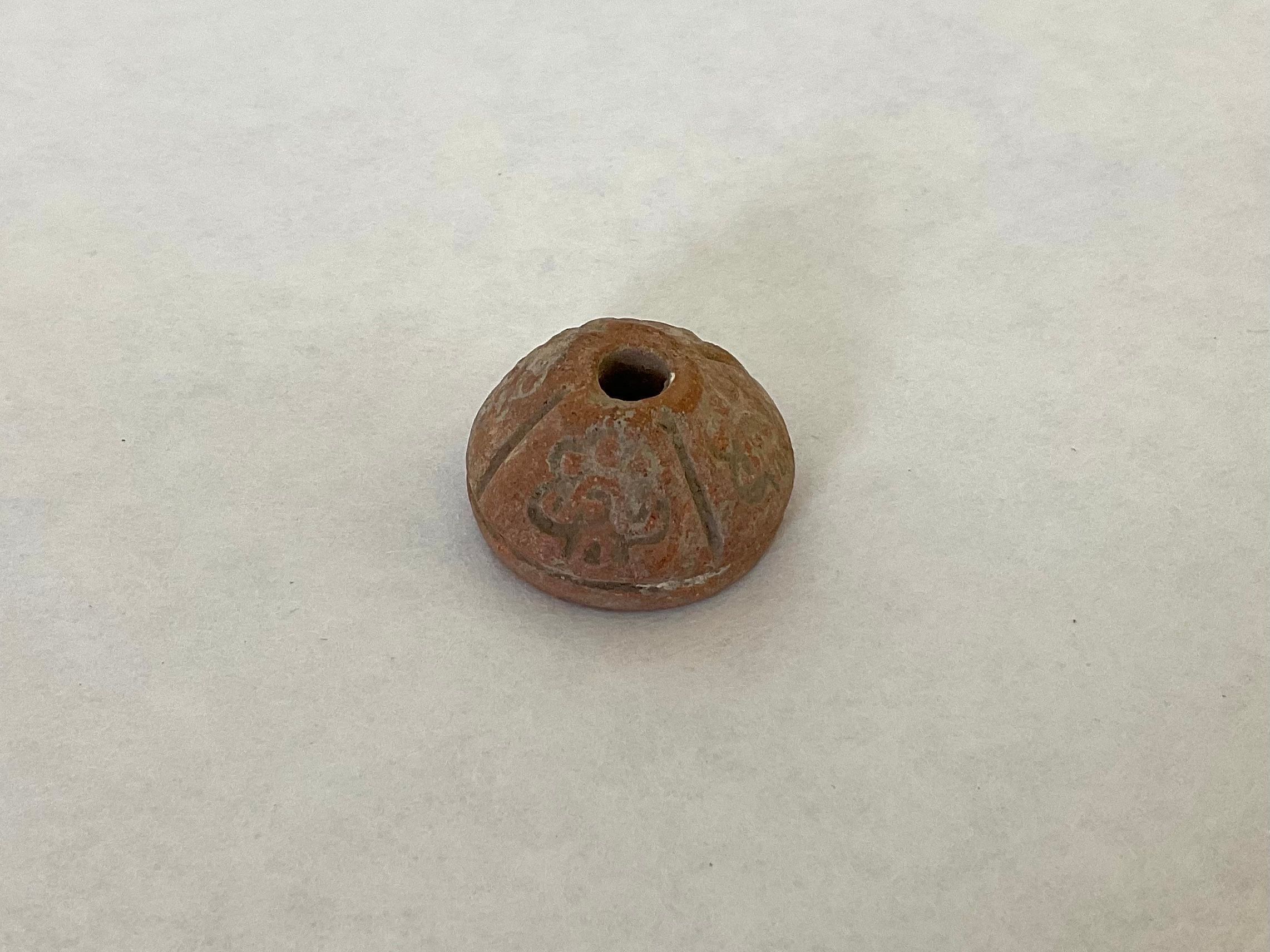 Intentional hole for use of bead. Incised designs on surface.Collection