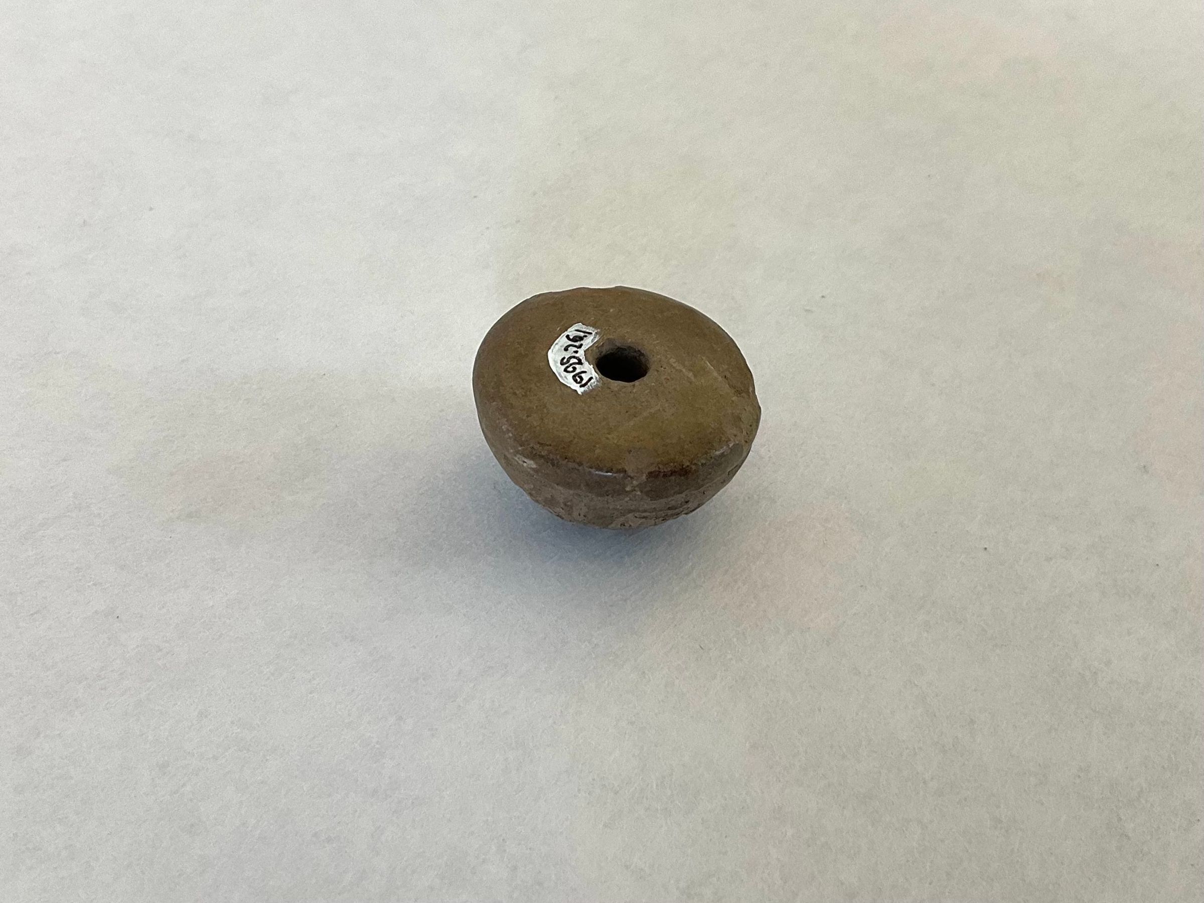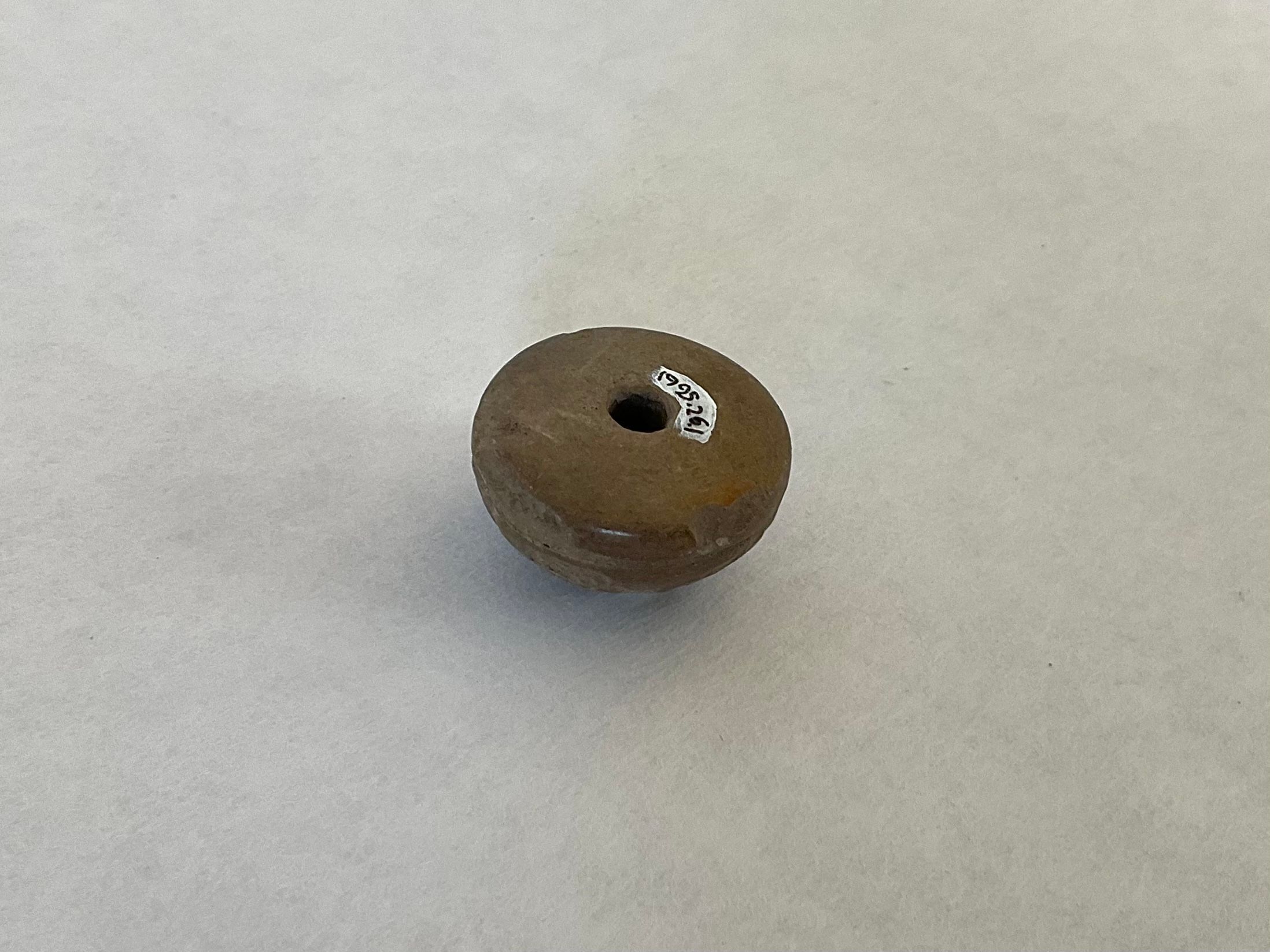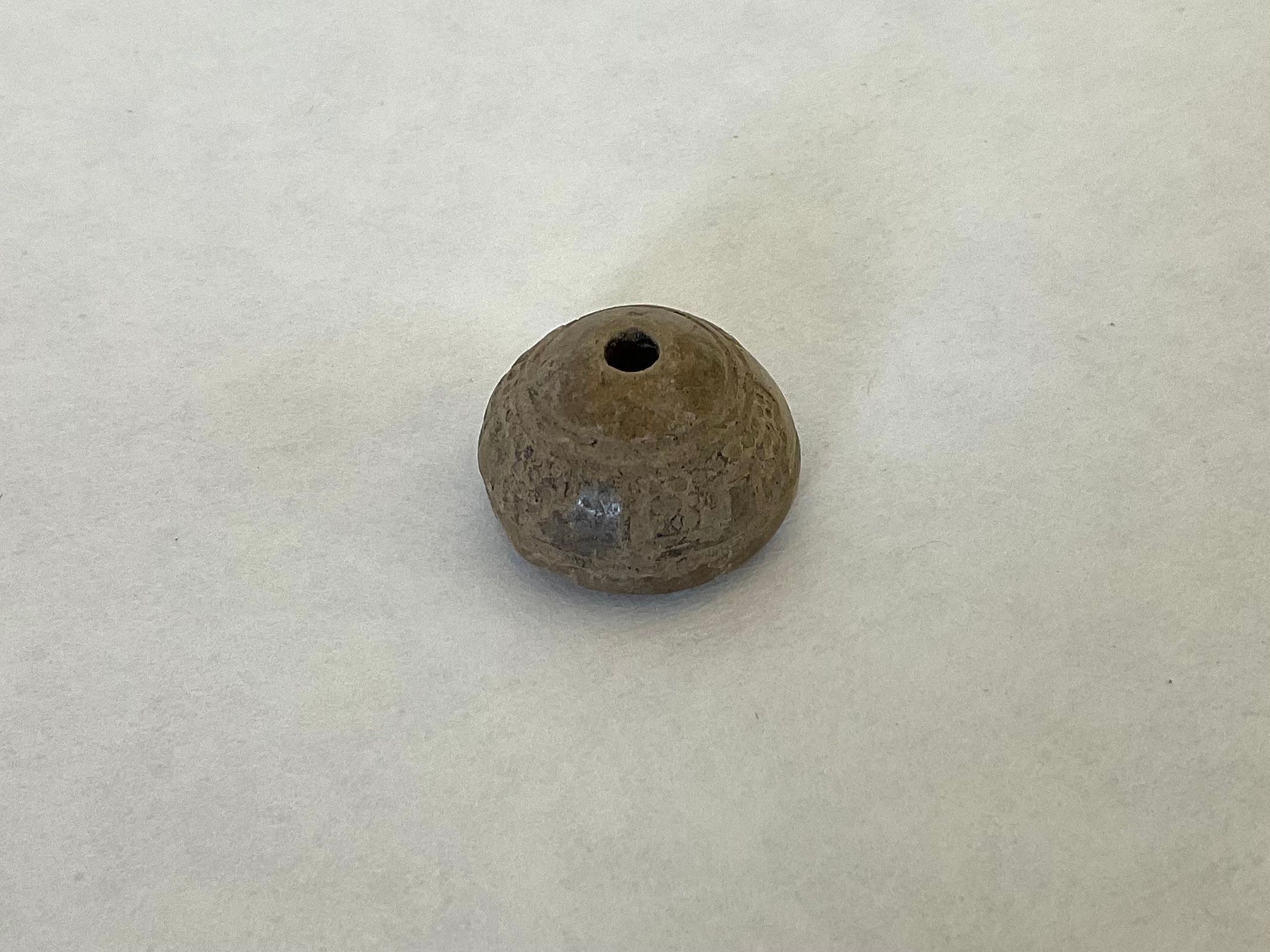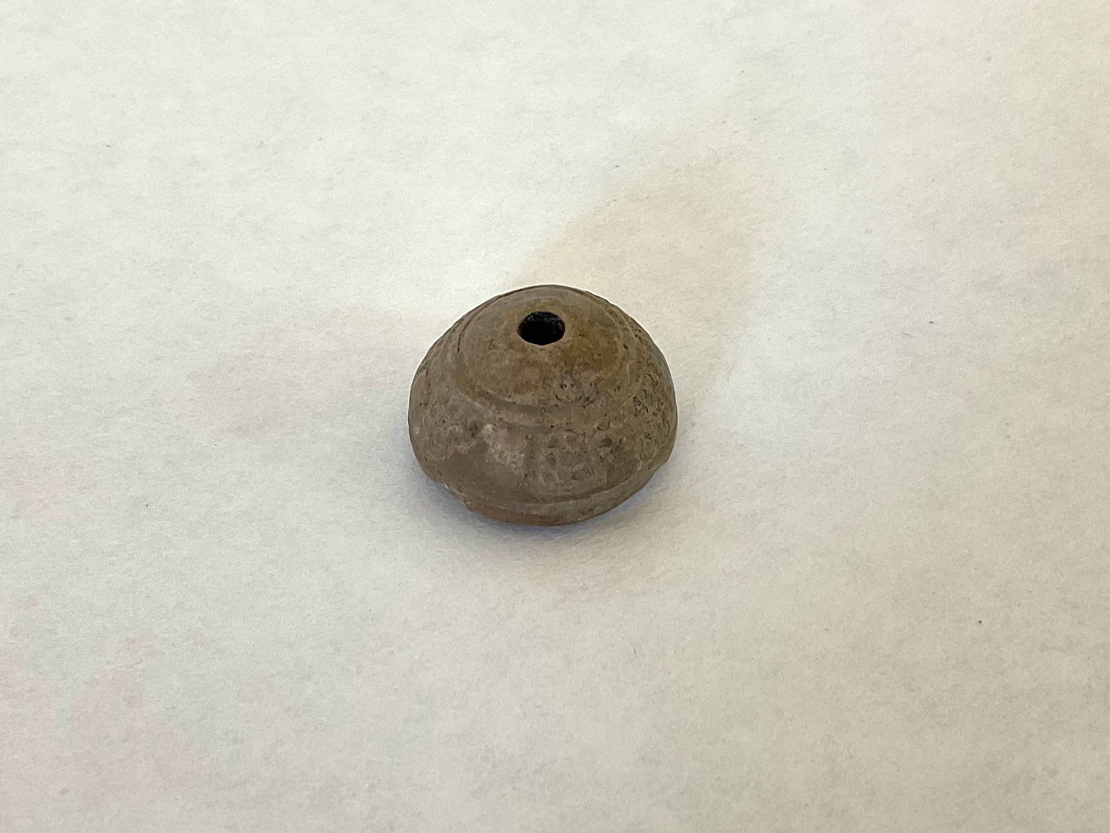 Intentional hole for use of bead. Incised designs on surface.Collection