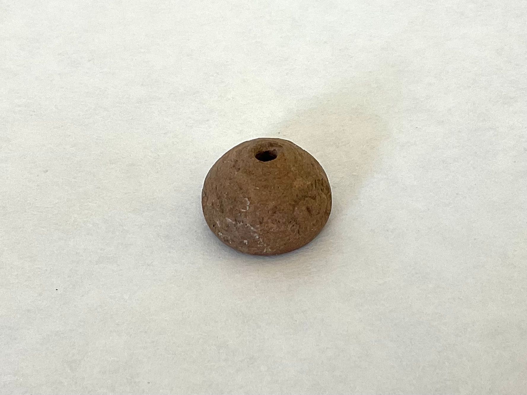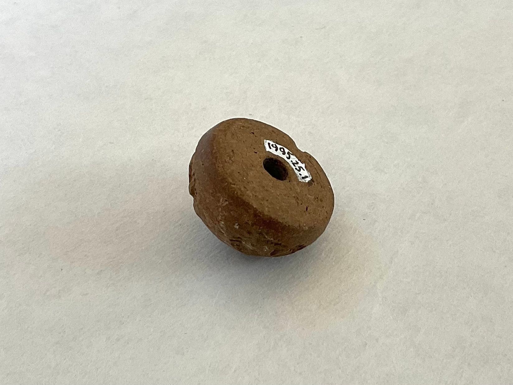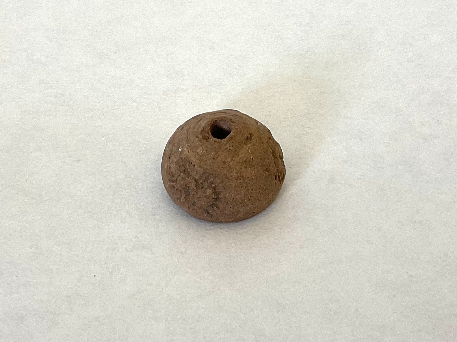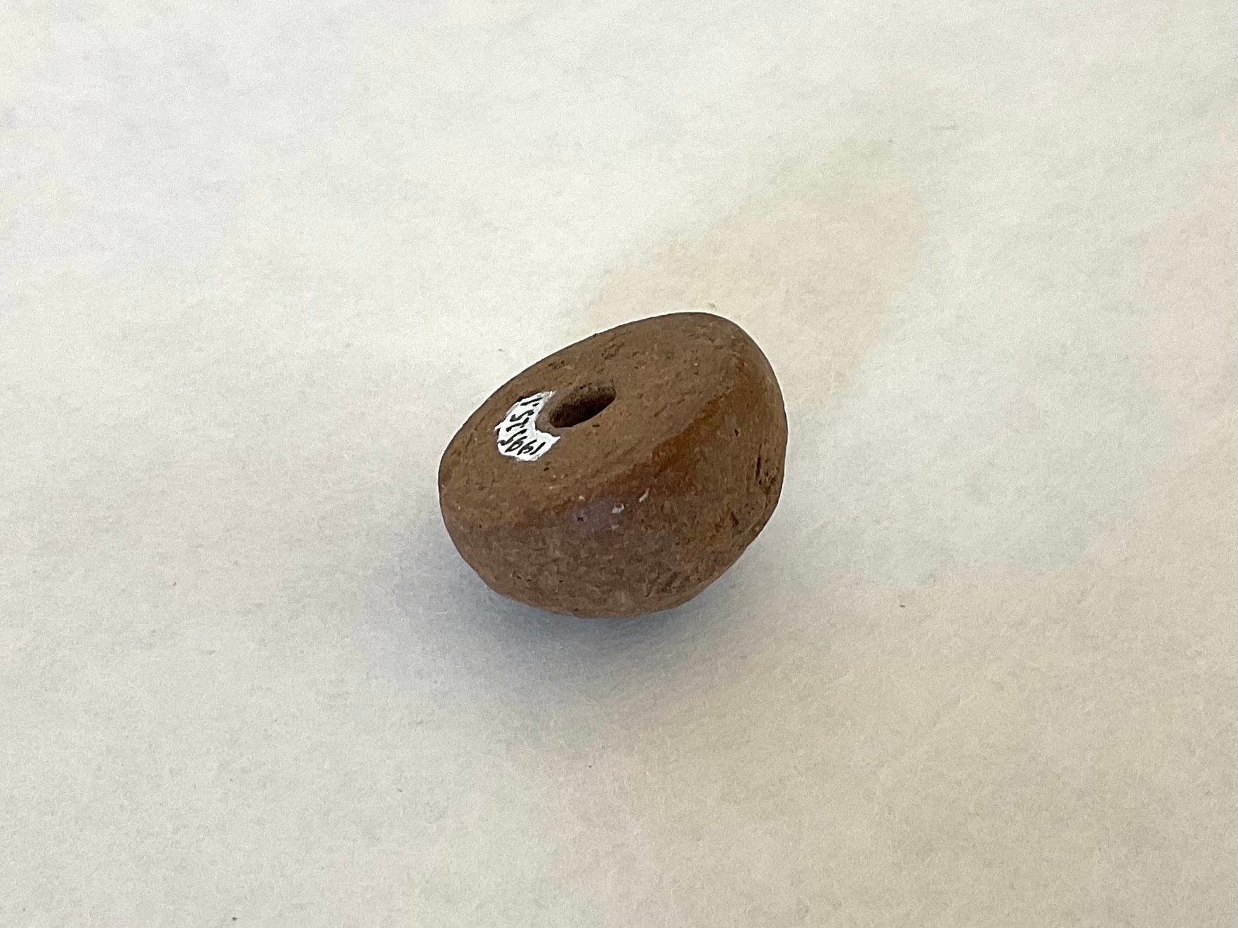 Intentional hole made for use of bead. Incised designs on surface.Collection