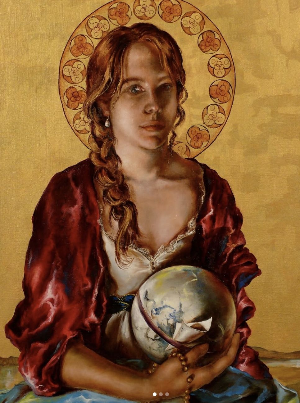 Portrait of a woman with a gold halo and gold backgroundType of Painting