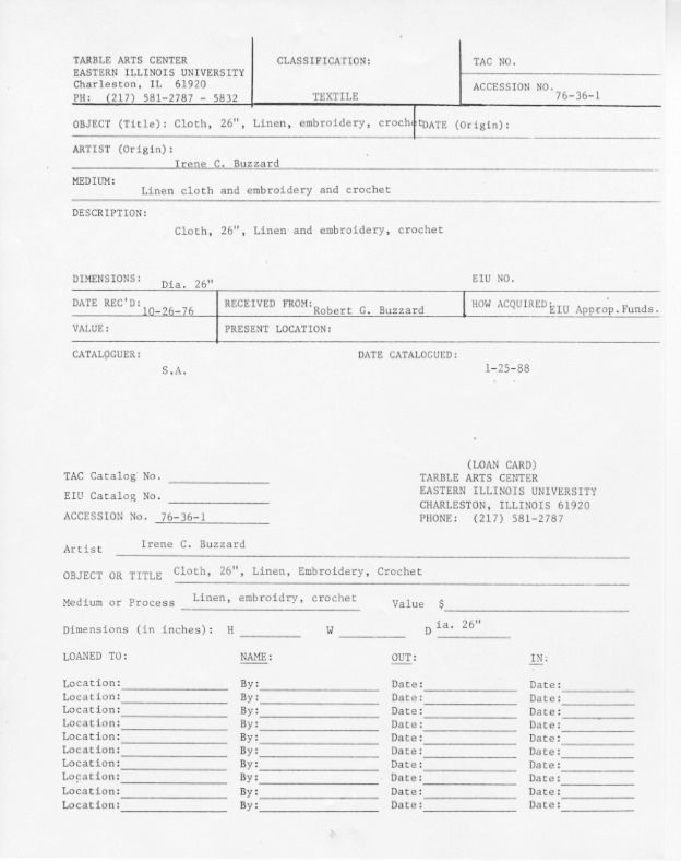Embroidered ClothEntry/Object ID