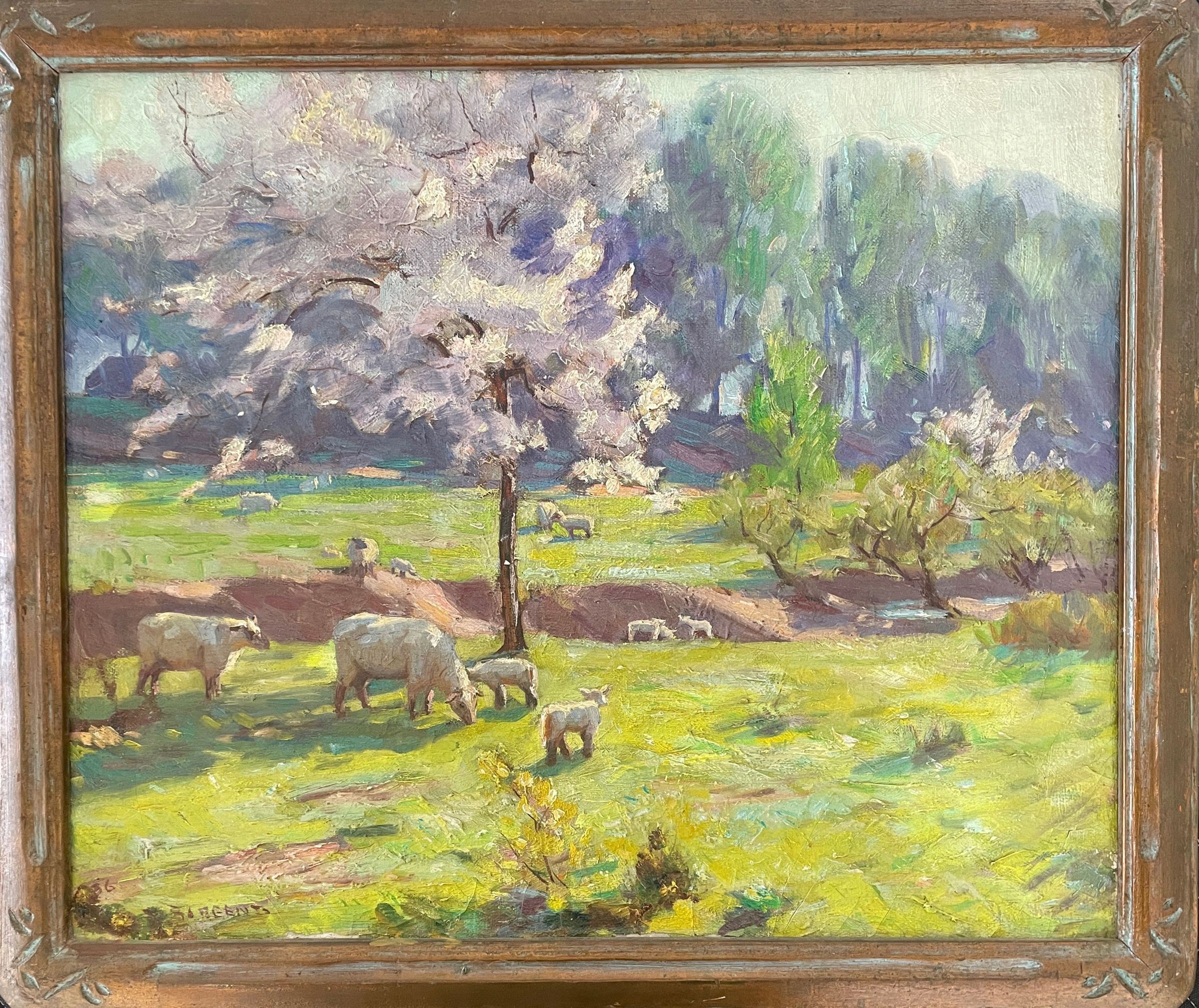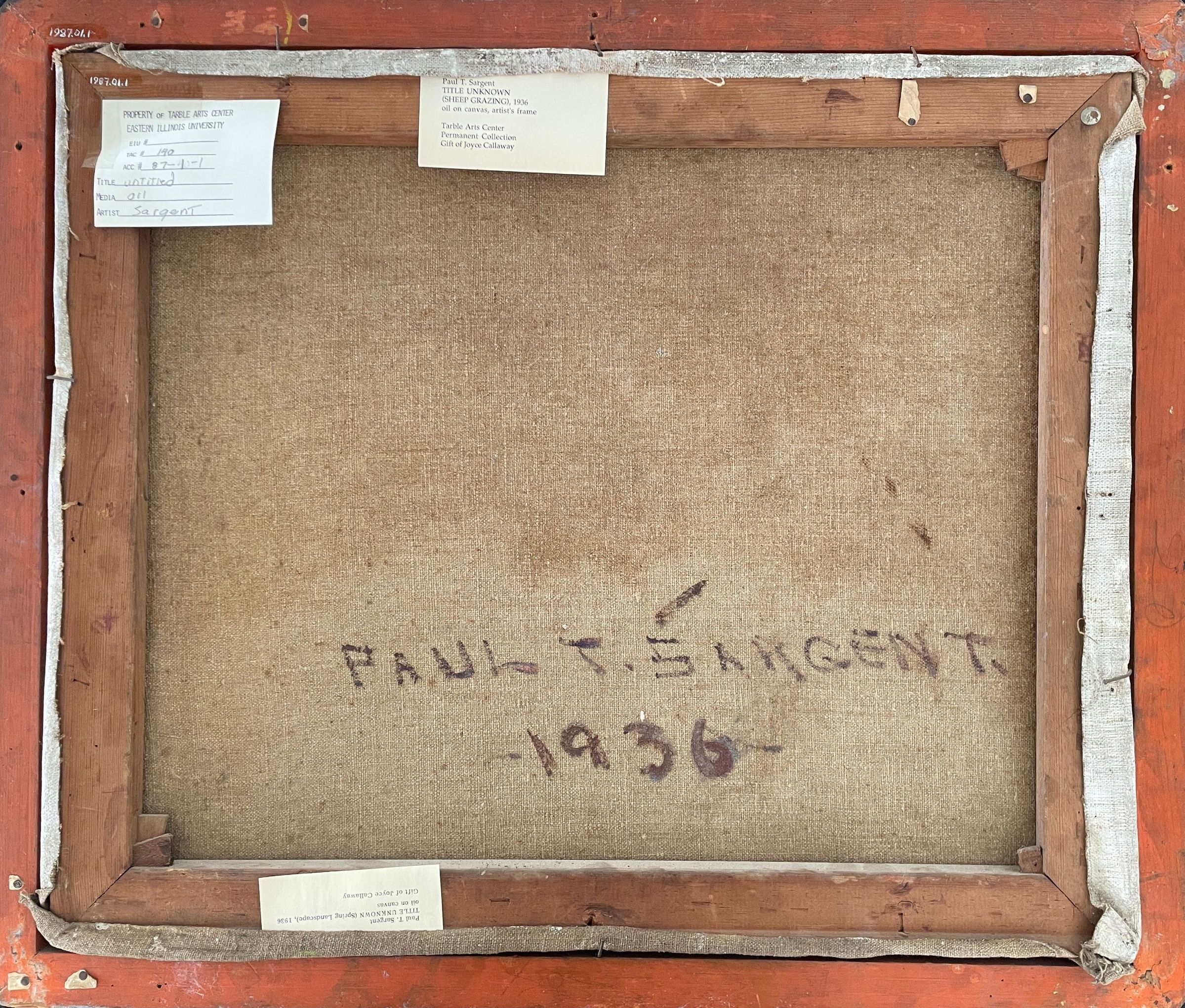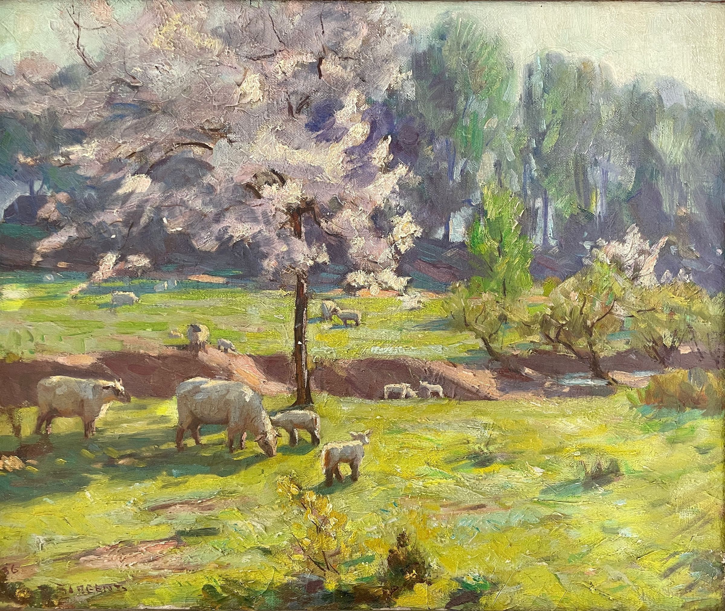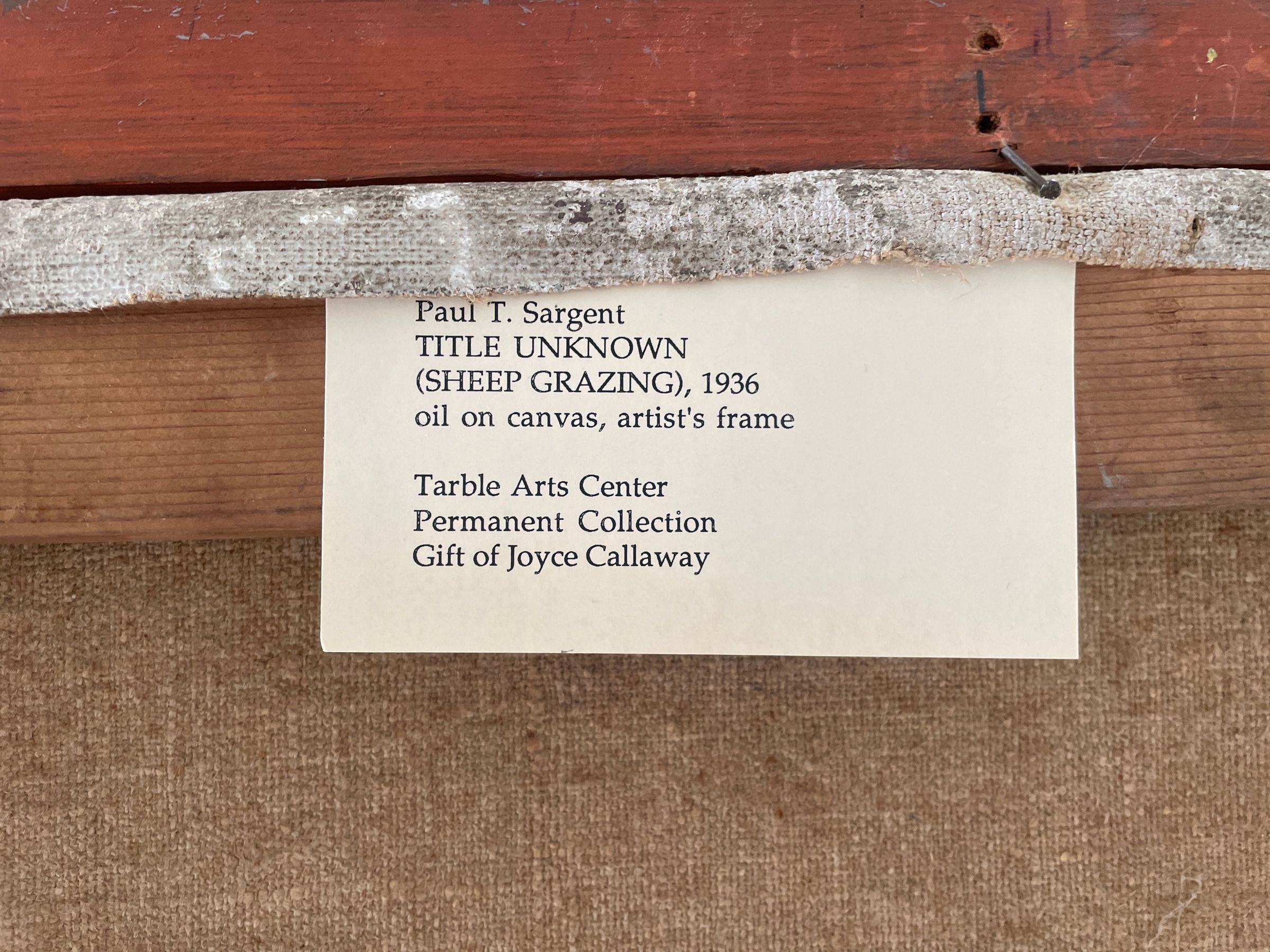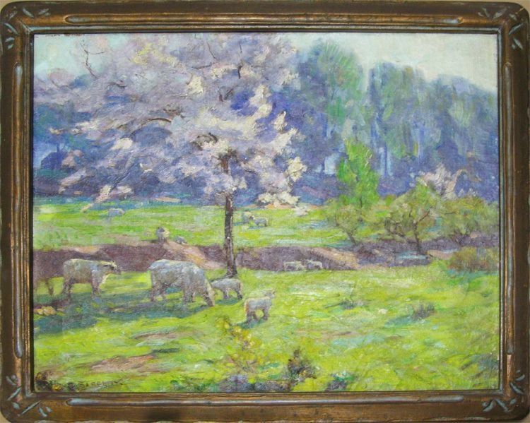 Summer landscape with sheep in frame made by the artist.Signed "Sargent 36" in lower left hand corner. Slightlydeteriorated.Collection