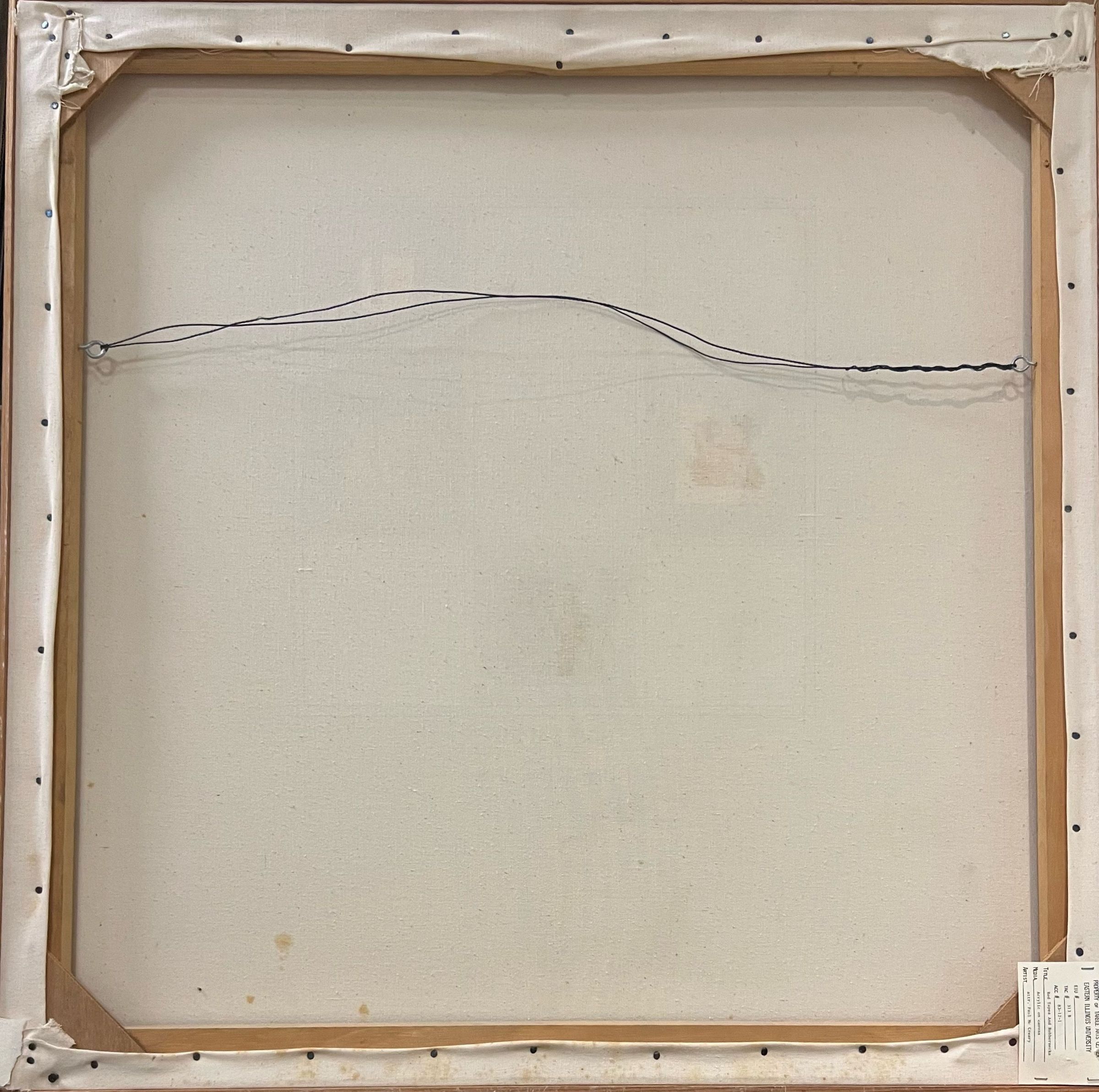 Large square divided into nine smaller squares. Squares 1-2-5-7-& 9 are numbered- other squares have figures inset on grey ground. Title painted below center.Collection