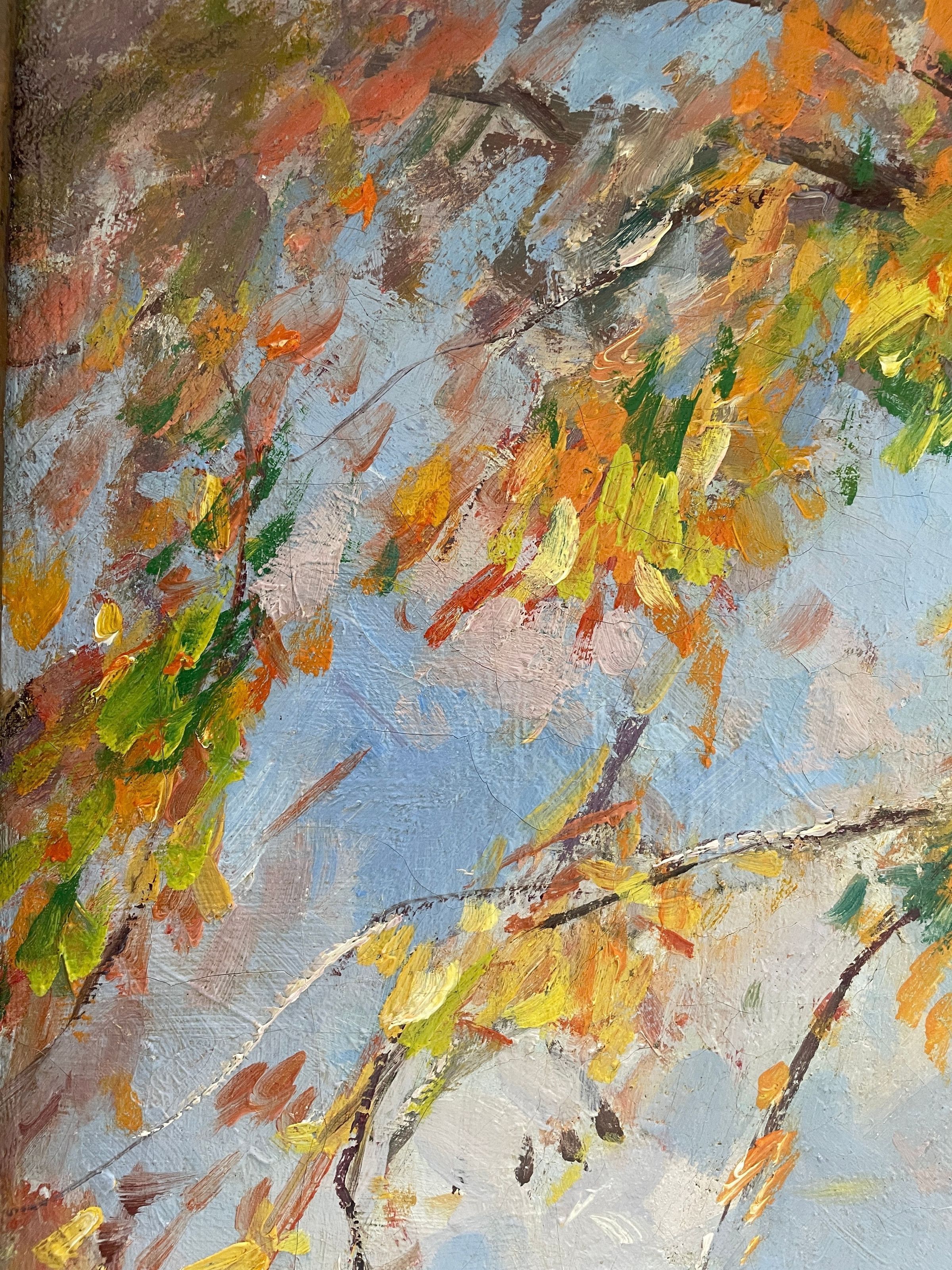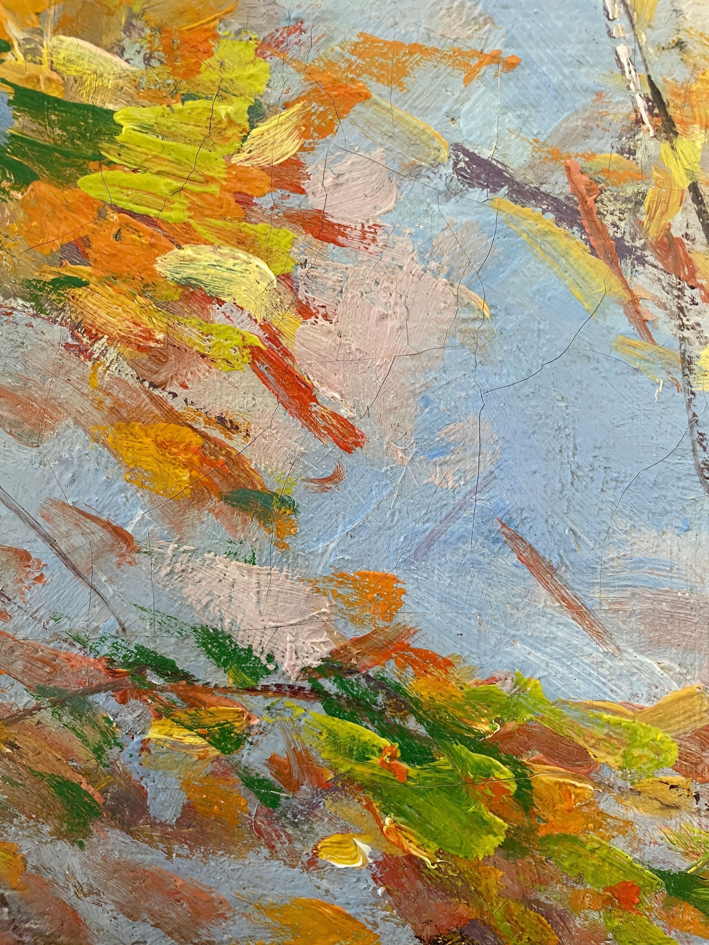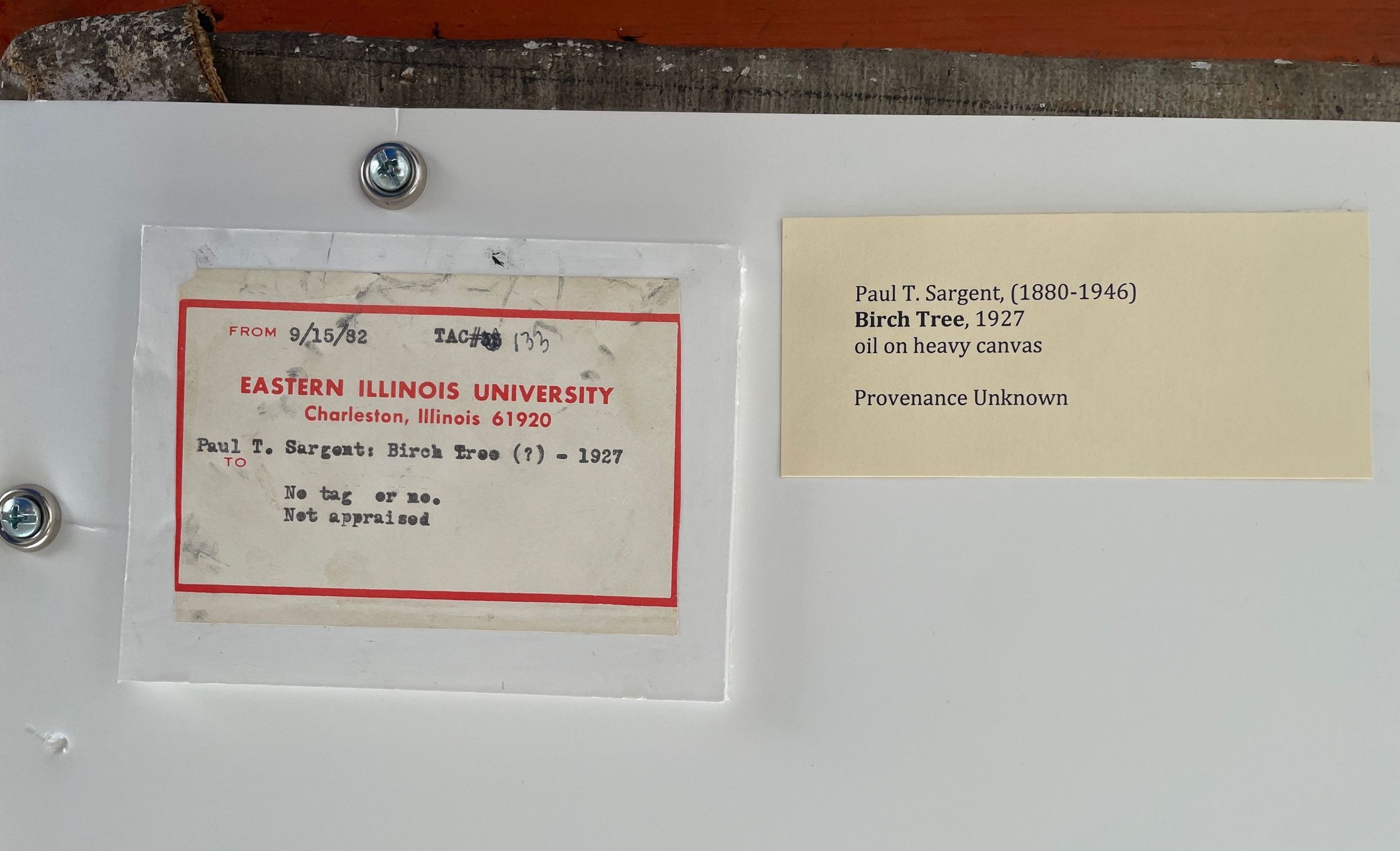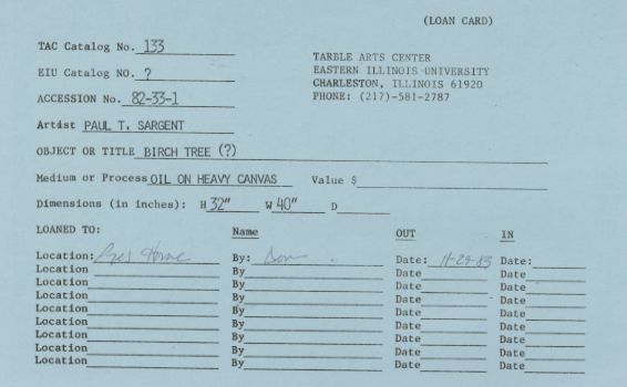Birch tree in fall setting with trees on right- overlooking a valley on left. No inventory or tag number- signed: "Paul T.Sargent-'27" lower right corner- bronze gilt wood frame.Artwork Details