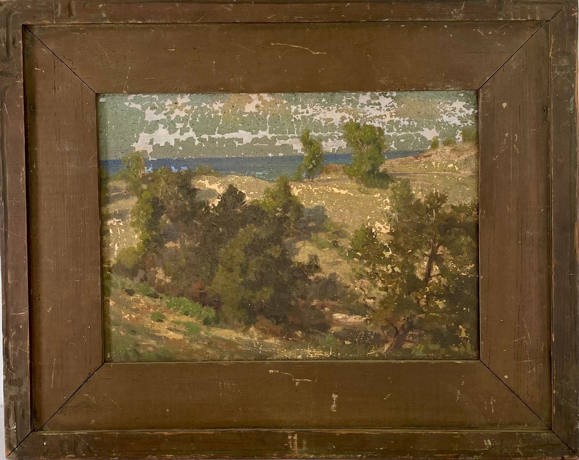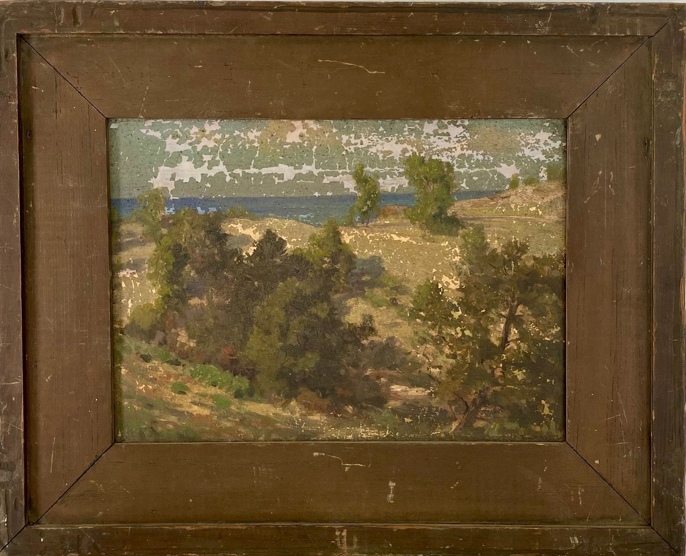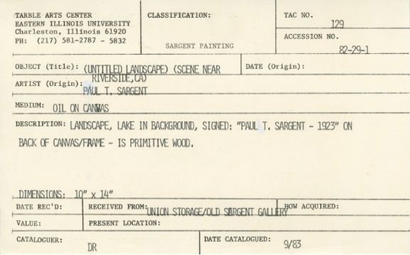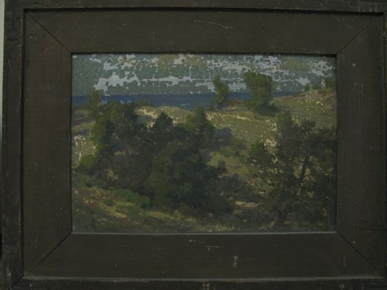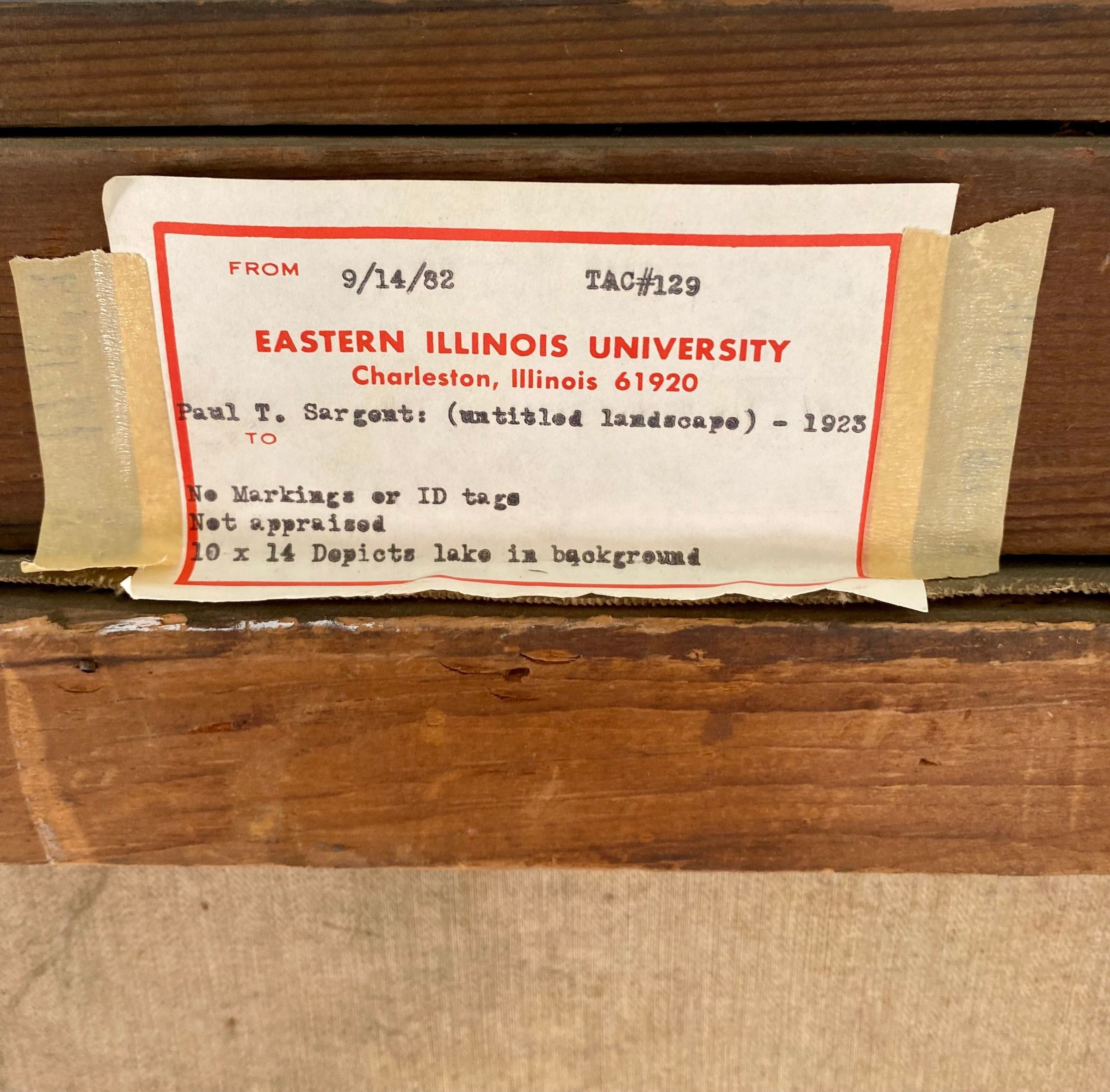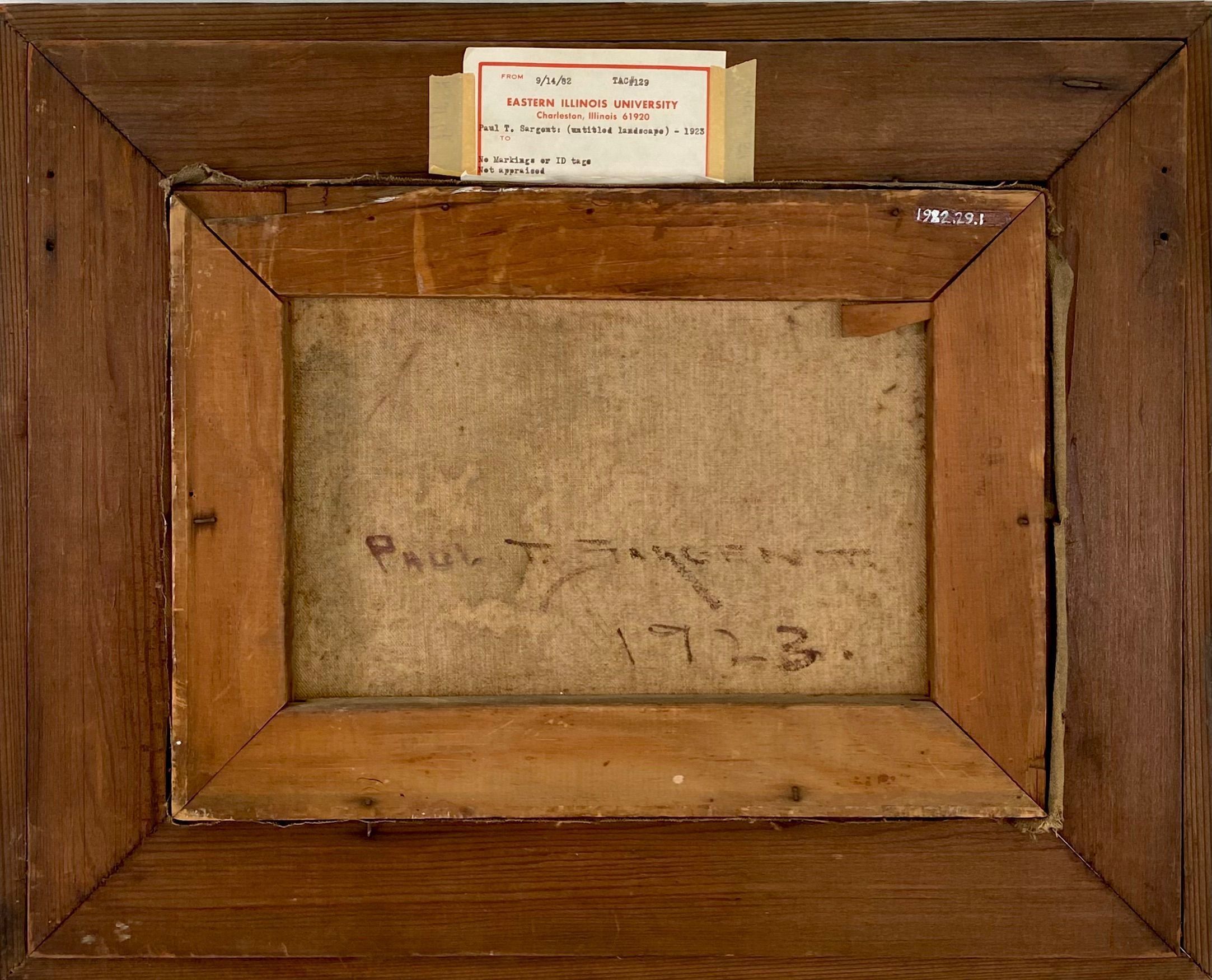 Landscape, lake in background. Signed: "Paul T. Sargent-'1923" on back of canvas. Frame of wood.Collection