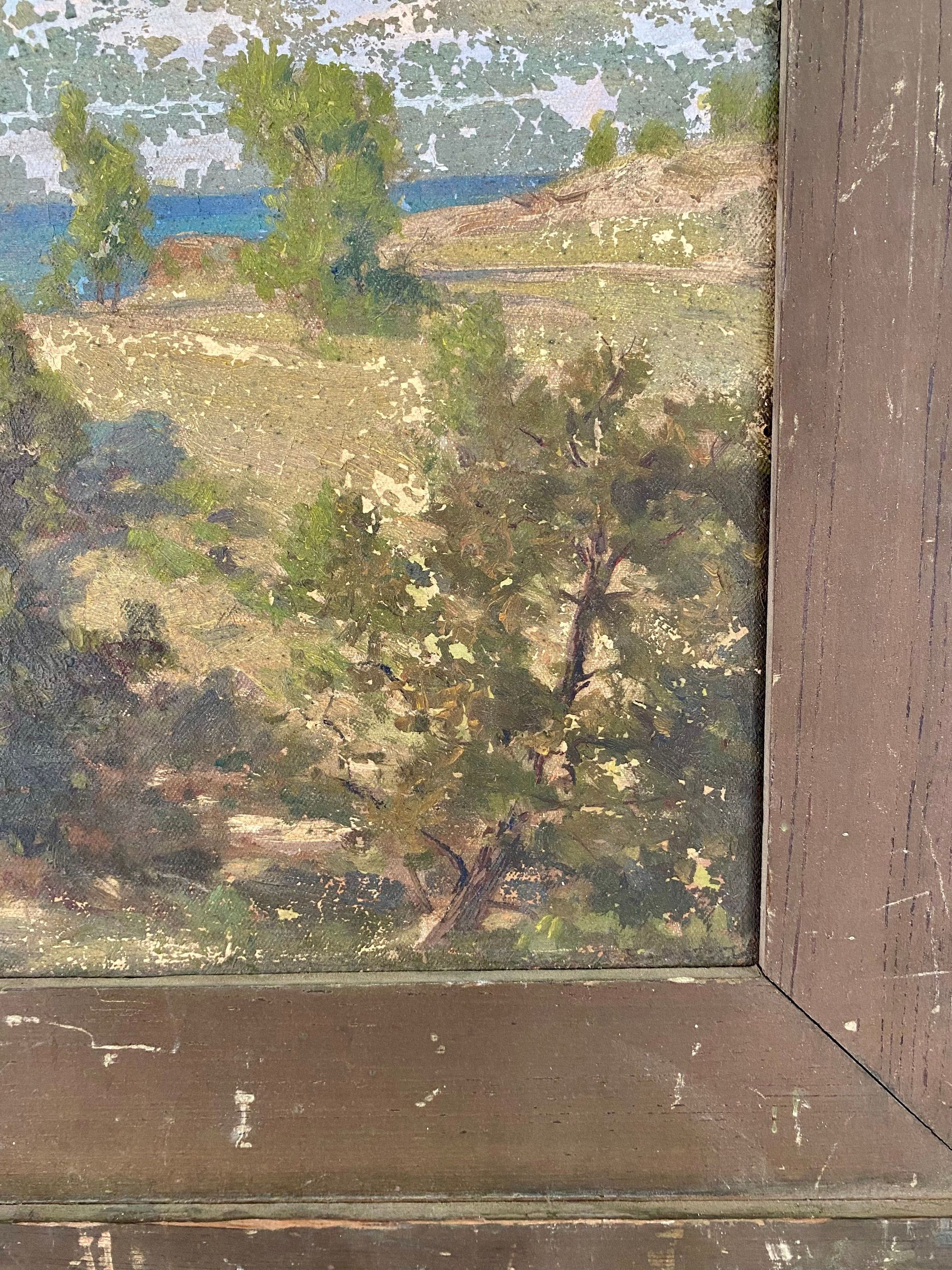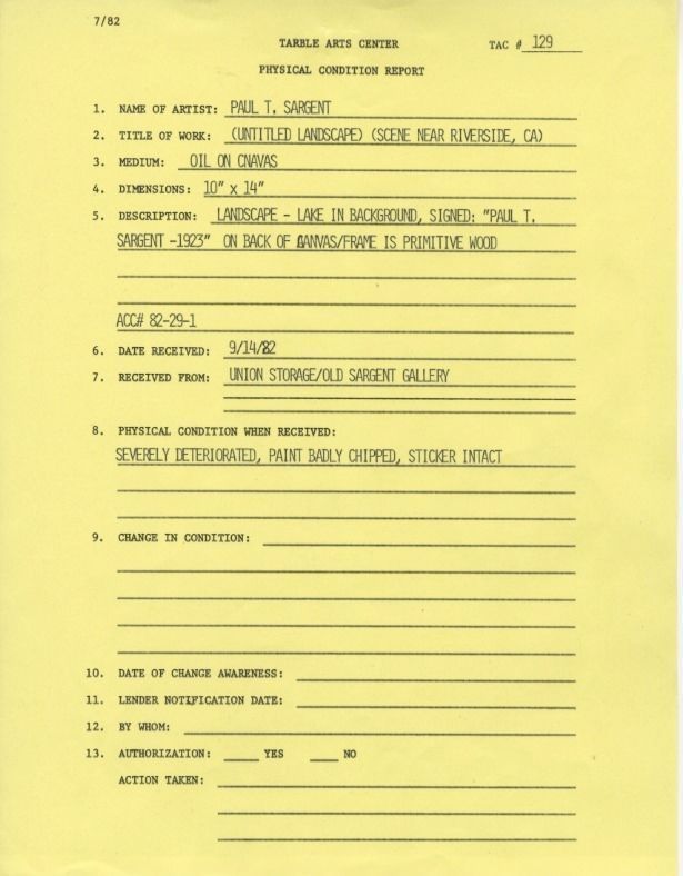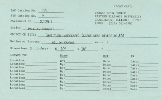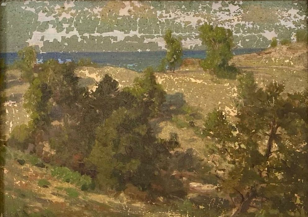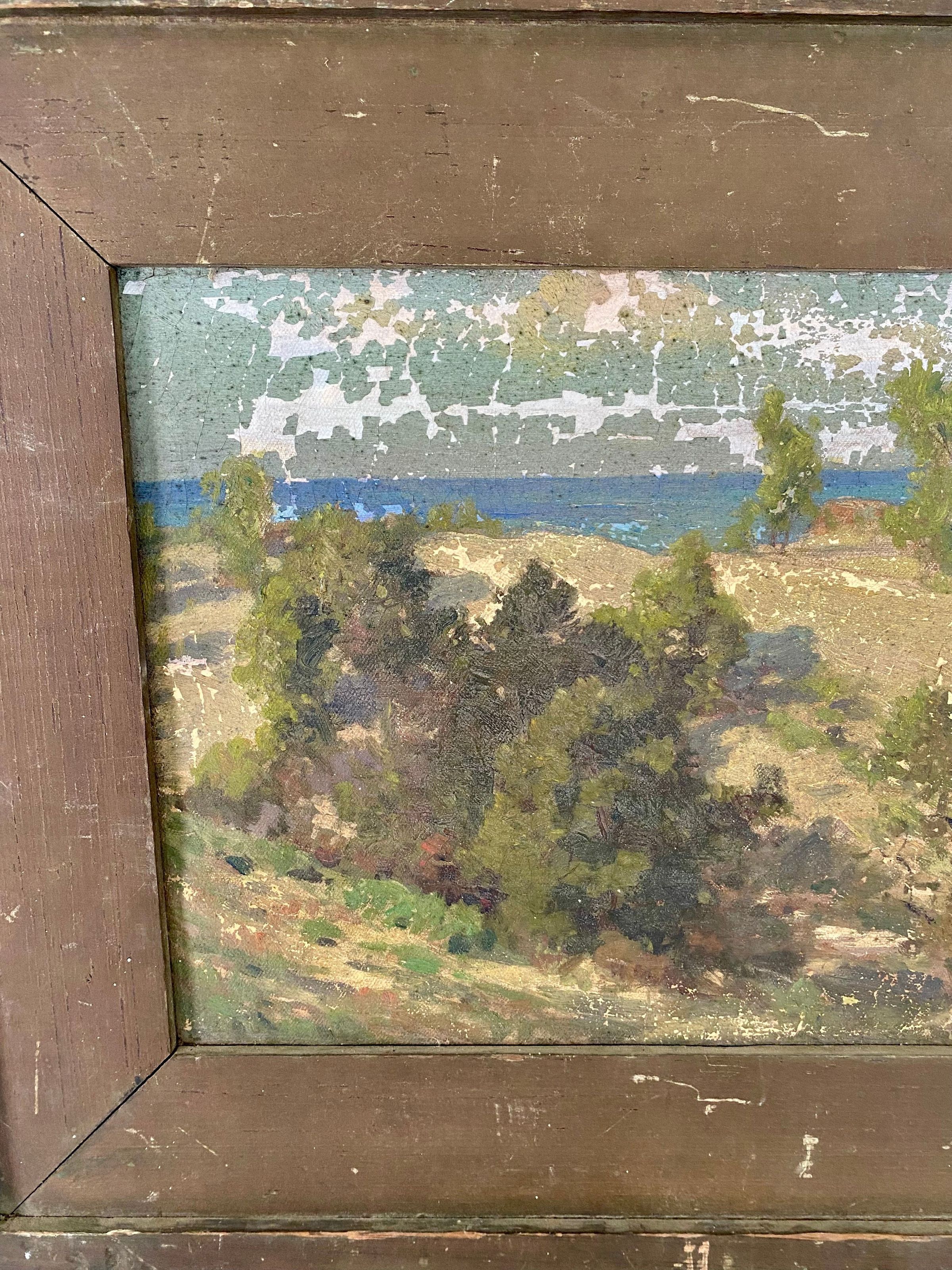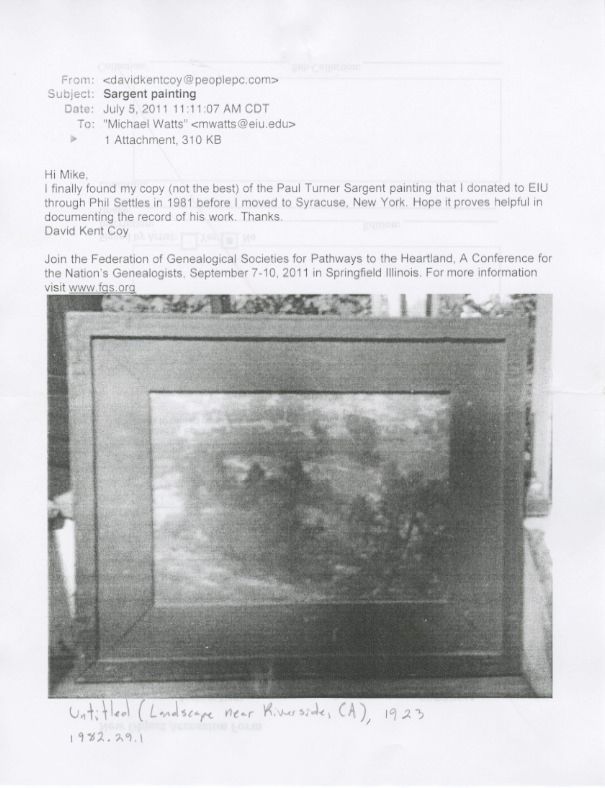 Landscape, lake in background. Signed: "Paul T. Sargent-'1923" on back of canvas. Frame of wood.Collection