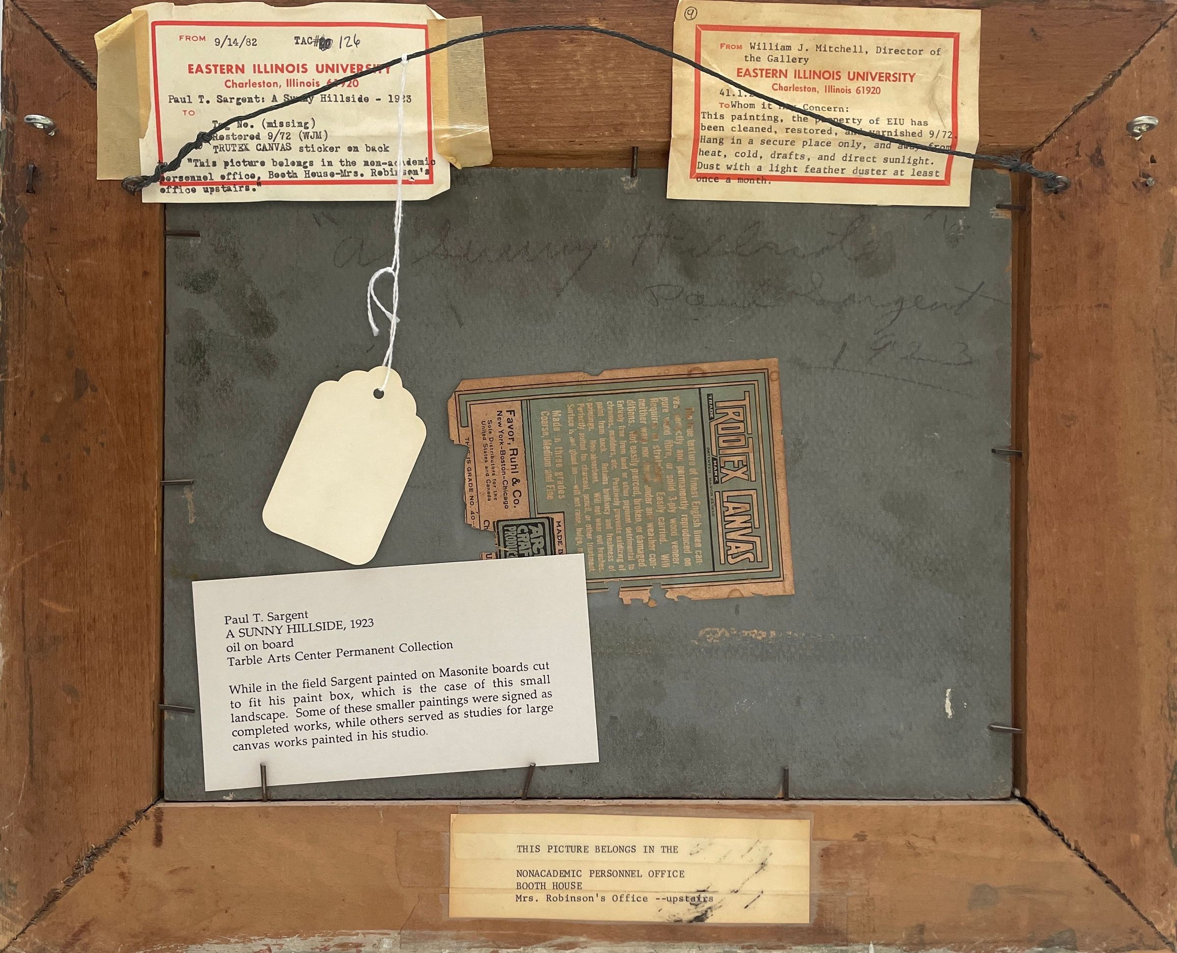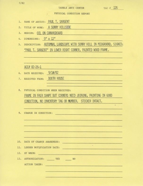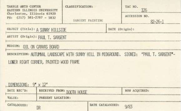 Autumn landscape with sunny hill in mid-ground. Signed: "Paul T.Sargent" in lower right corner- painted wood frame.Artwork Details