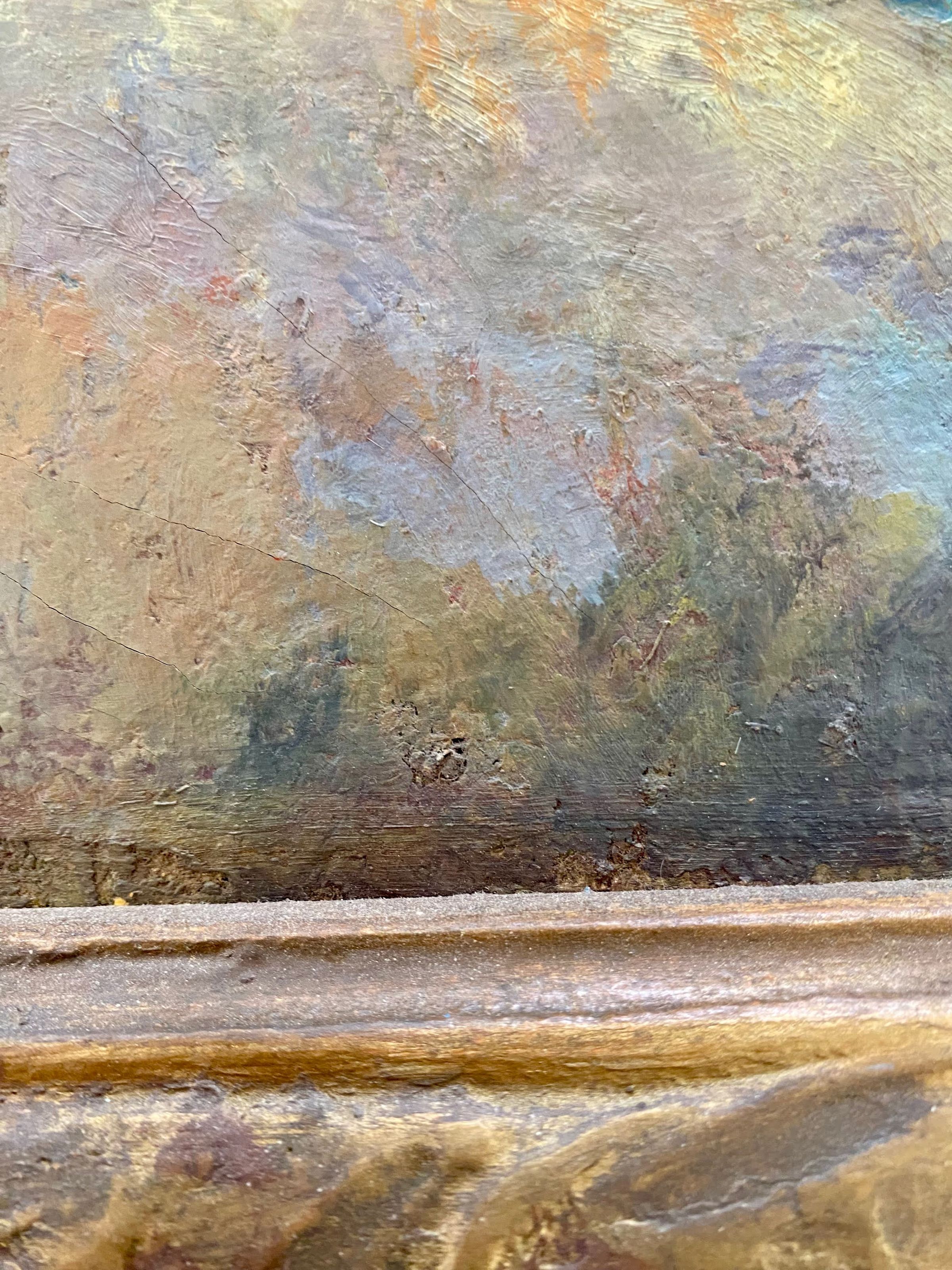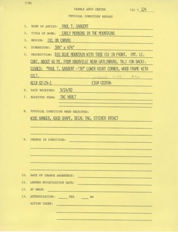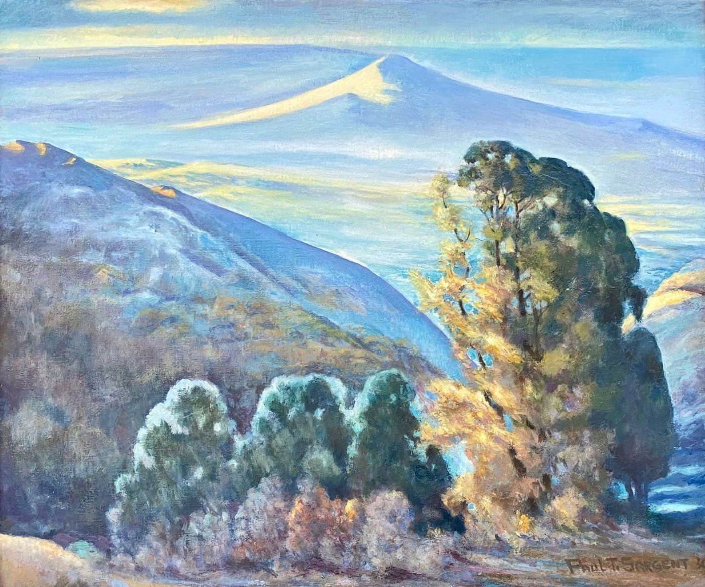 Big blue mountain with trees in front (Mt. Le Cont, about 40 miles from Knoxville near Garlinburg TN.) (Info on back) Signed: "Paul T.Sargent-'30" in lower right corner. Wood frame with gilt.Collection