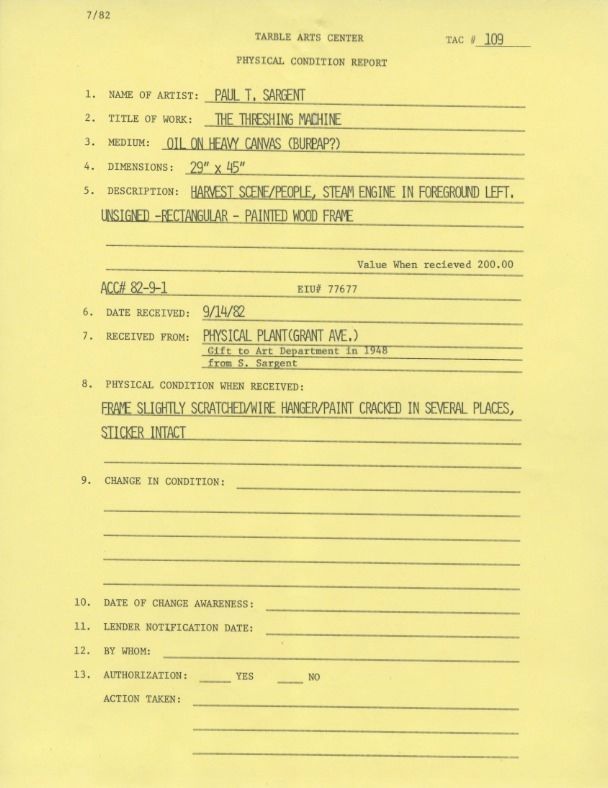 THE THRESHING MACHINE (UNFINISHED)Entry/Object ID