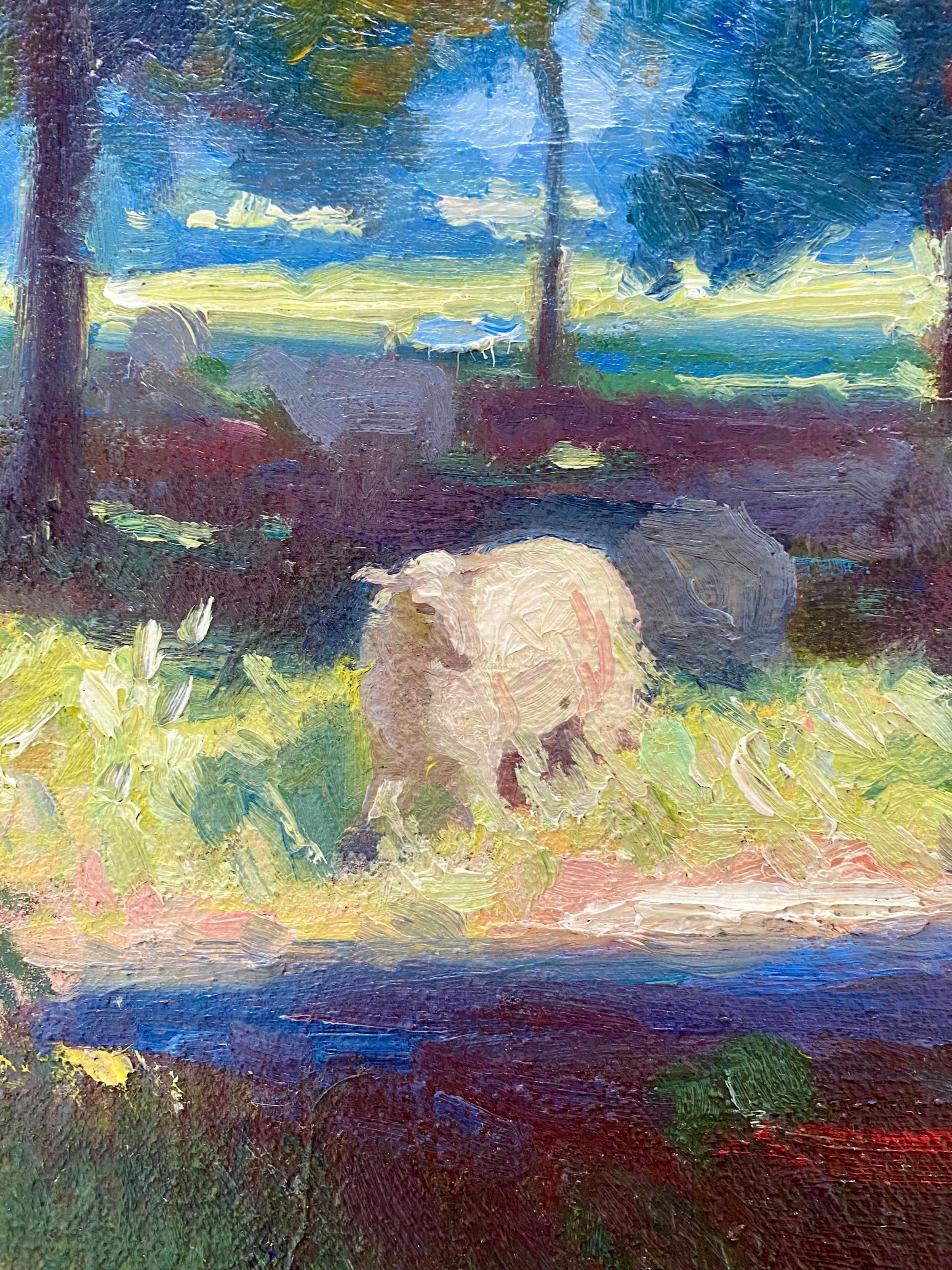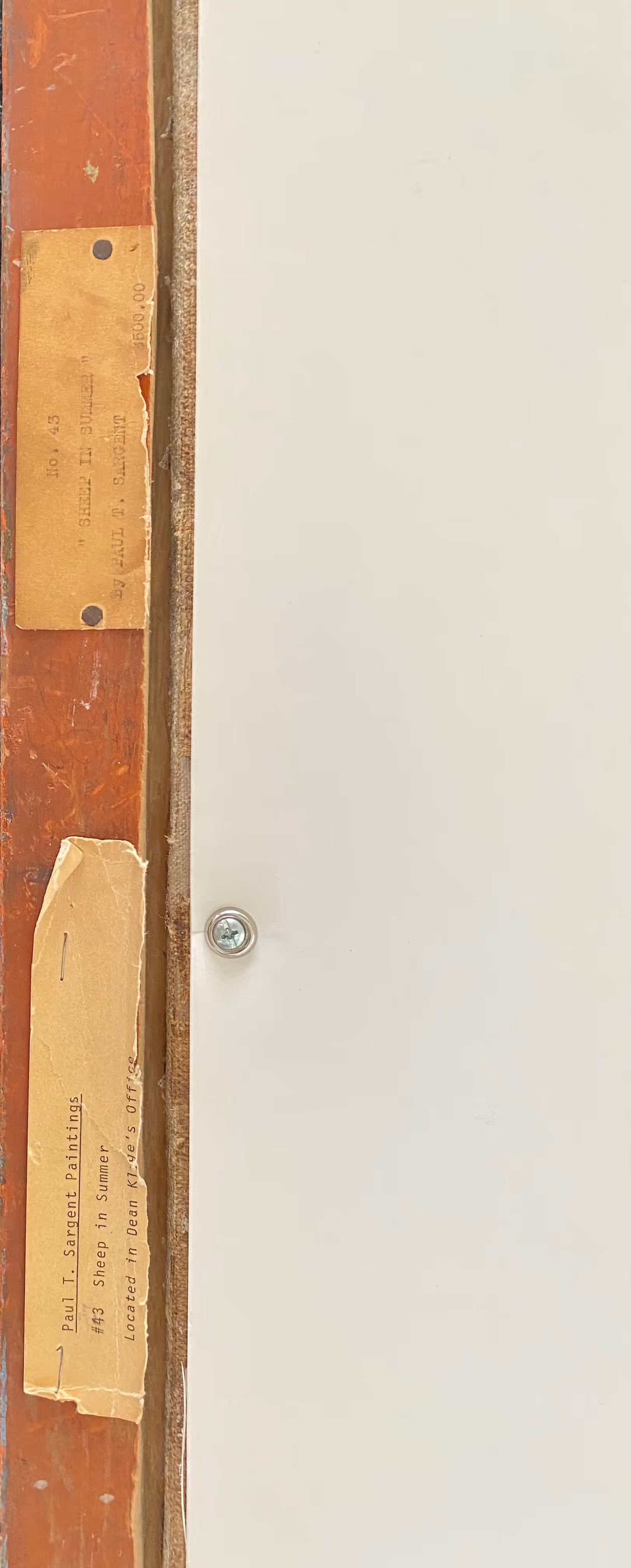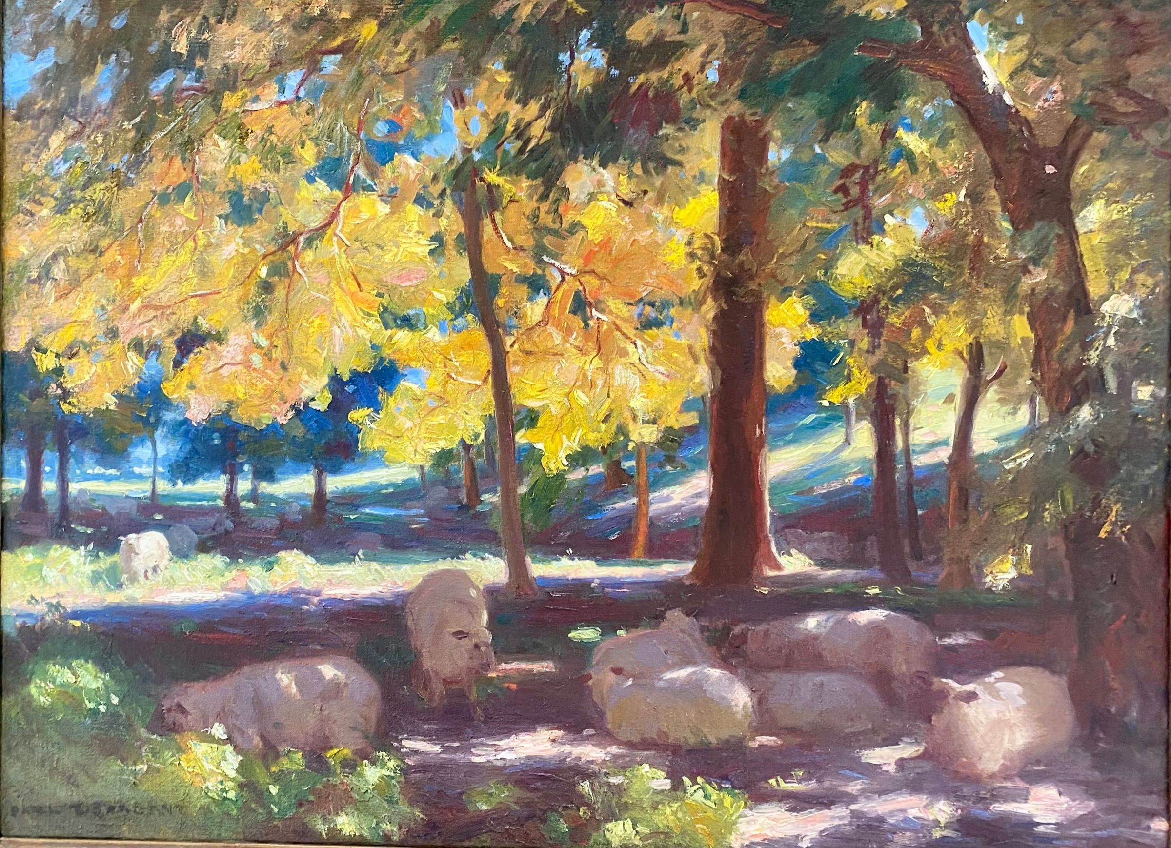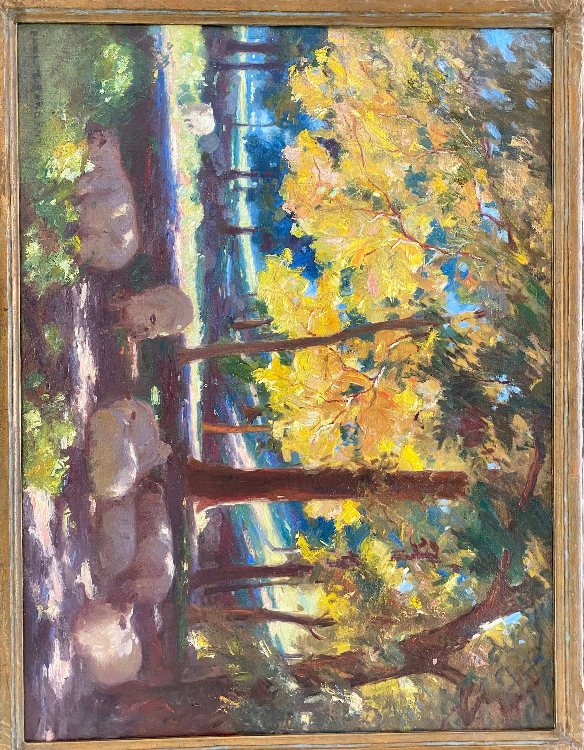 Sheep depicted under colorful shade trees- signed: "Paul T.Sargent-'34". Lower corner/Wood gilt frame.Collection