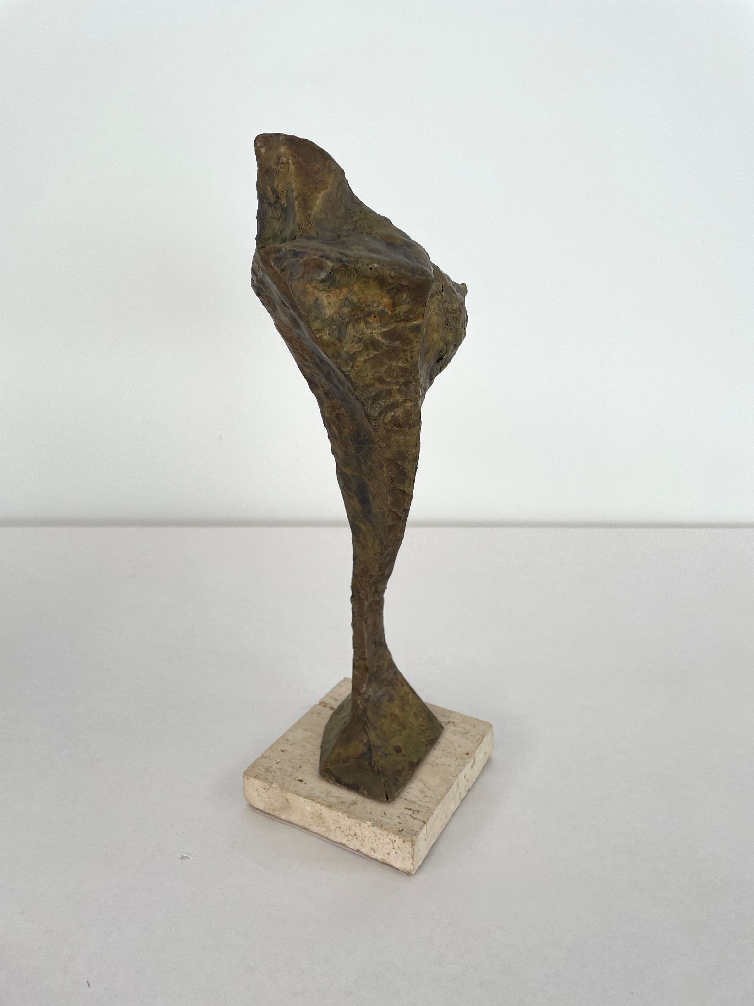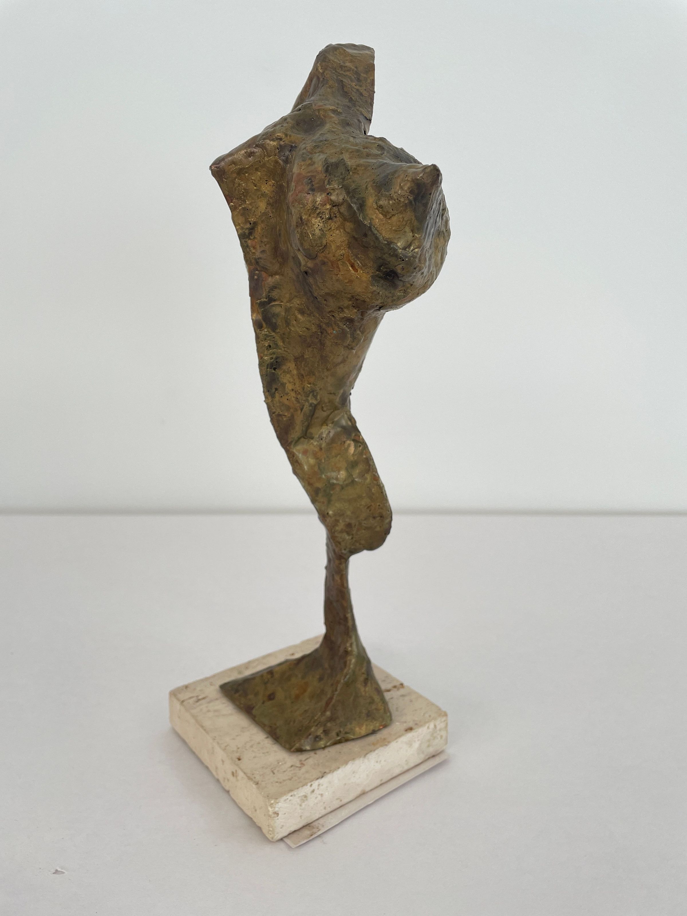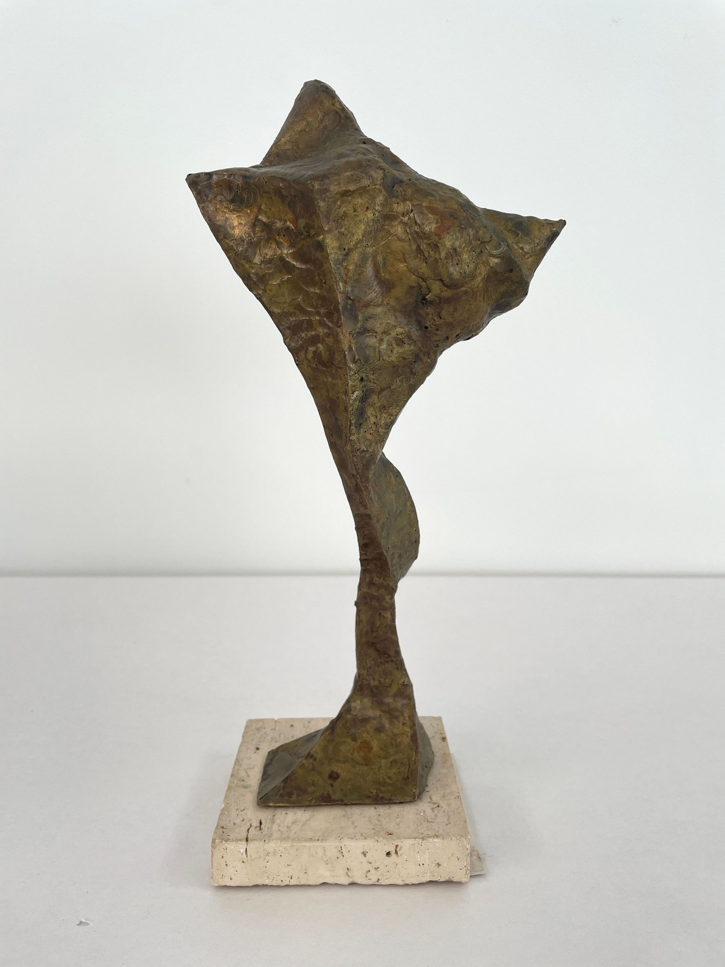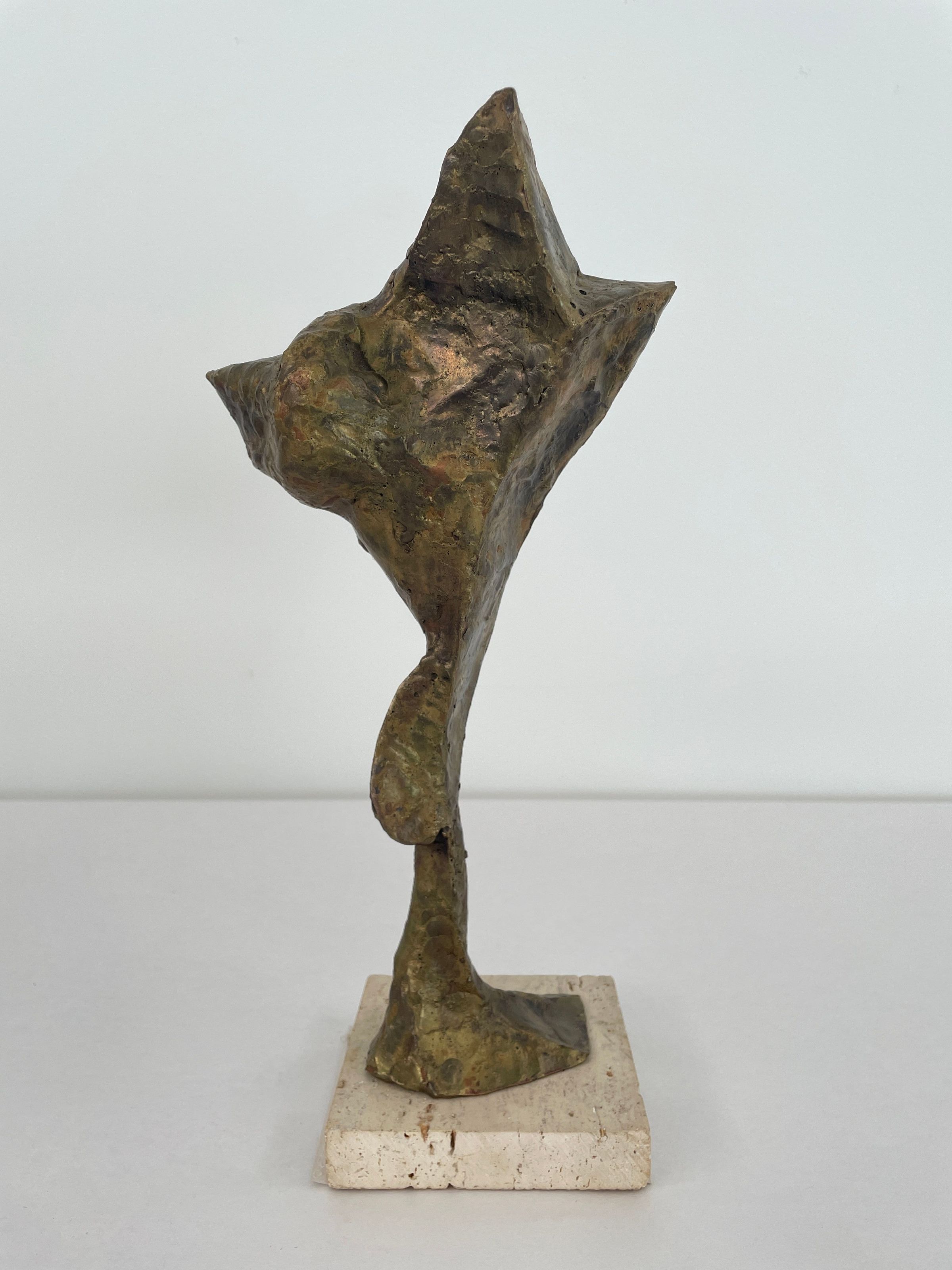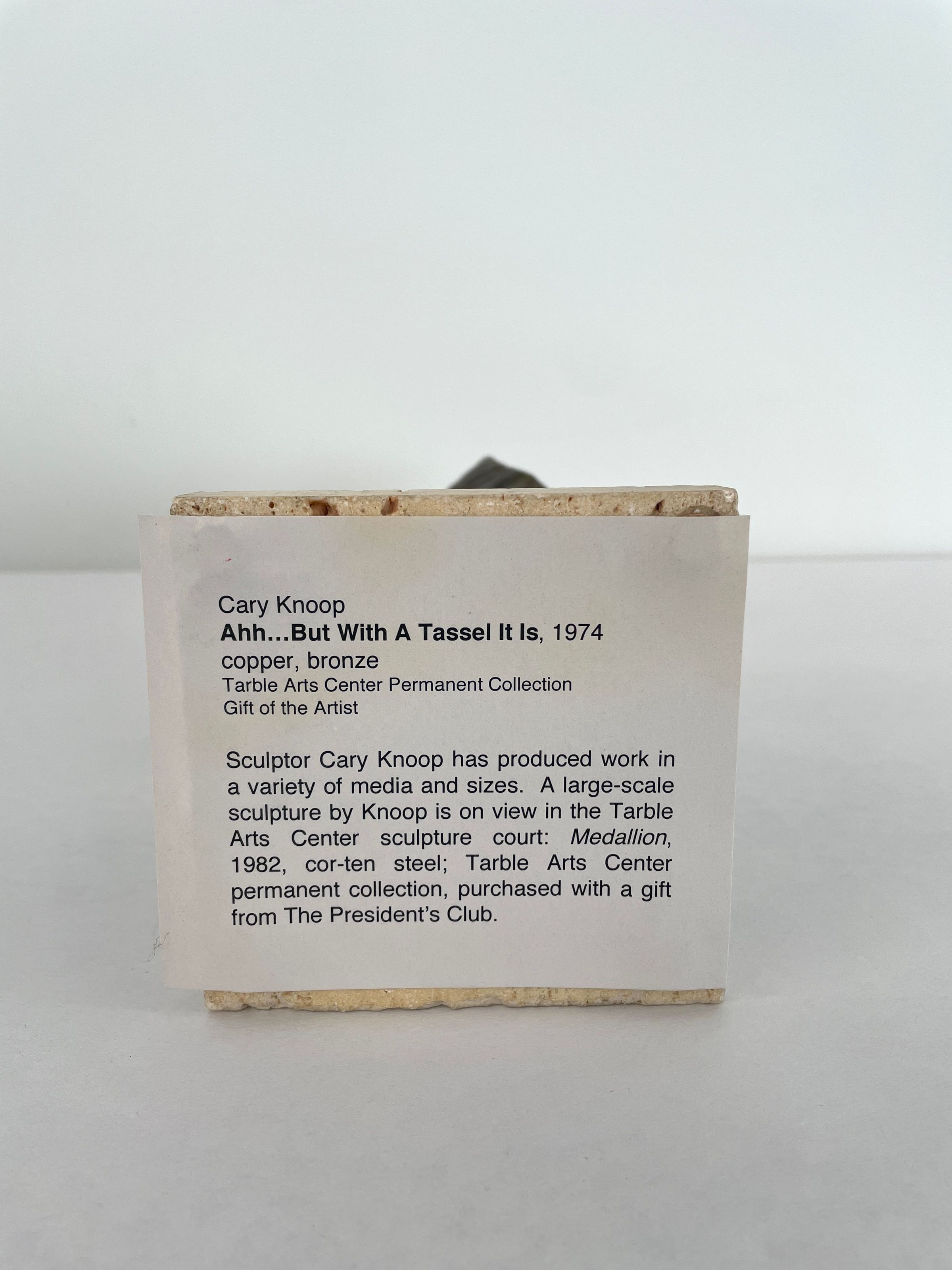 copper brazed with bronze. geometric abstract sculpture of breast. bronze in color mounted on stone pedestal; Cary KnoopCollection
