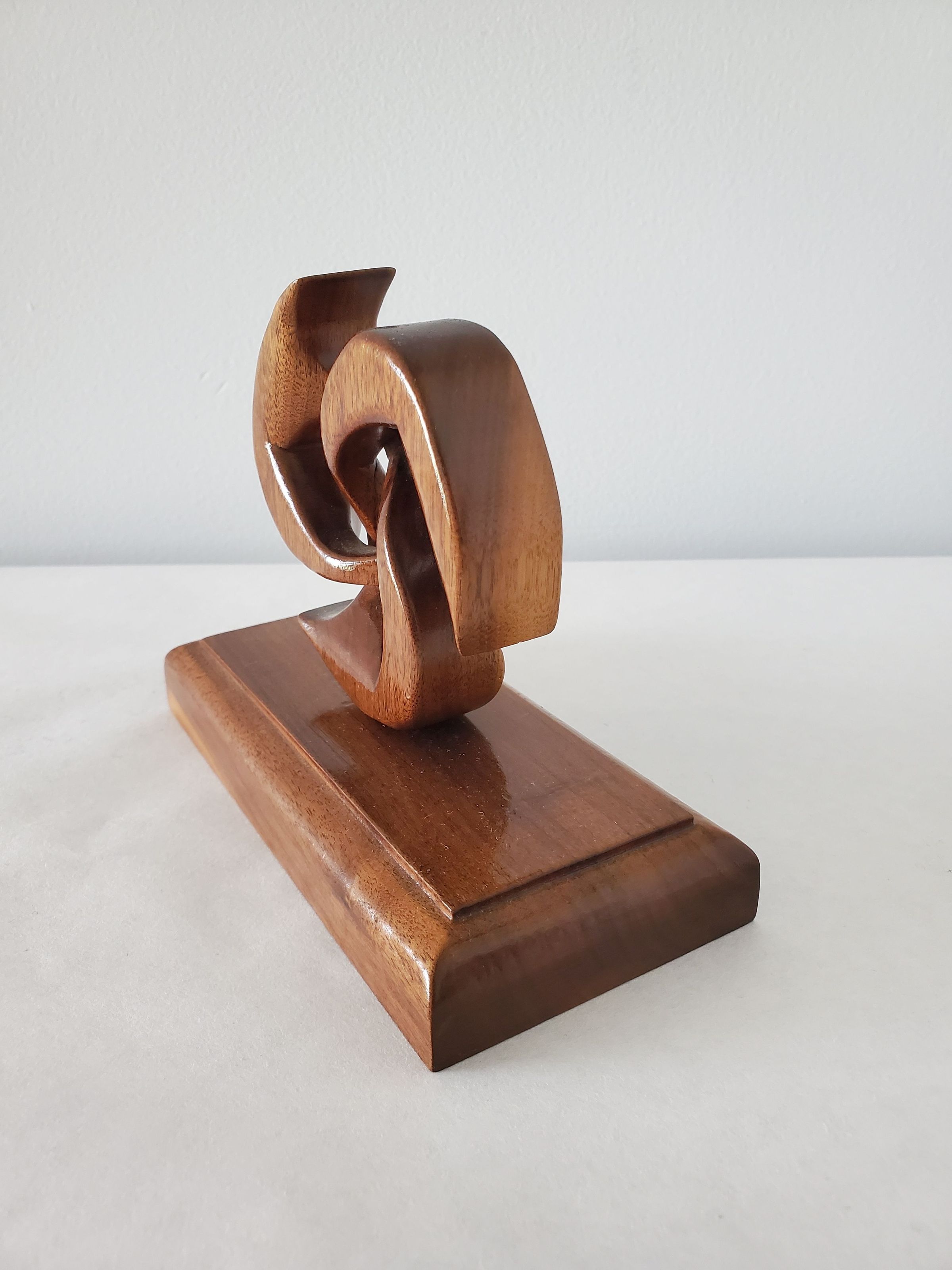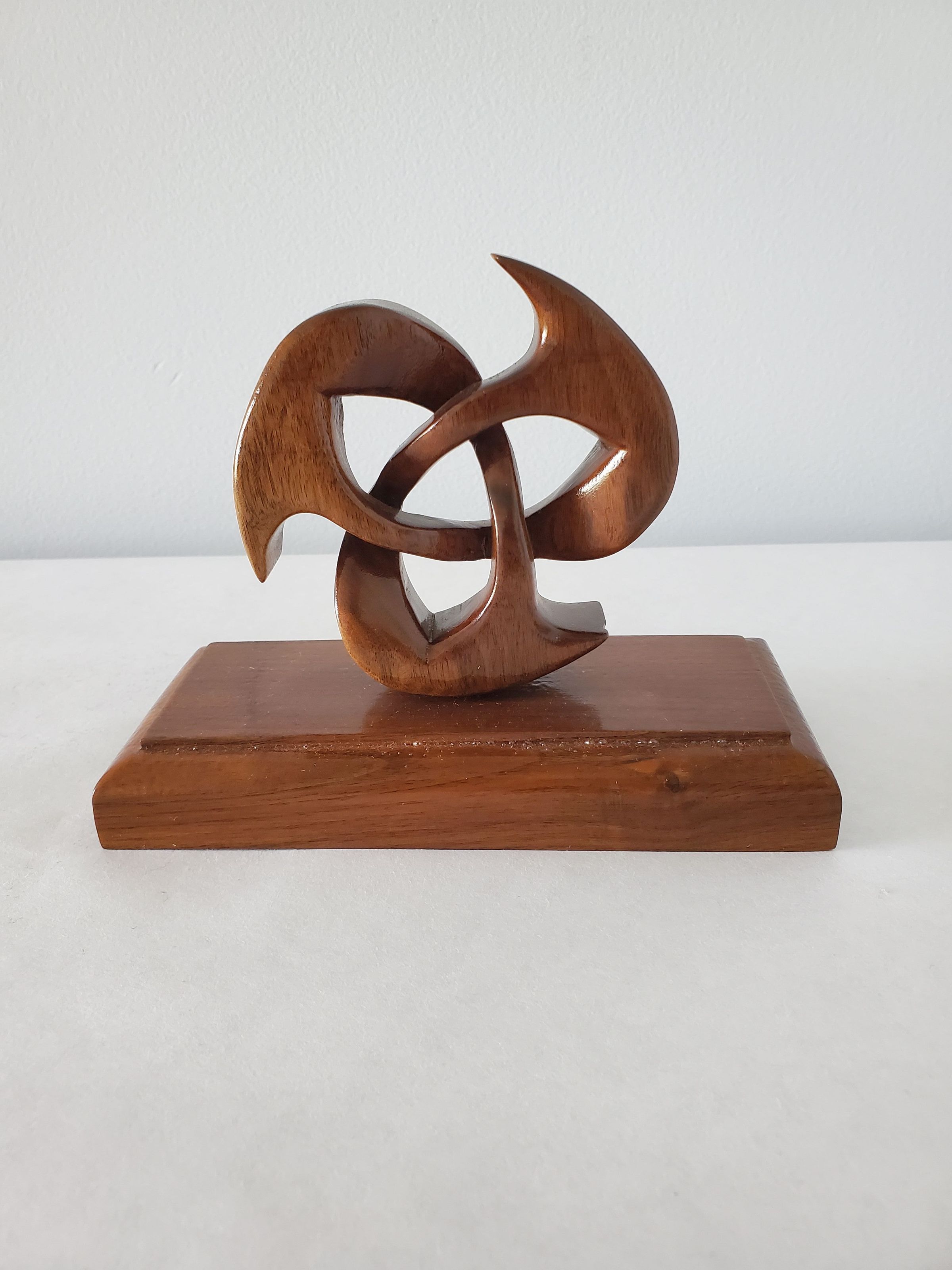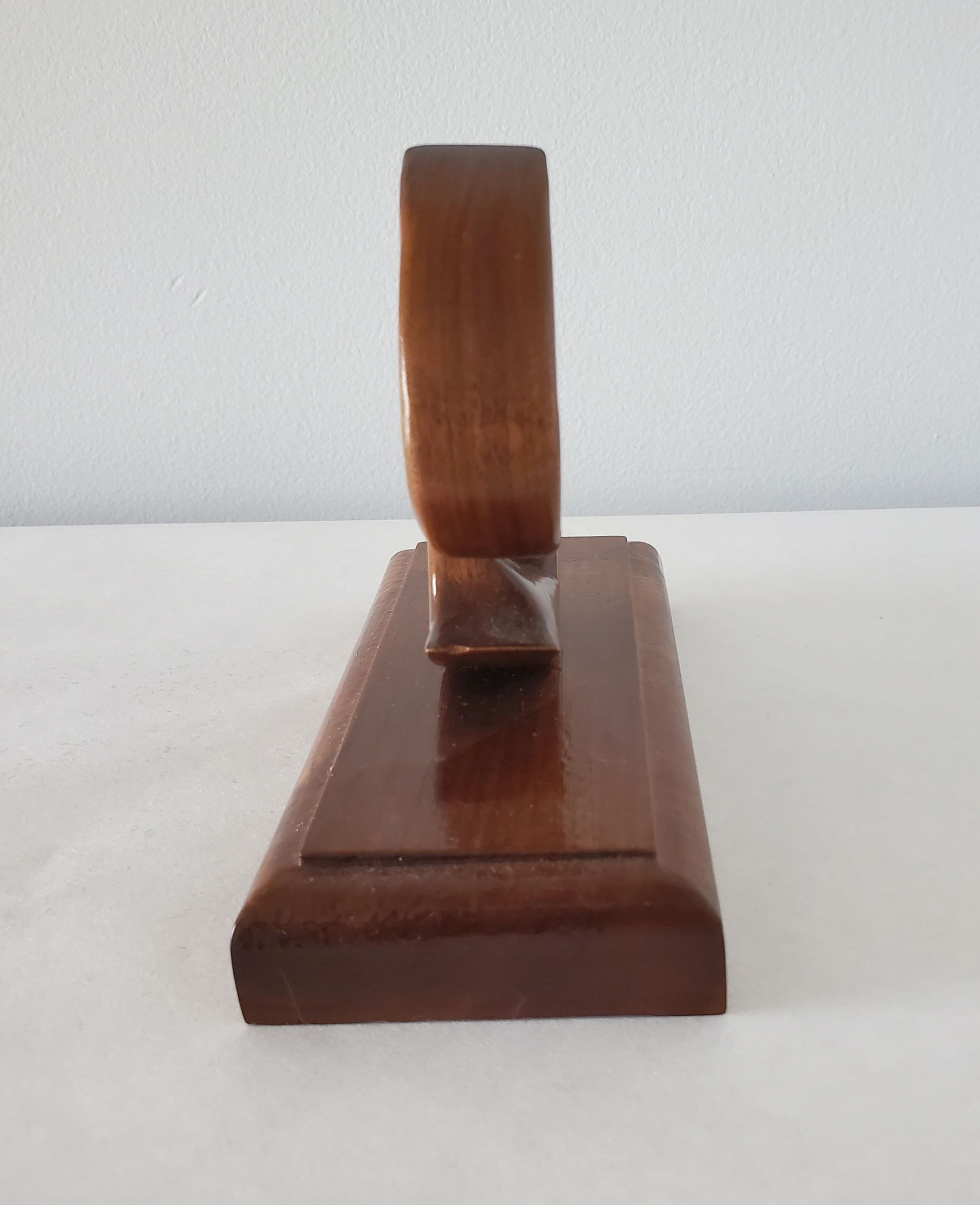 Dark wood carved in triad-circle pattern. With dark wood base.Collection