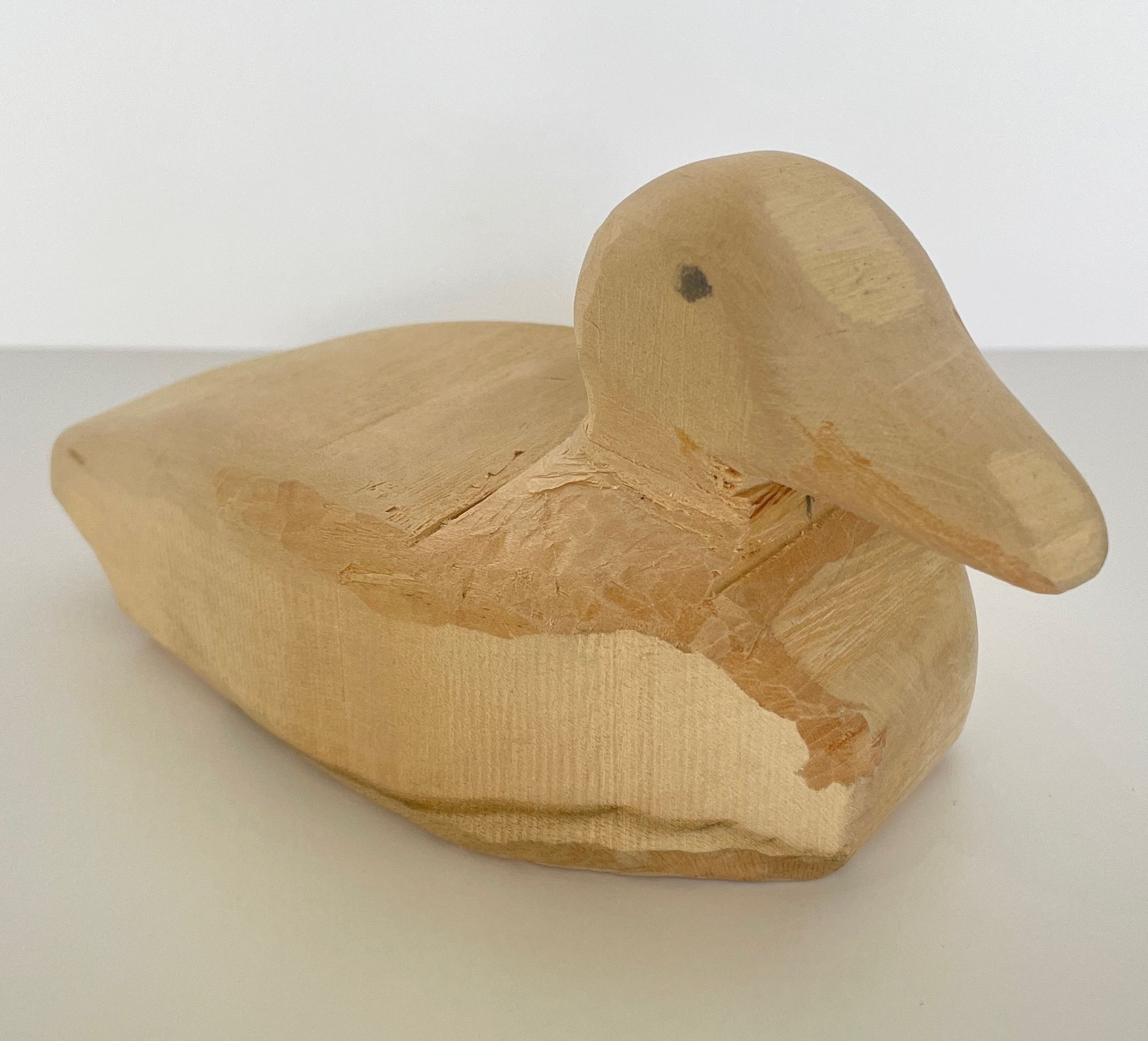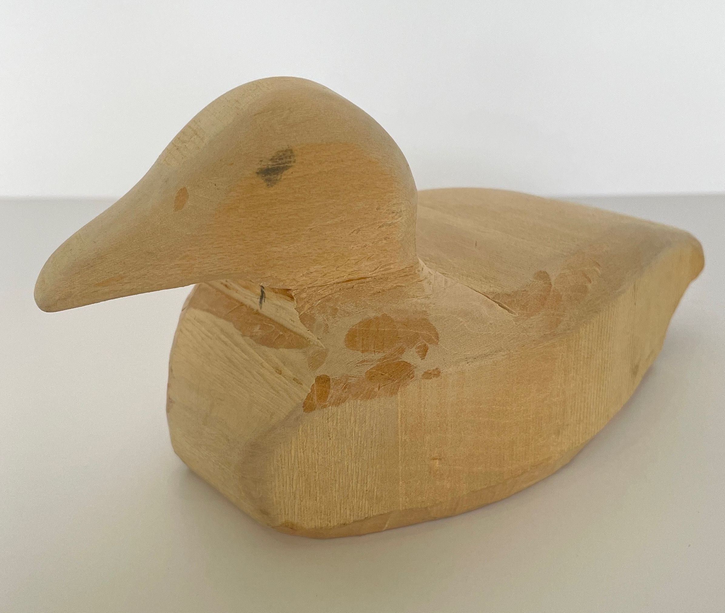 Canvas Back inscribed on bottom in pencil wooden duck- partially completed Carving 1/17/96 Ruth Jaenike 3/5/97 dp