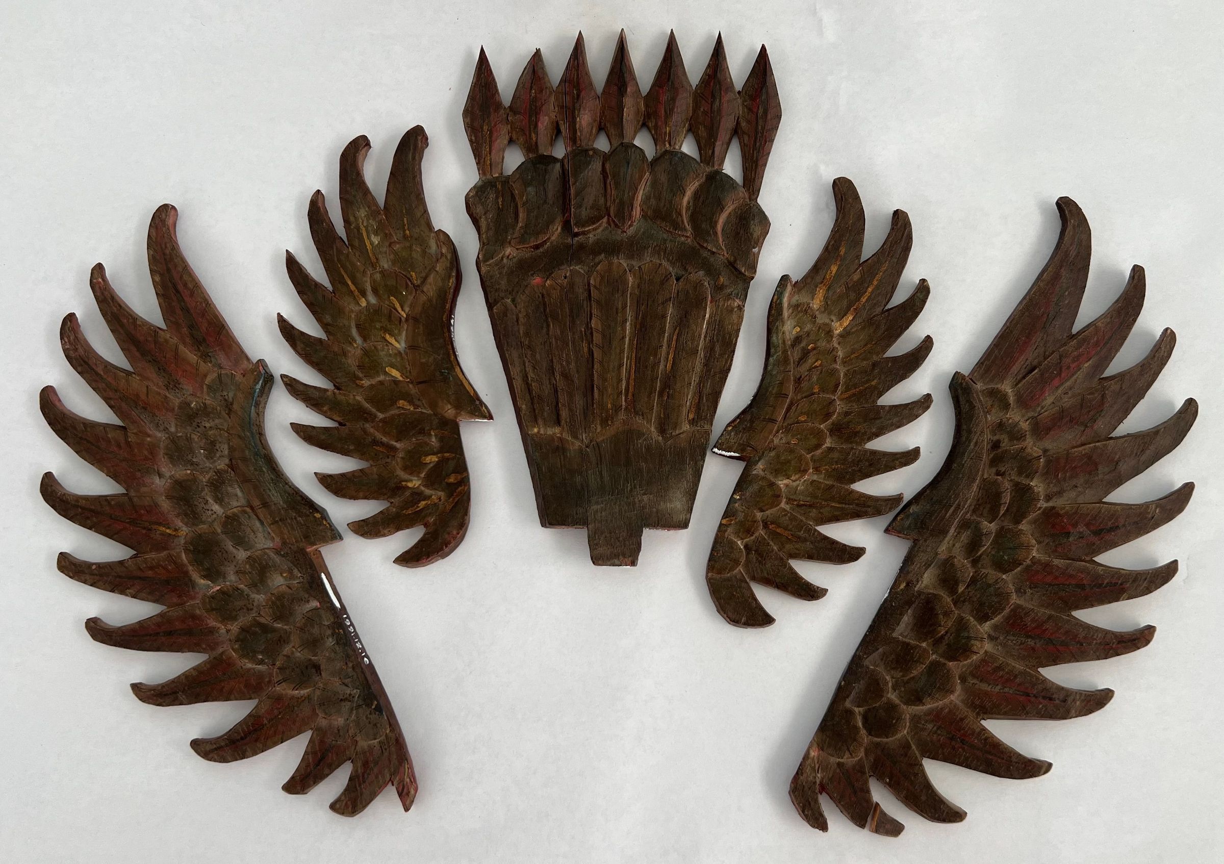 Indian/Southeast Asian winged figure riding on bird breaks down into 7 pieces- labeled a-gCollection