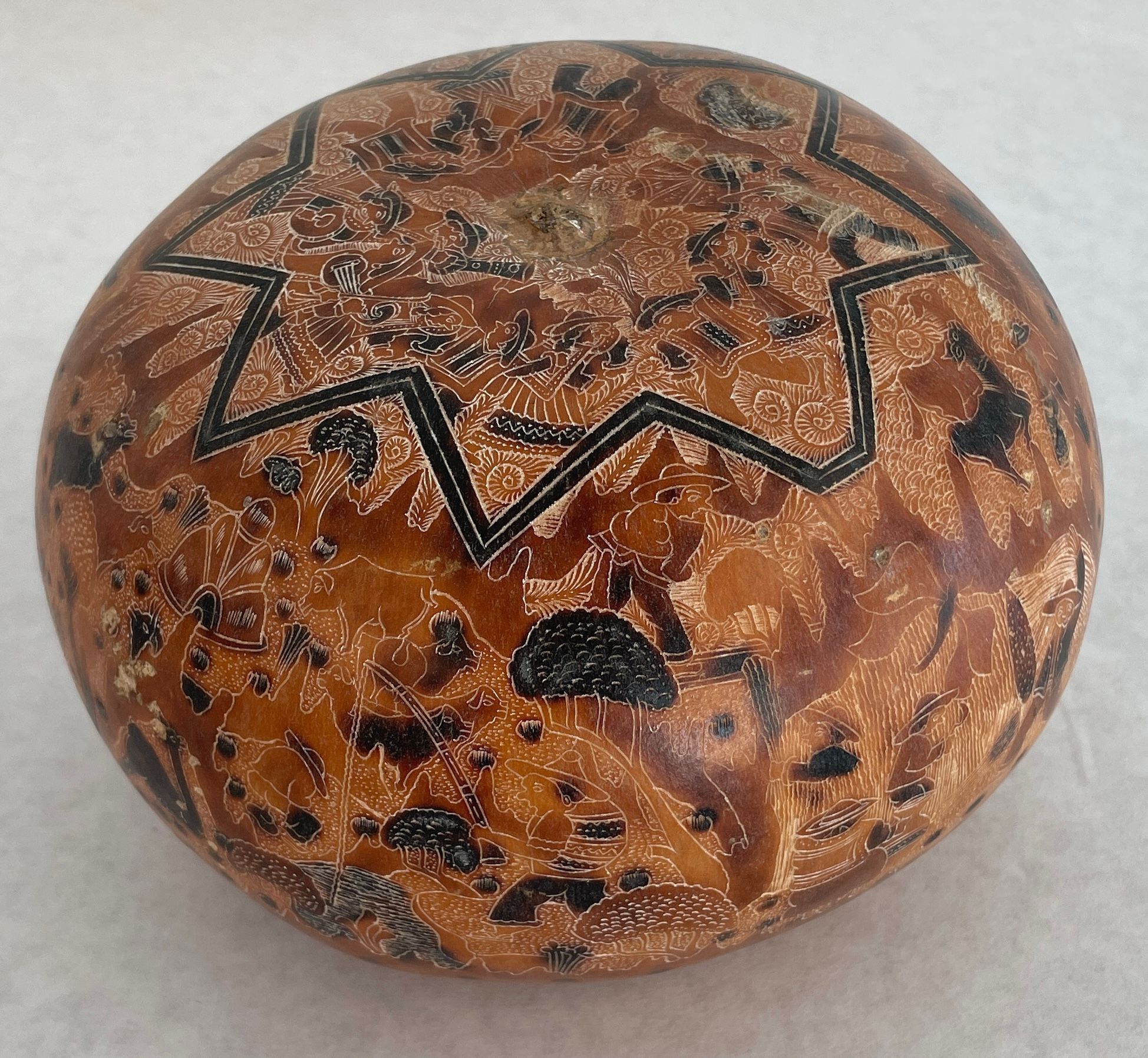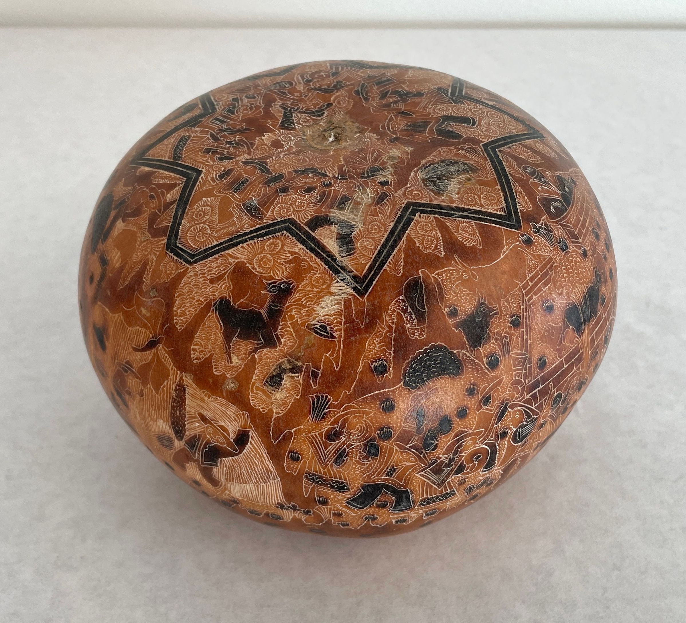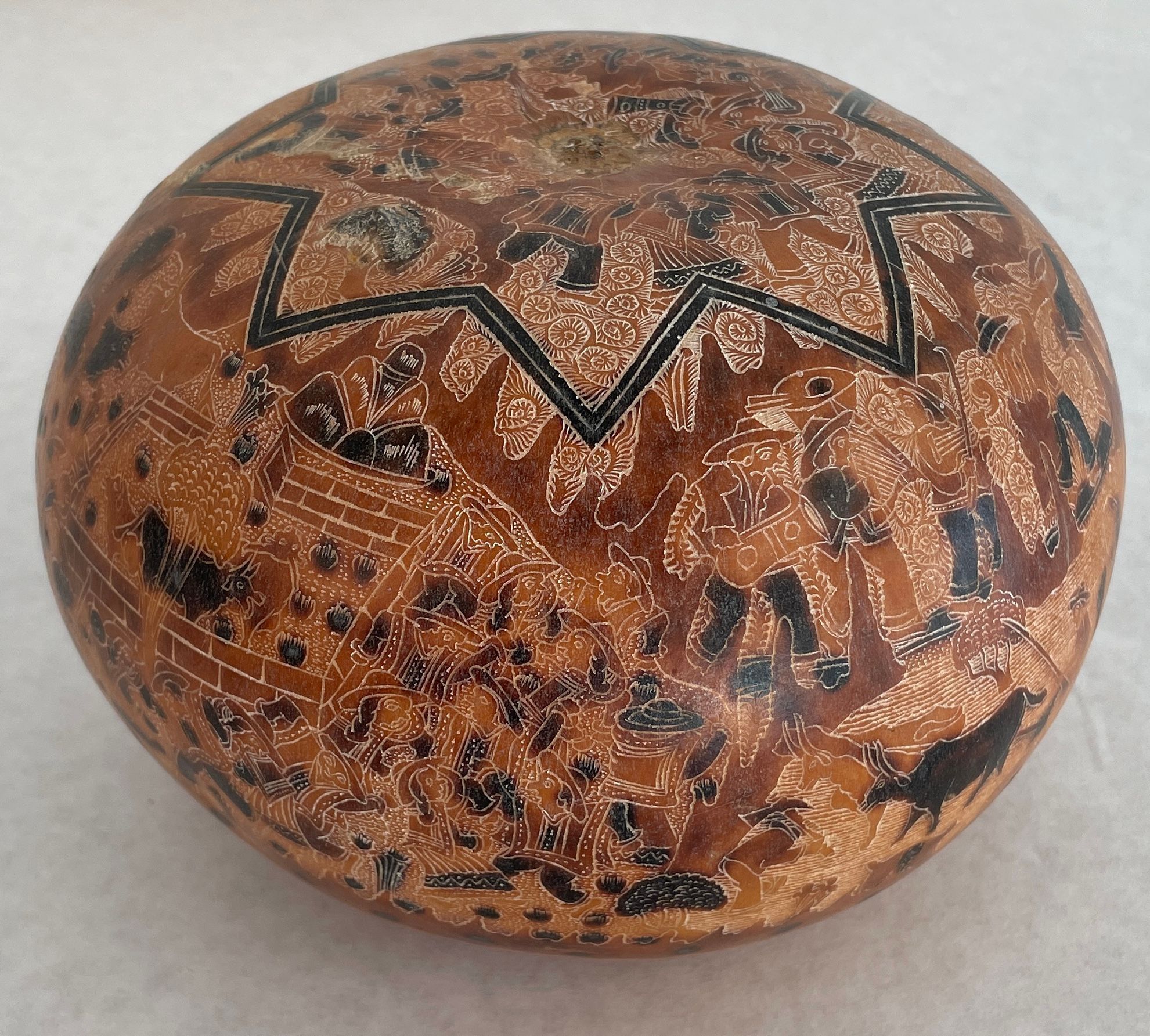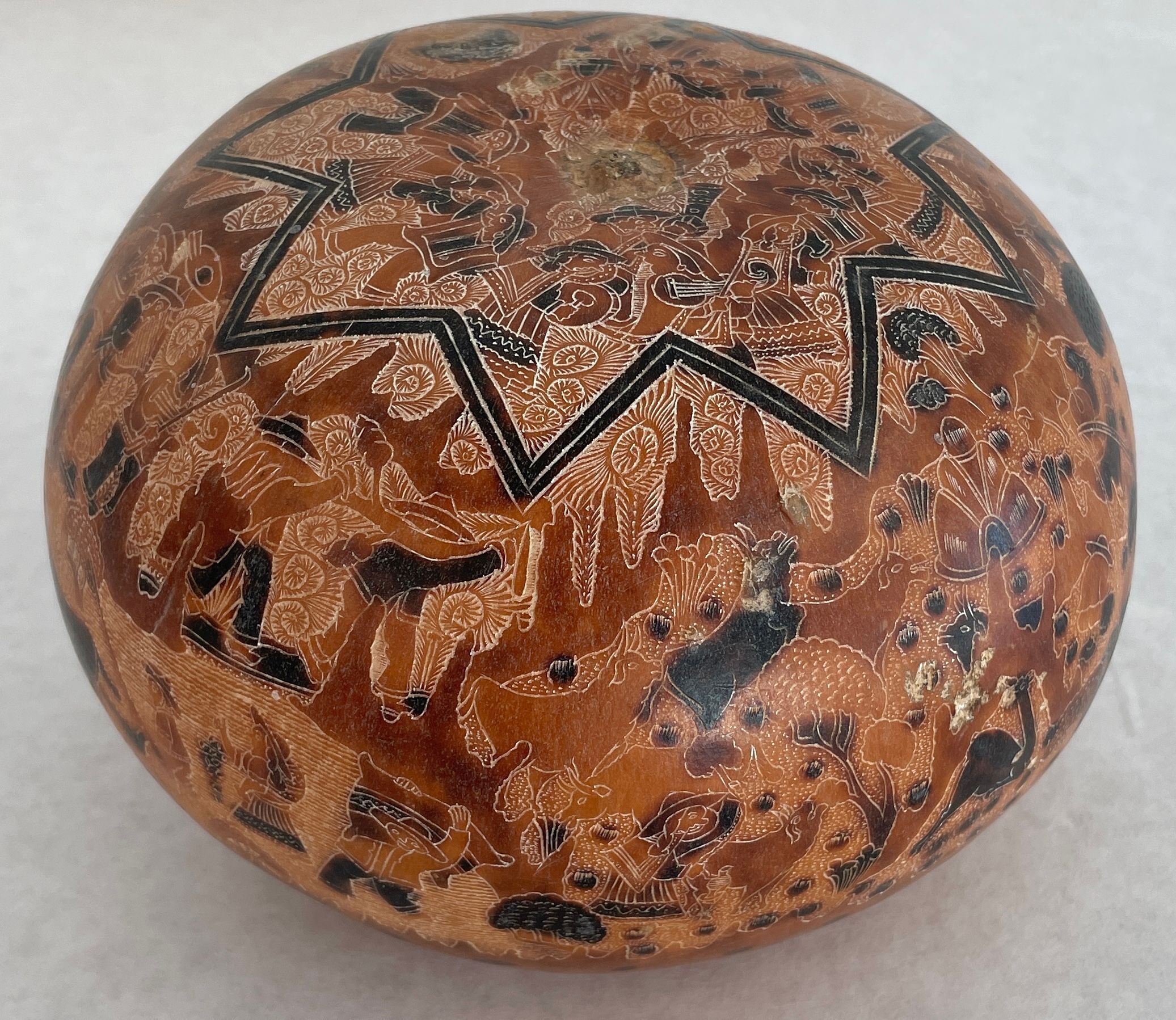 intricately carved with 8 - pointed star on topinscriptiopn - " Effrain . Santiago . Gullpa . Peru "Collection
