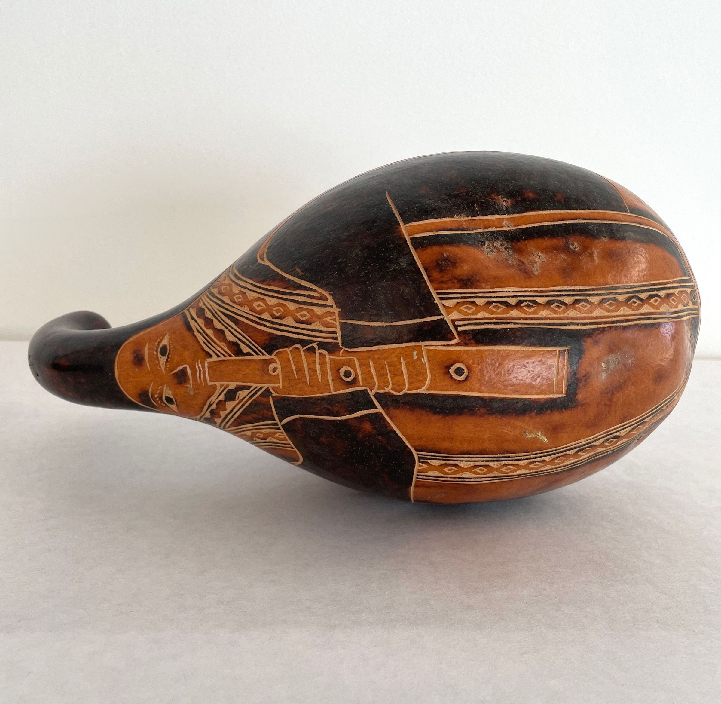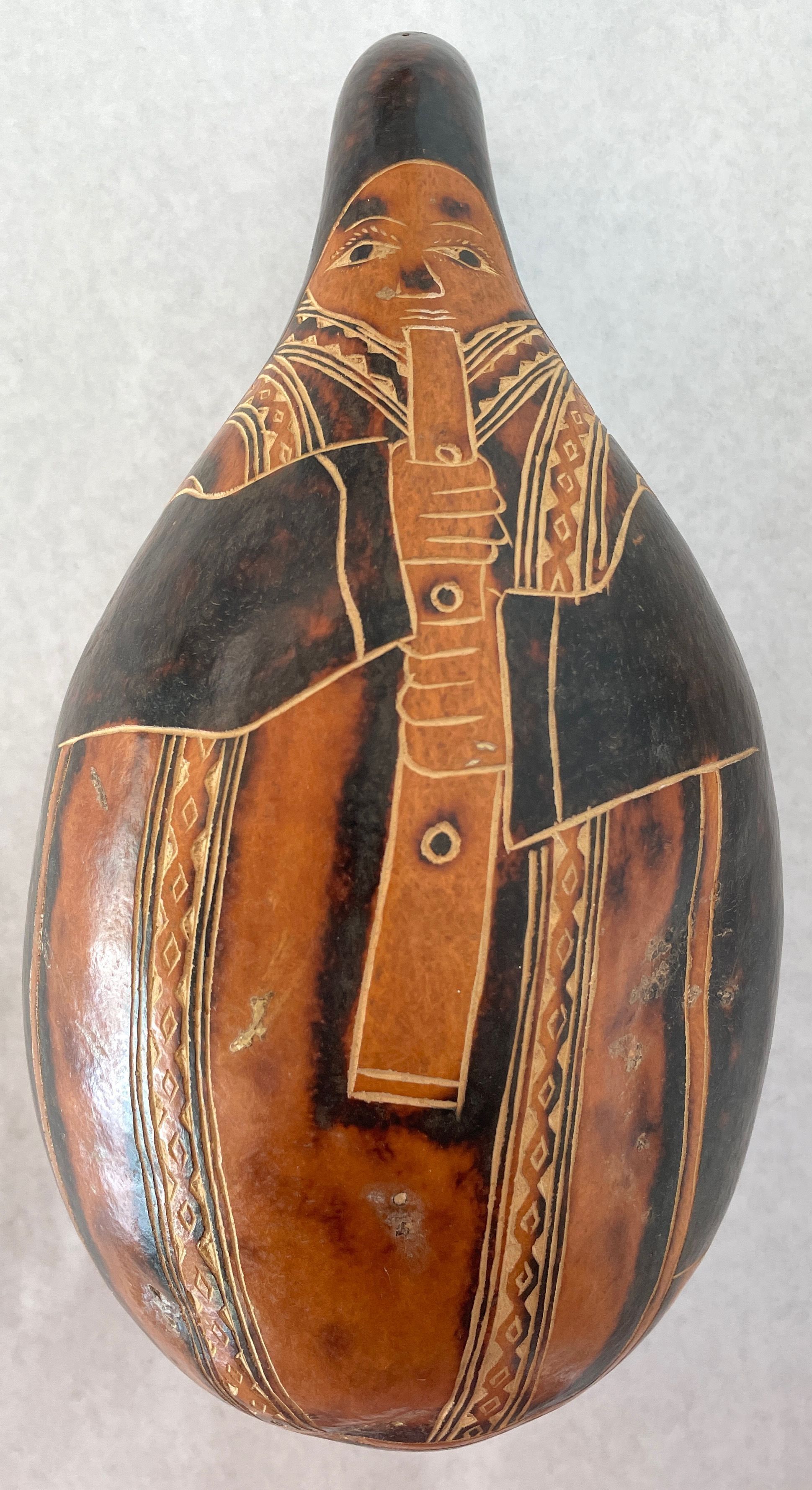 image of a man playing a flute or holding a staff inscription- "made in Peru"Collection