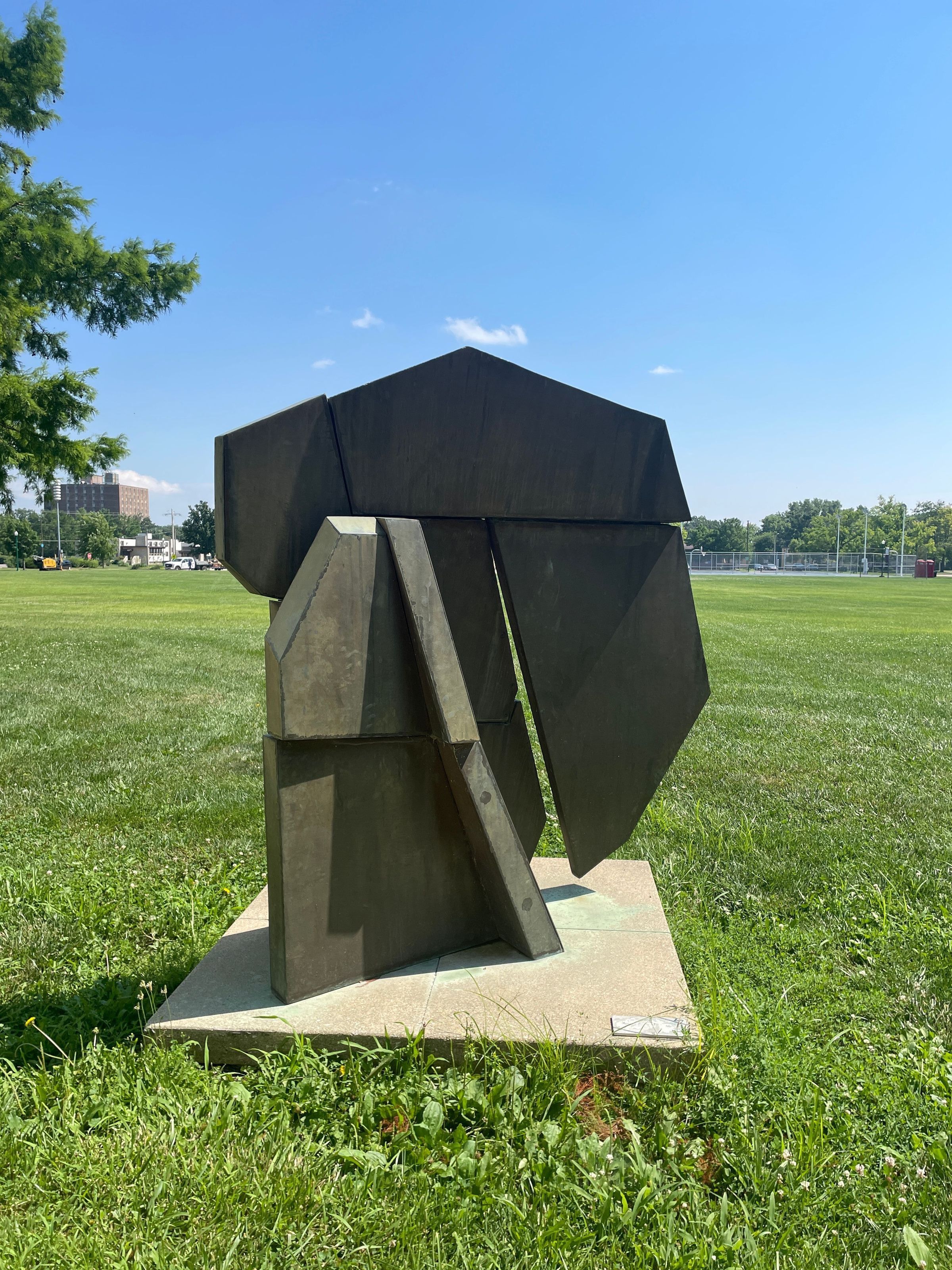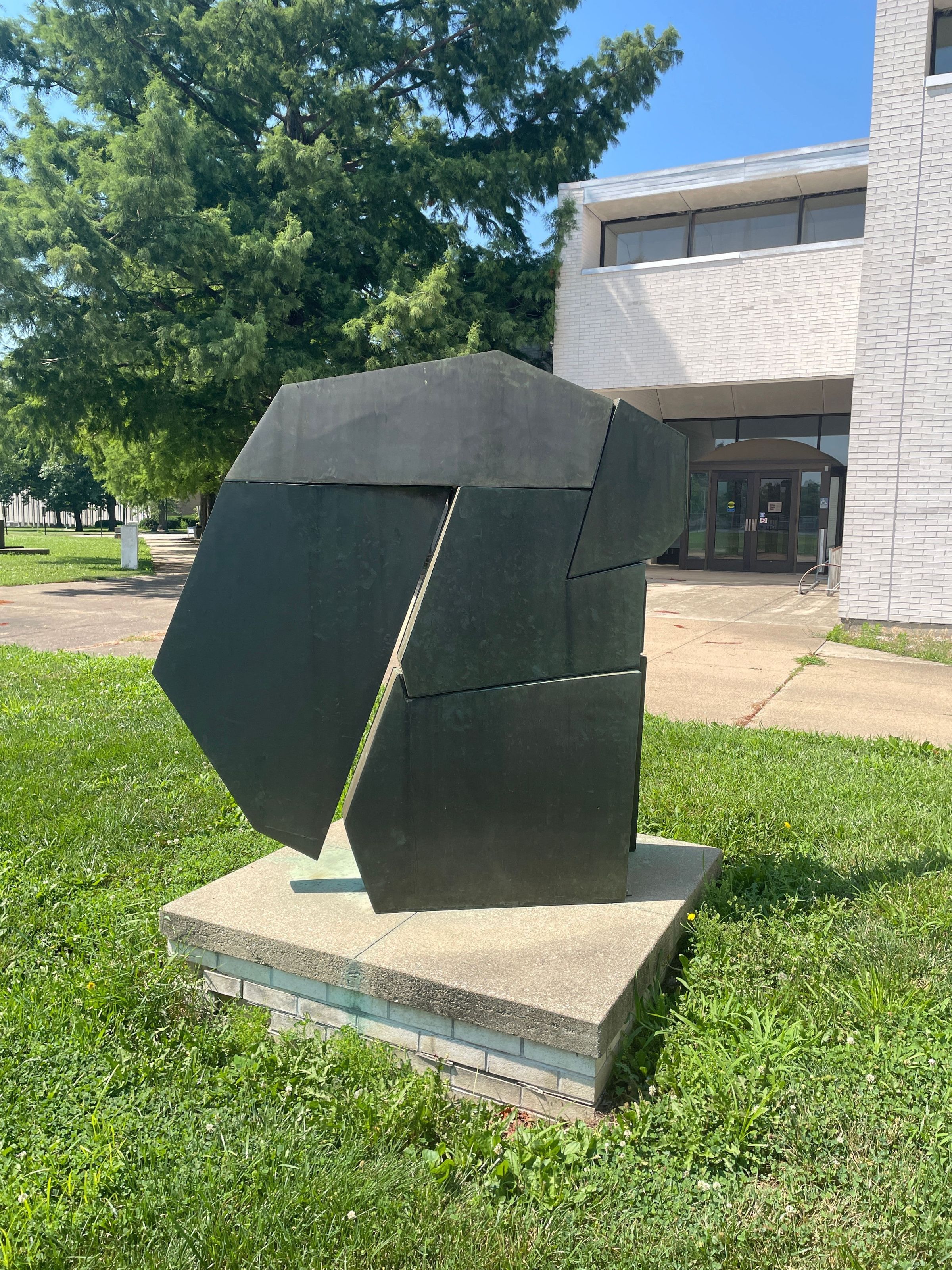 Welded and fabricated sculpture of bronze alloy. Bolted to concrete base.Sculpture is placed outside the Tarble opposite front door.Collection